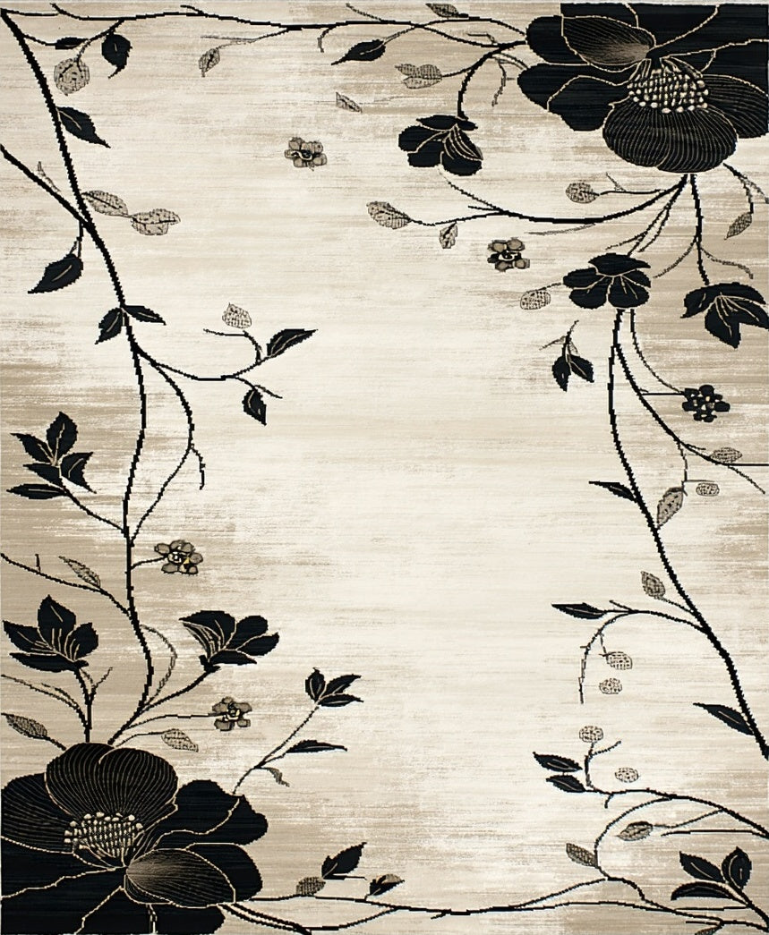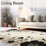 Ultra Soft Area Rug, Non Slip, Stain Resistant, Washable Area Rugs for Living Room, Bedroom, Elegant Black and Beige Abstract Flower(Beige) Overview: