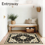 Ultra Soft Area Rug, Non Slip, Stain Resistant, Washable Area Rugs for Living Room, Bedroom, Elegant Black and Beige Medallion Area with Ornate Oriental Motifs(Black) Overview: