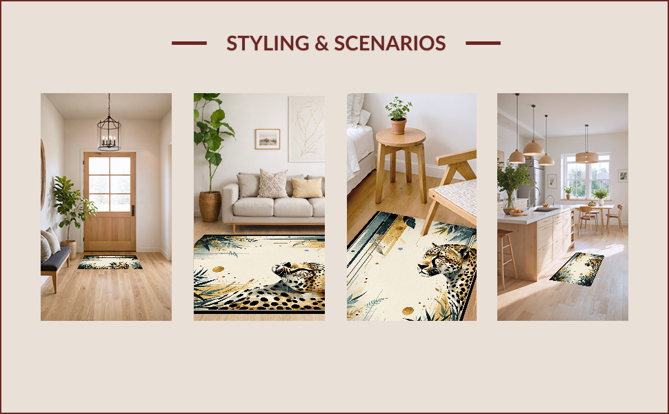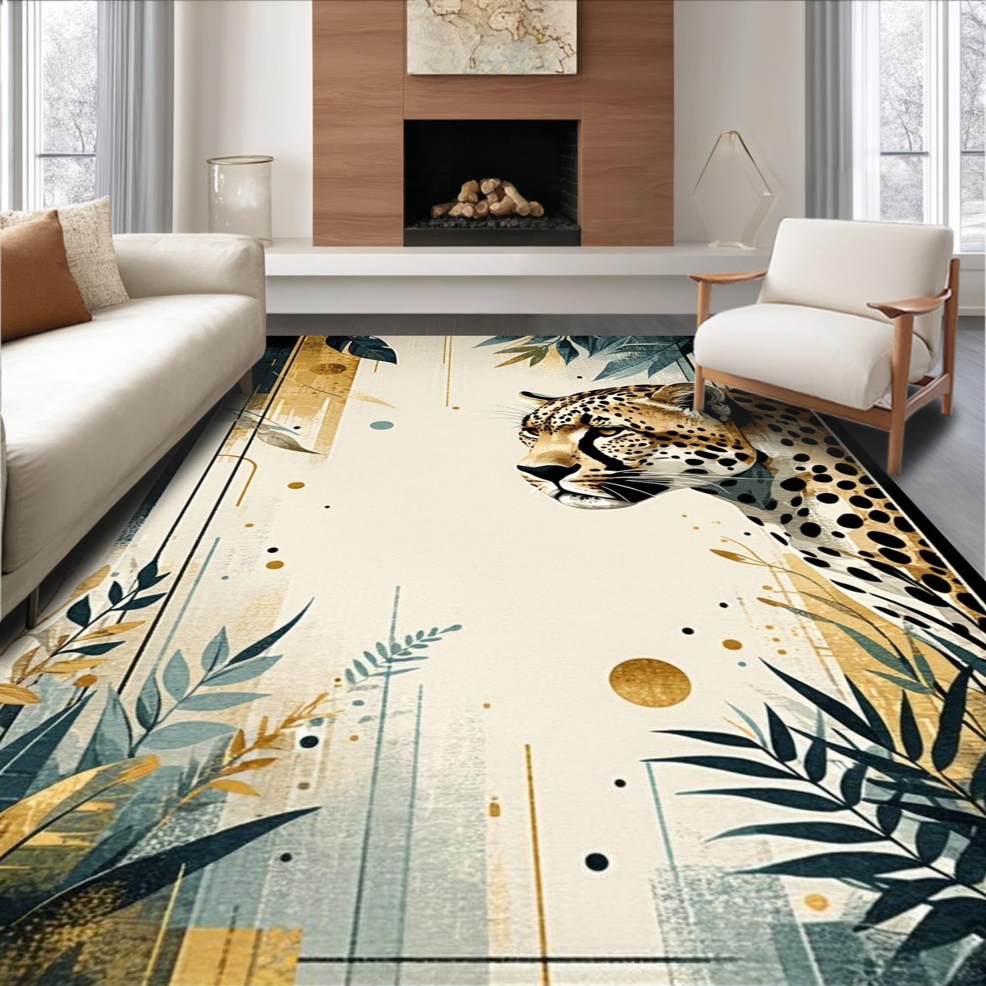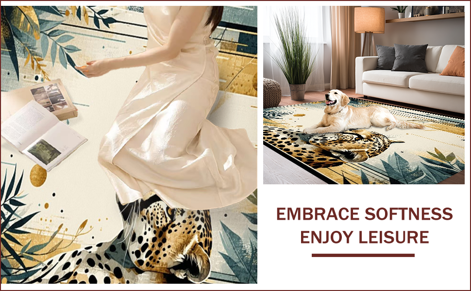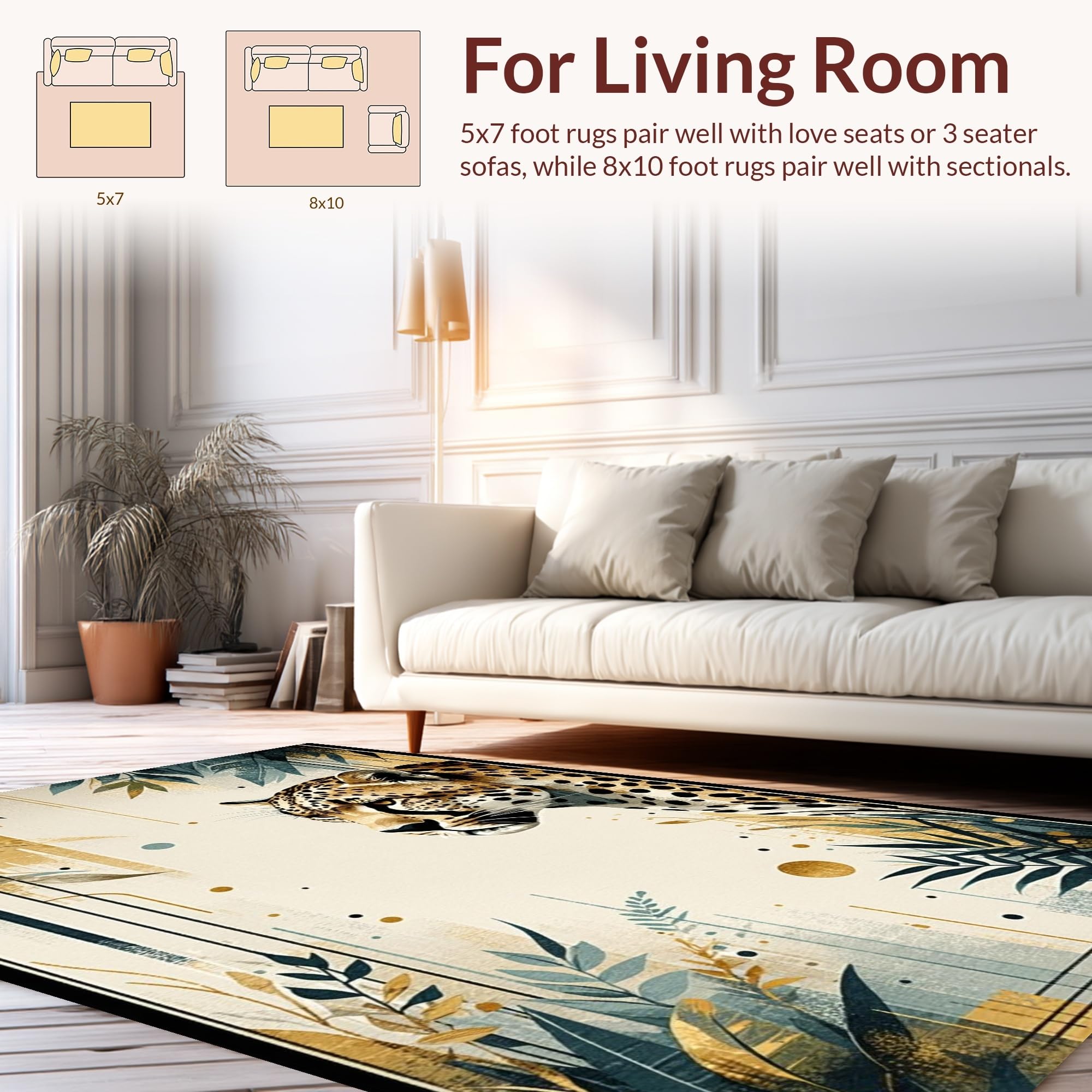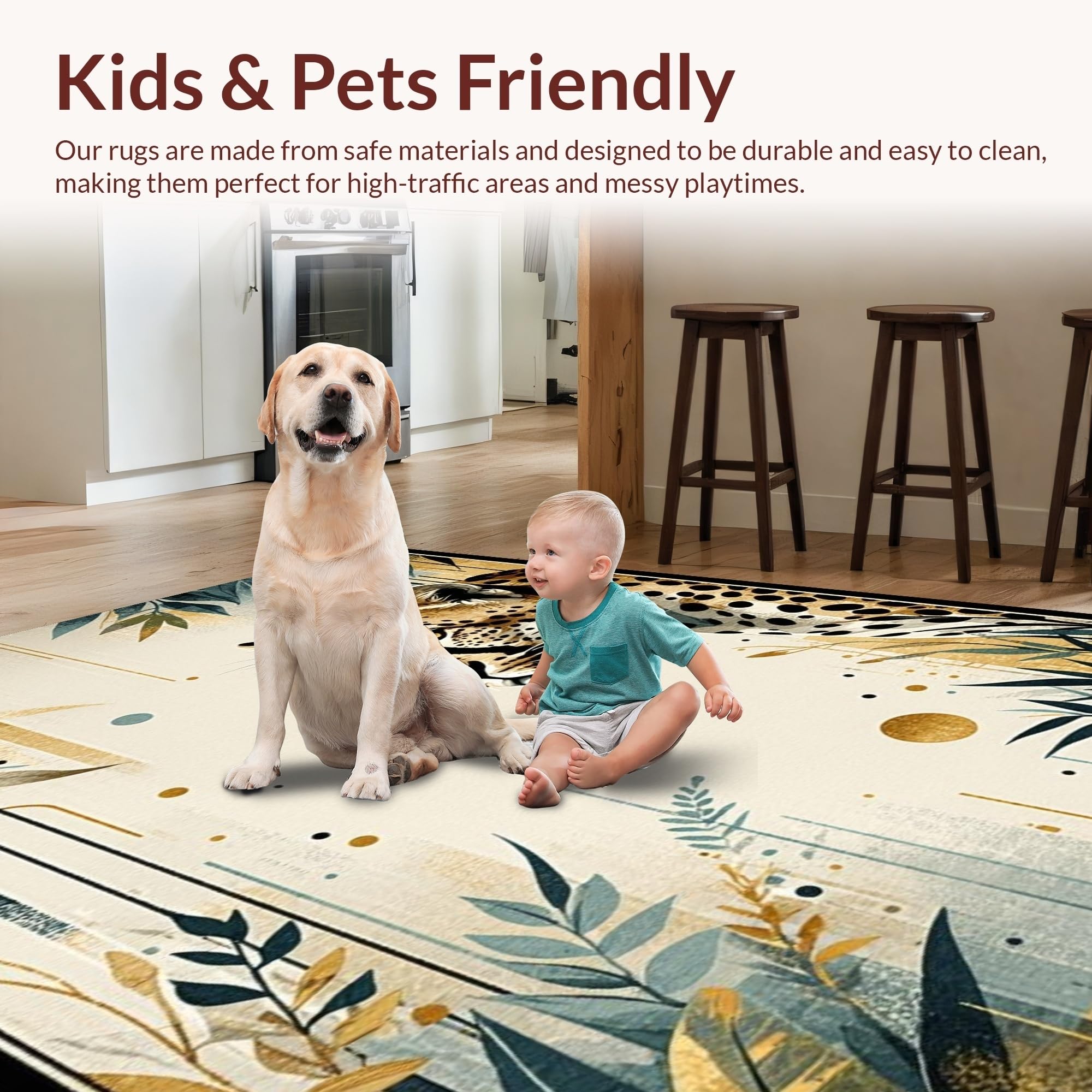Ultra Soft Area Rug, Non Slip, Stain Resistant, Washable Area Rugs for Living Room, Bedroom, Elegant Black and Ivory Animal Print(Gold) Overview: