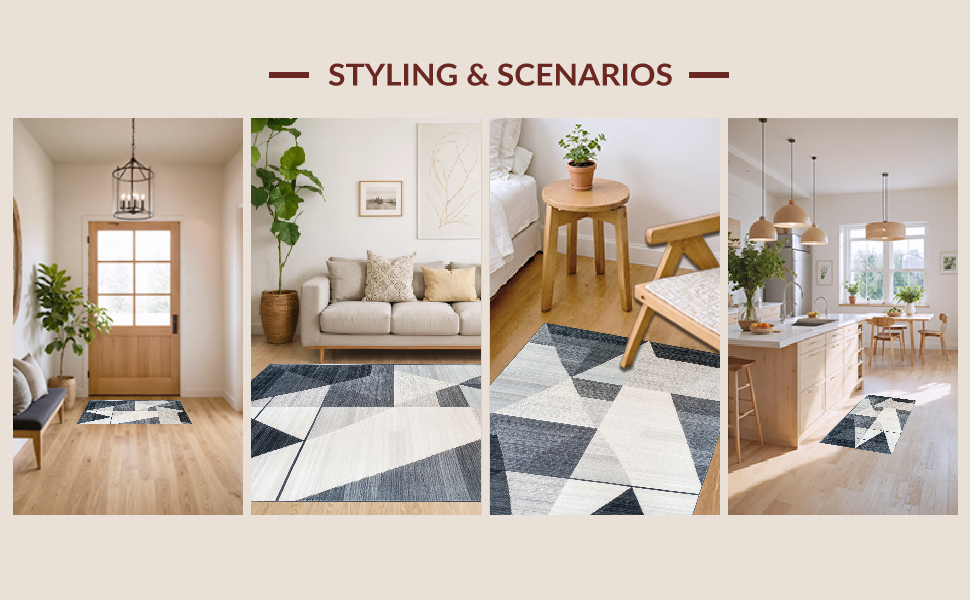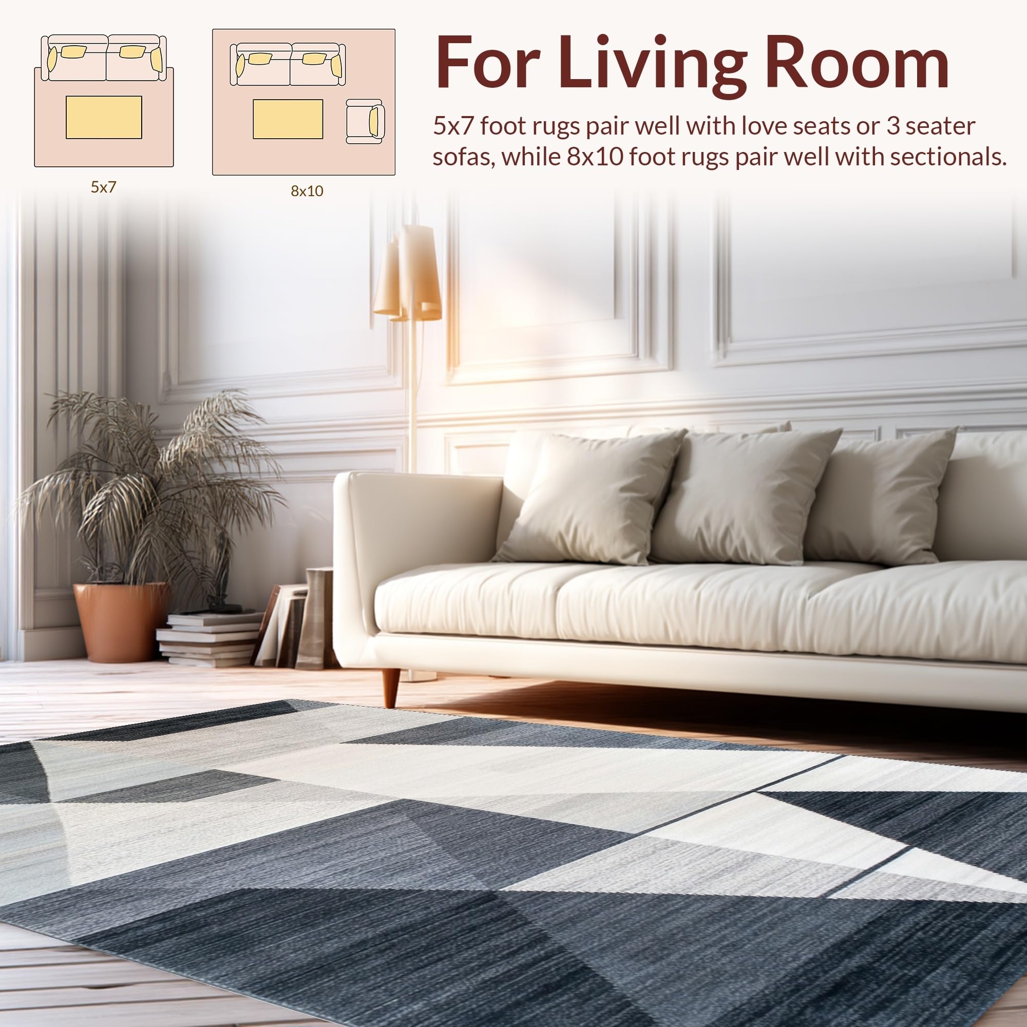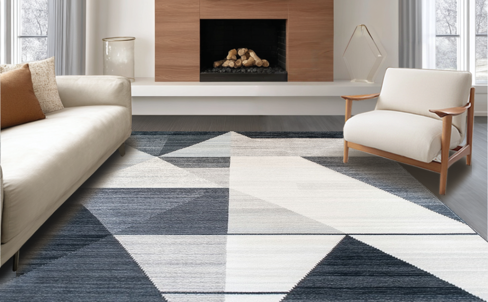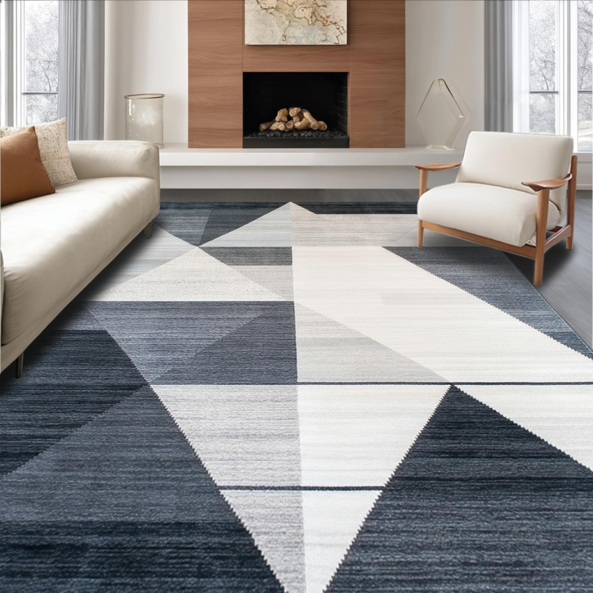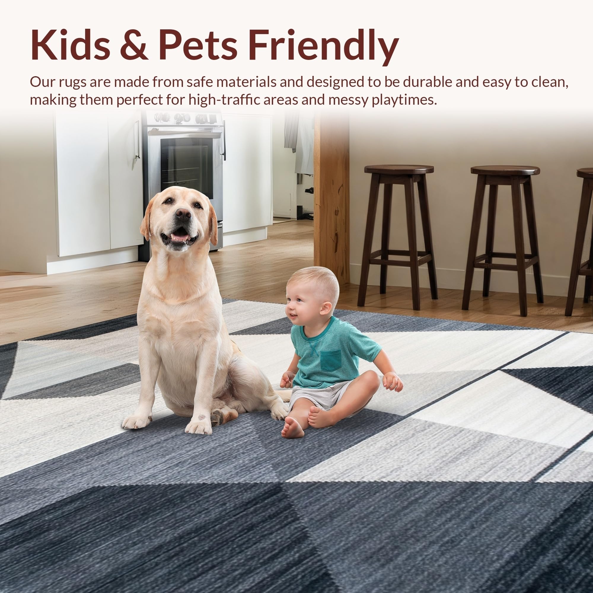 Ultra Soft Area Rug, Non Slip, Stain Resistant, Washable Area Rugs for Living Room, Bedroom, Elegant Black and White Diamond Motif(Gray) Overview: