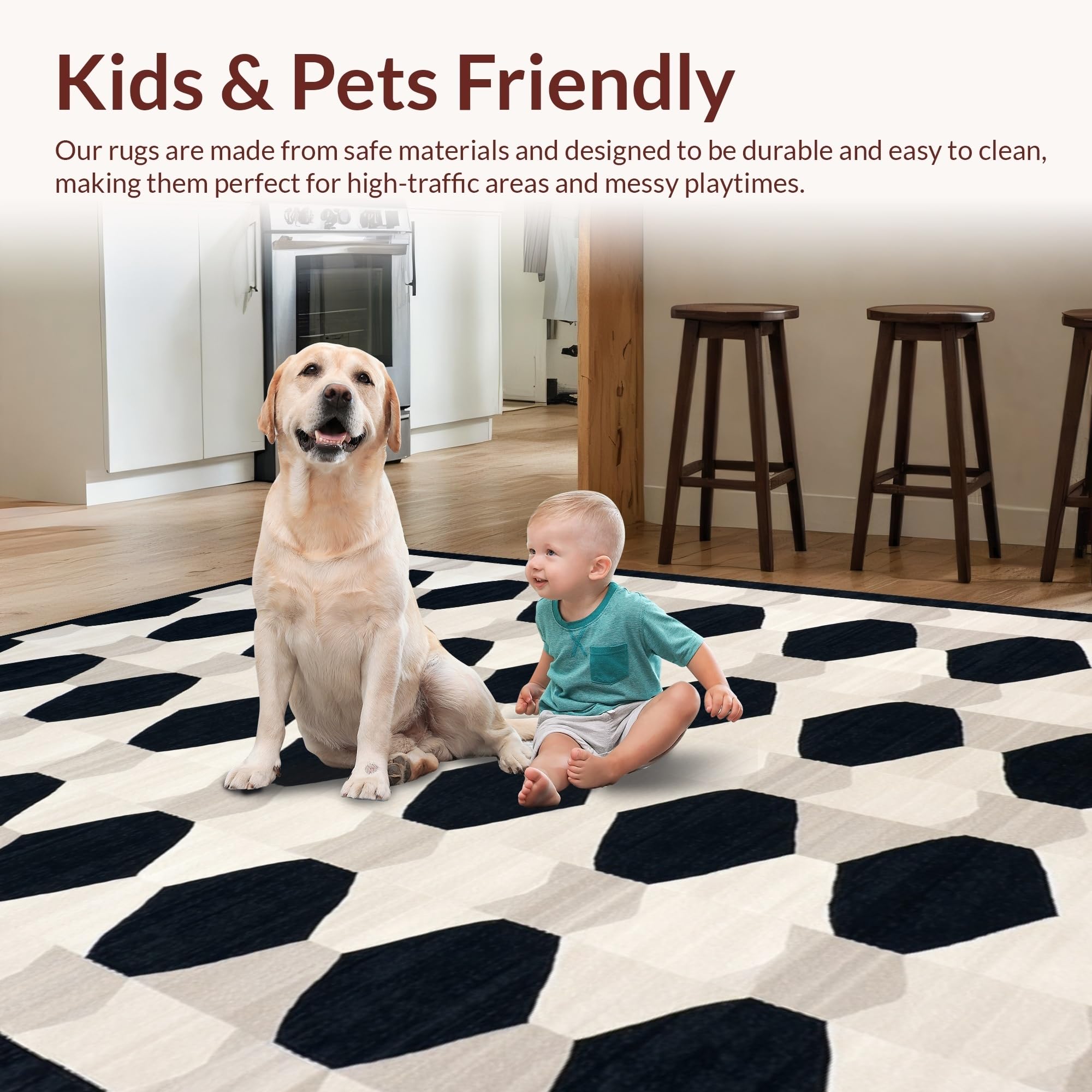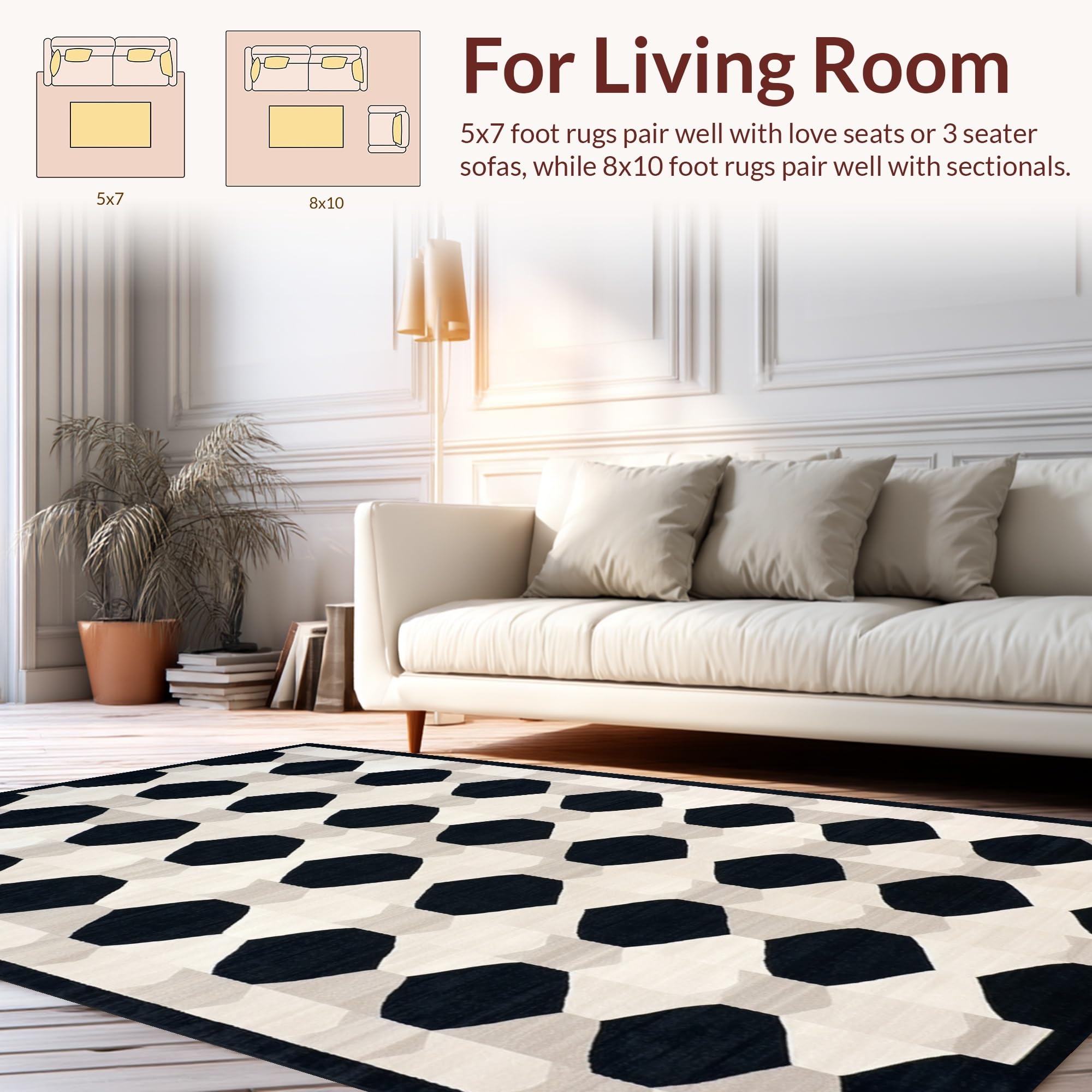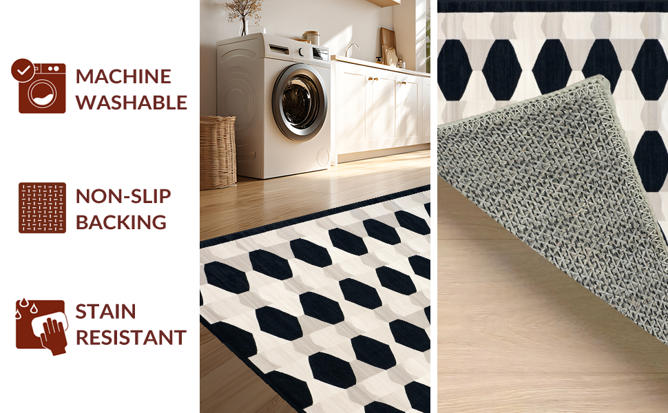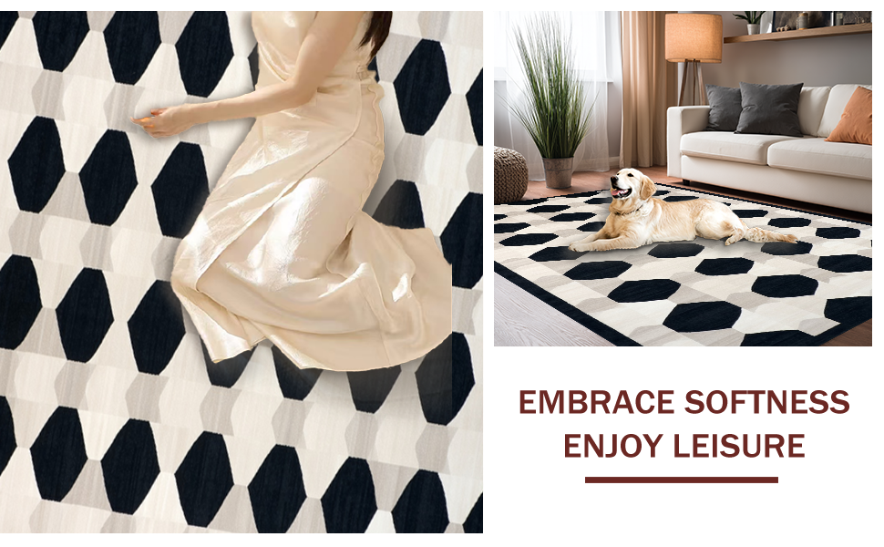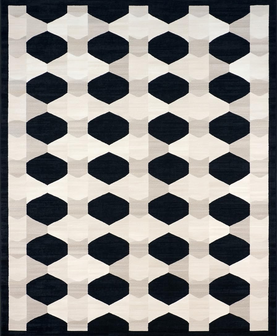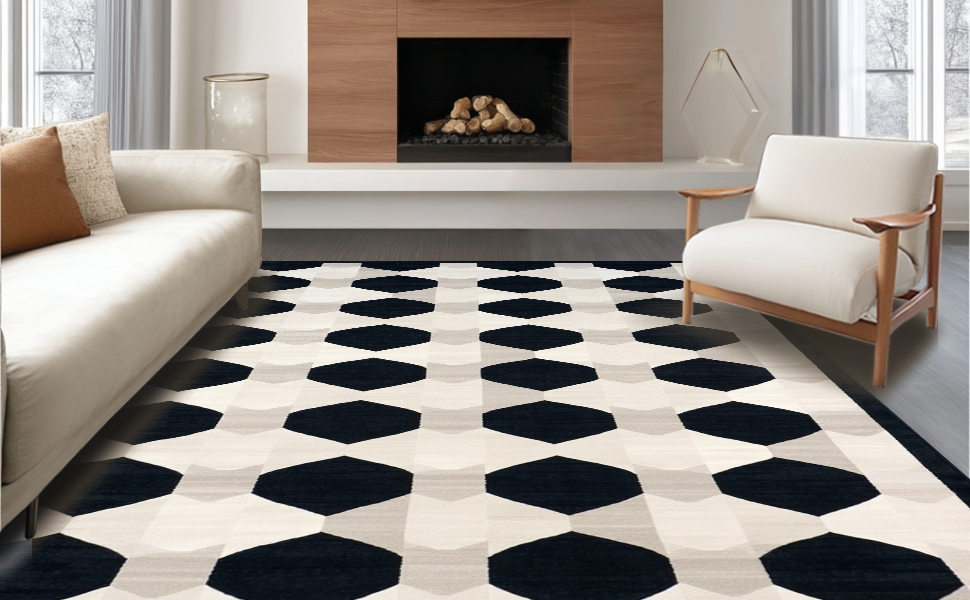 Ultra Soft Area Rug, Non Slip, Stain Resistant, Washable Area Rugs for Living Room, Bedroom, Elegant Black and White Geometric Flow(Black) Overview: