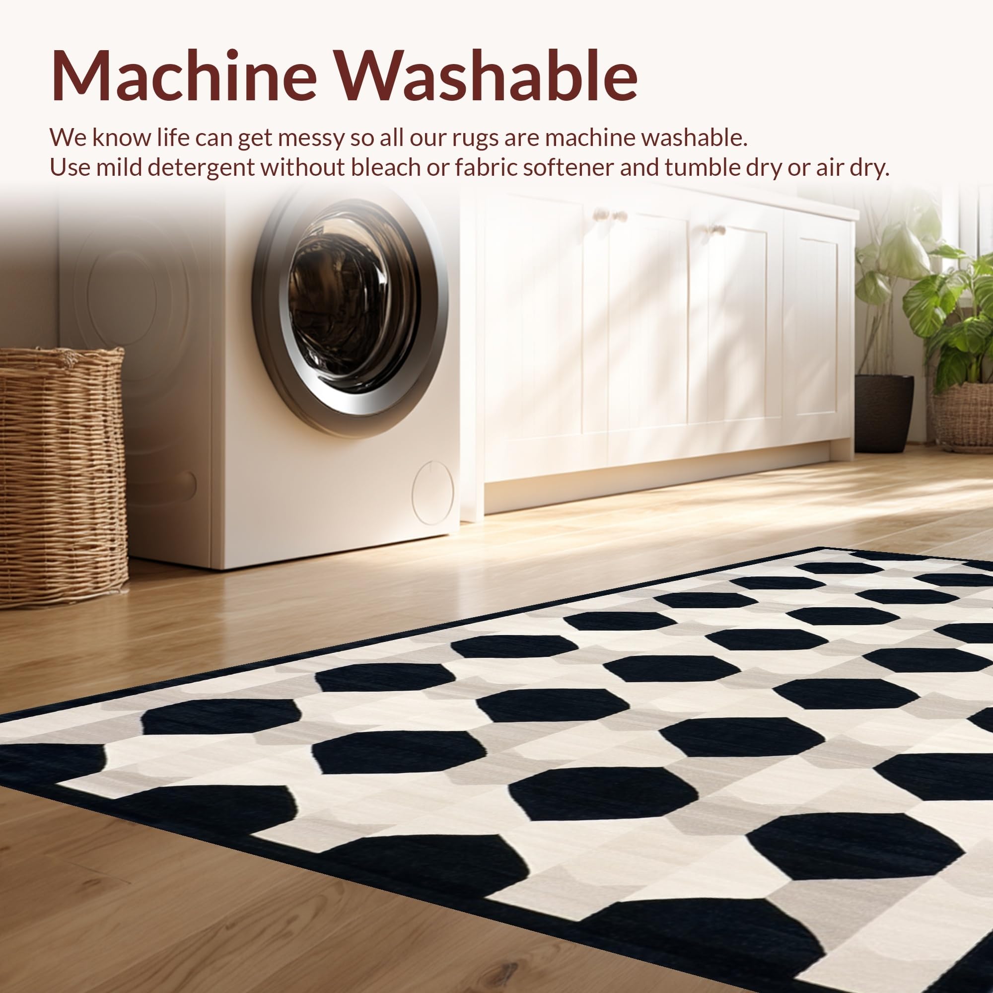 - Machine Washable: Our rugs can be easily thrown in the wash machine.
