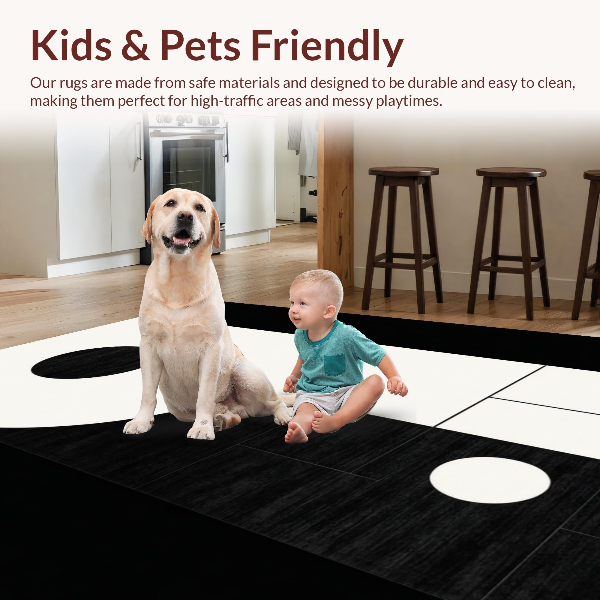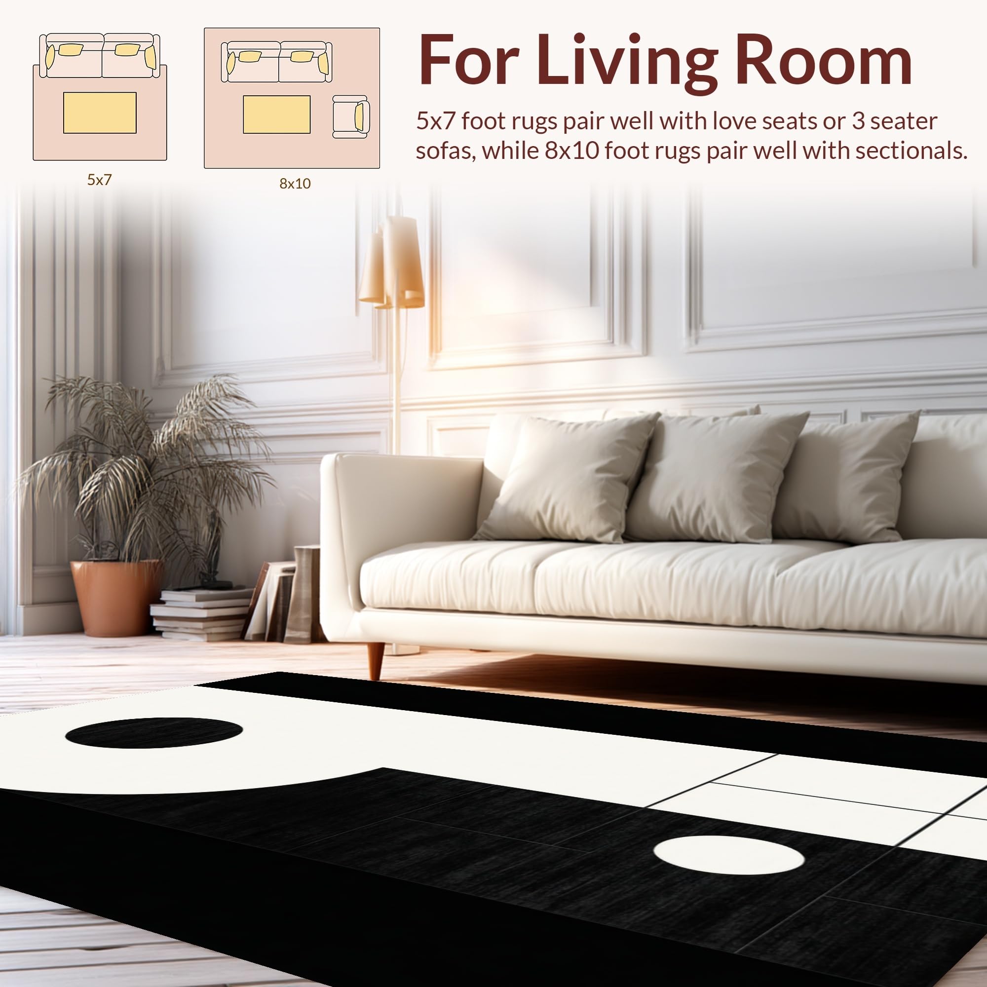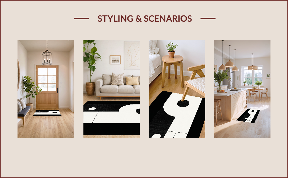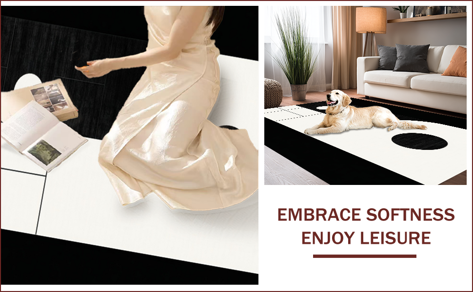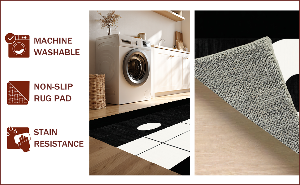 Ultra Soft Area Rug, Non Slip, Stain Resistant, Washable Area Rugs for Living Room, Bedroom, Elegant Black and White Geometric Visual(Black) Overview: