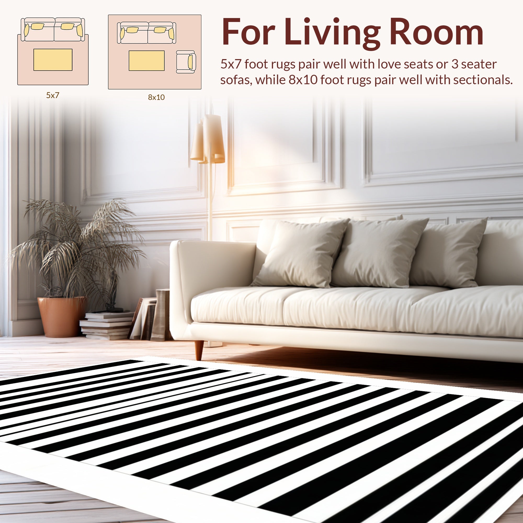 Ultra Soft Area Rug, Non Slip, Stain Resistant, Washable Area Rugs for Living Room, Bedroom, Elegant Black And White Striped Carpet Perfect For Stylish Entryways(Gray) Overview:
