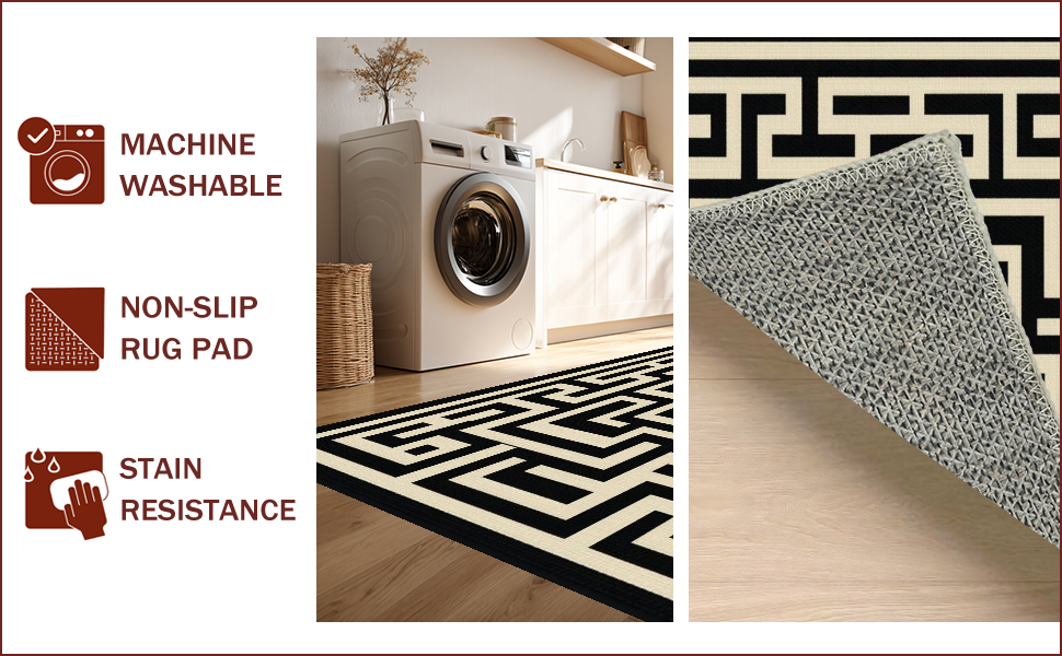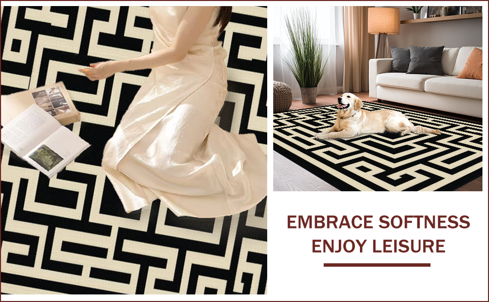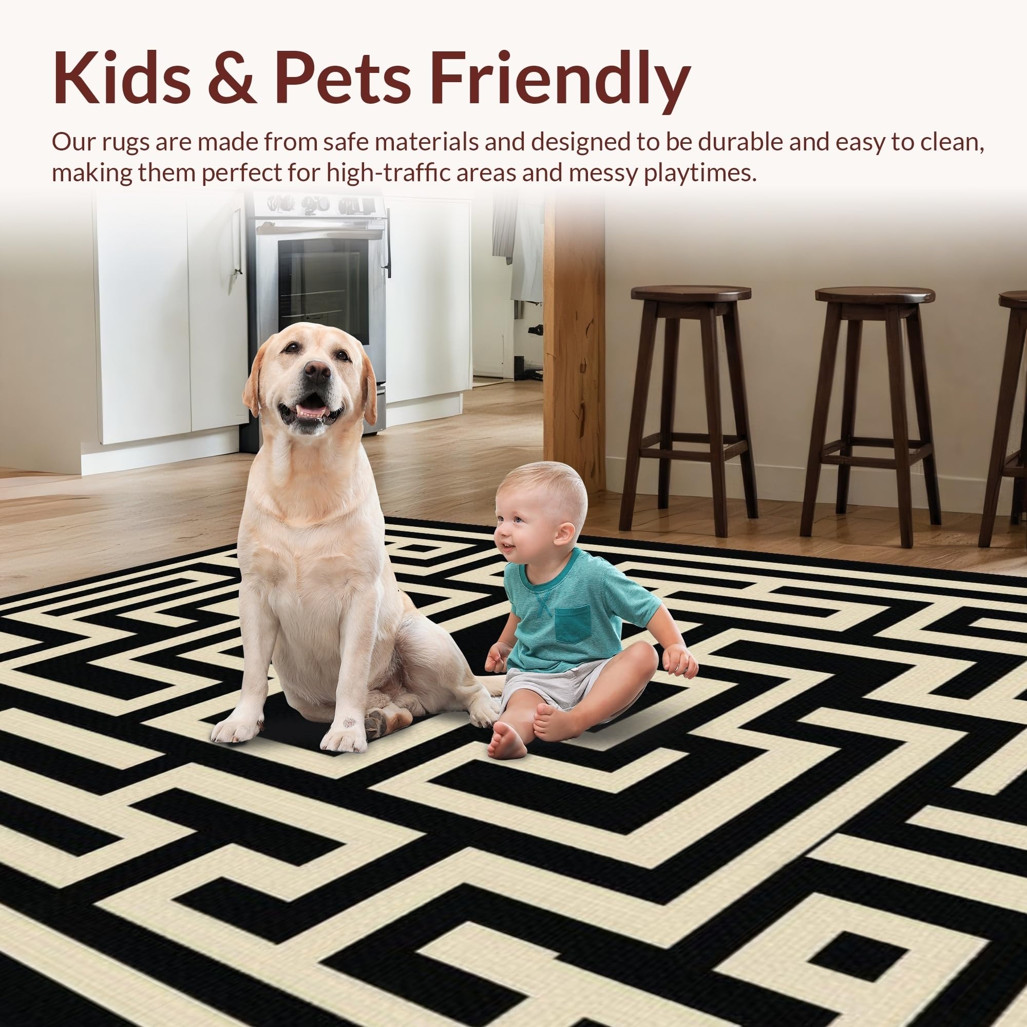 Ultra Soft Area Rug, Non Slip, Stain Resistant, Washable Area Rugs for Living Room, Bedroom, Elegant Black Beige Trellis Aesthetic(Beige) Overview: