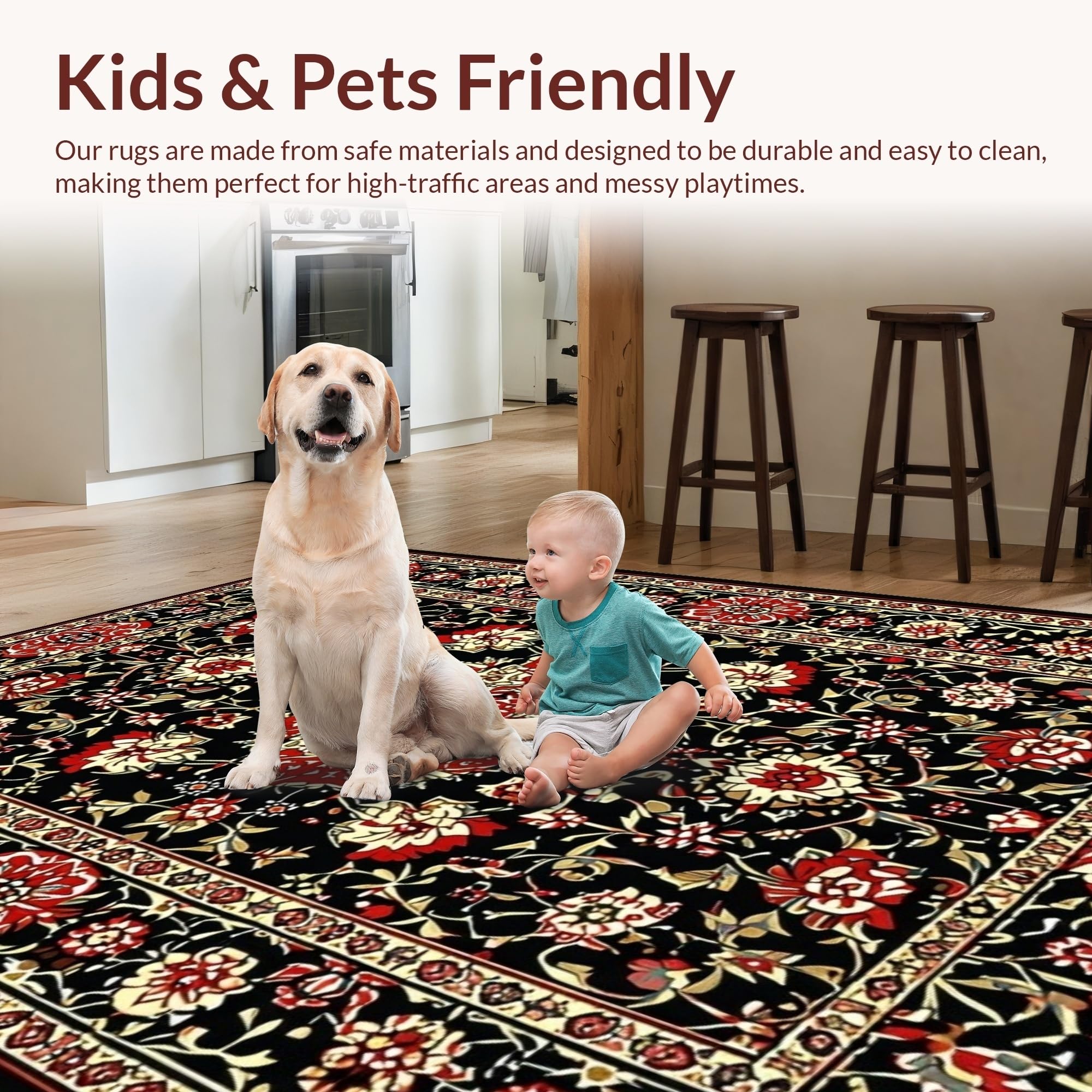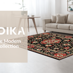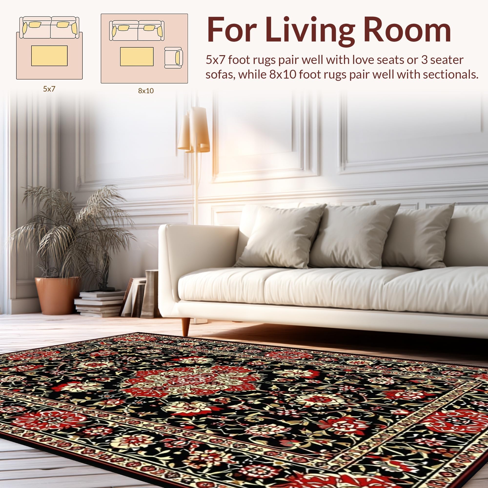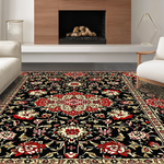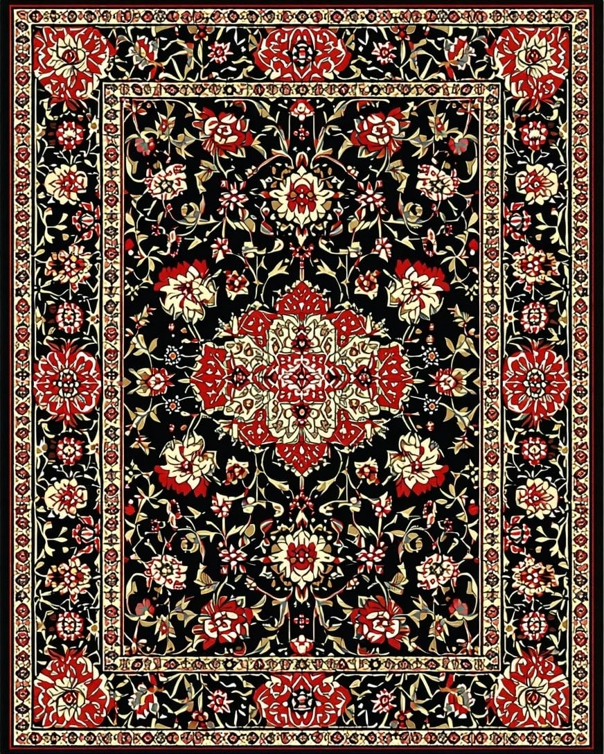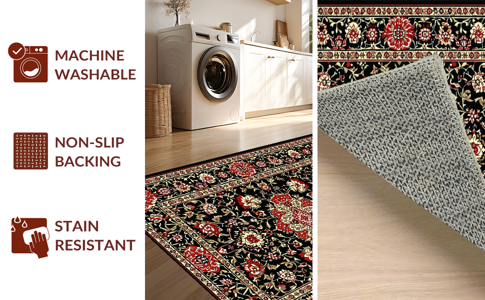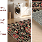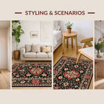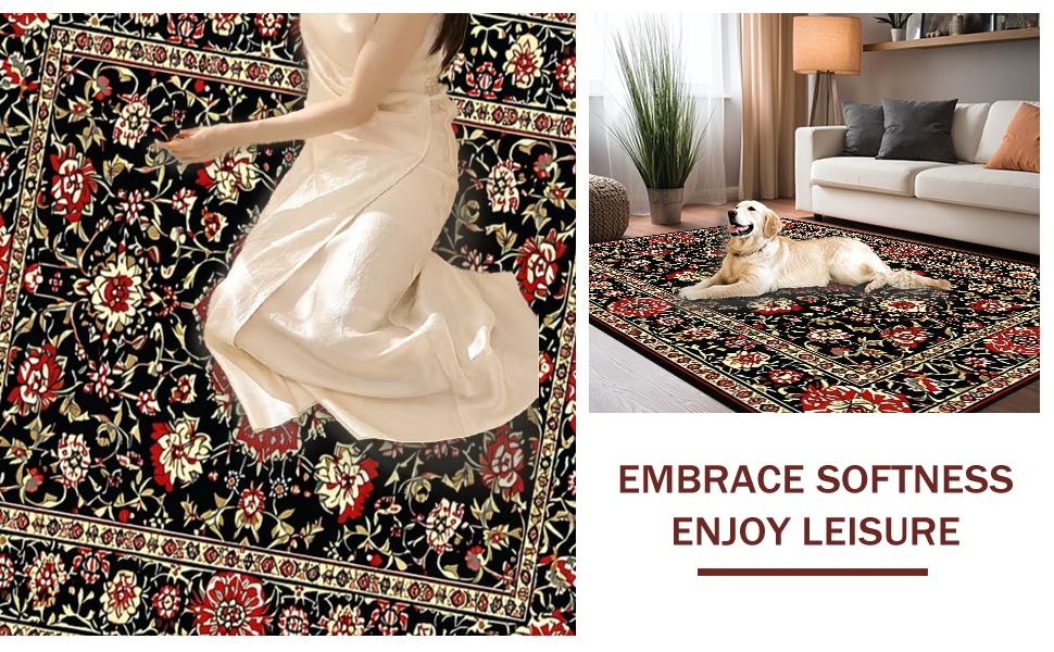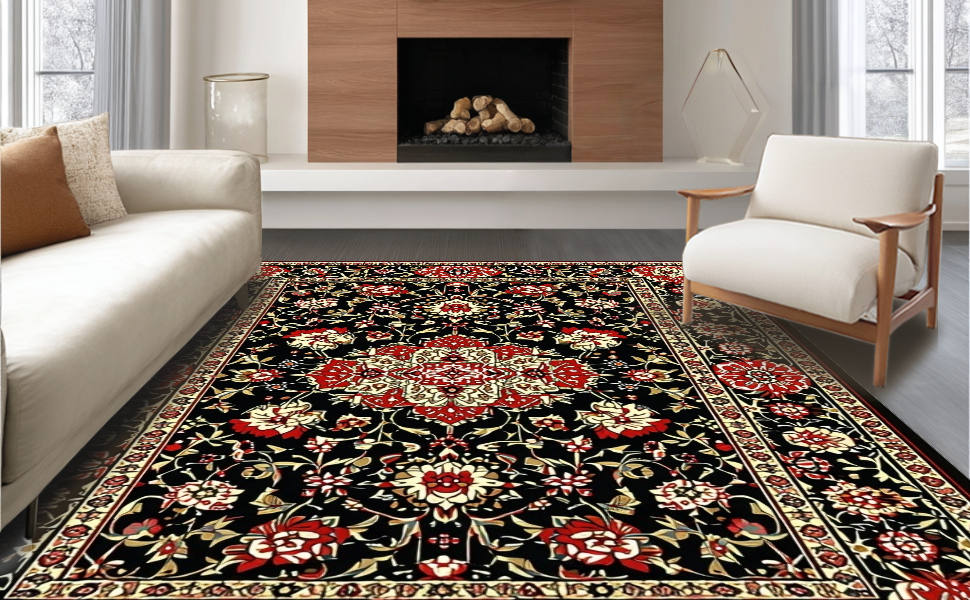 Ultra Soft Area Rug, Non Slip, Stain Resistant, Washable Area Rugs for Living Room, Bedroom, Elegant Black Botanical Aesthetic(Black) Overview:
