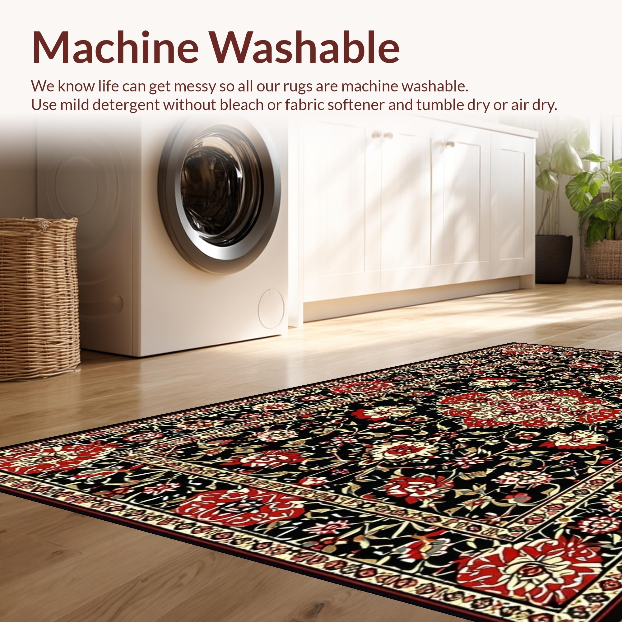 - Machine Washable: Our rugs can be easily thrown in the wash machine.