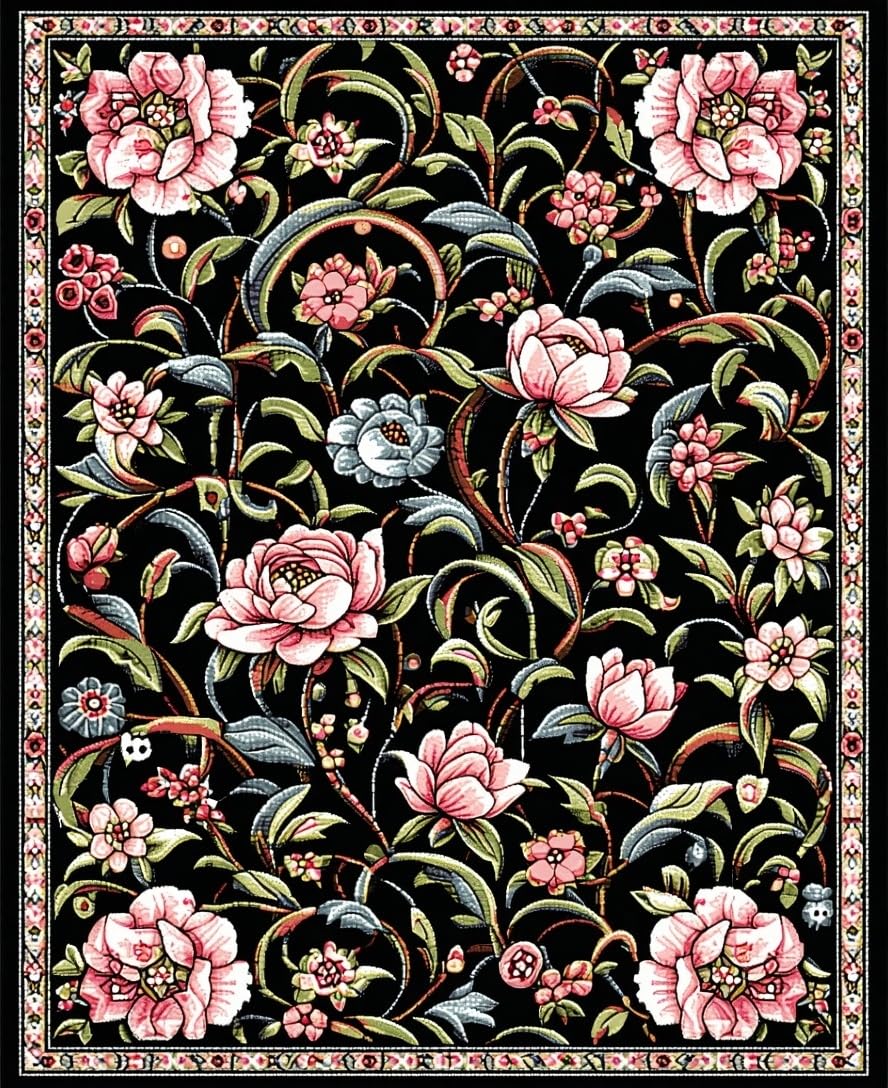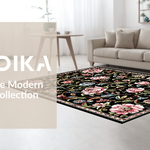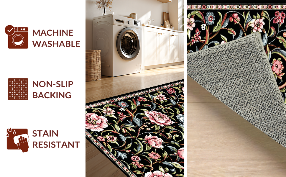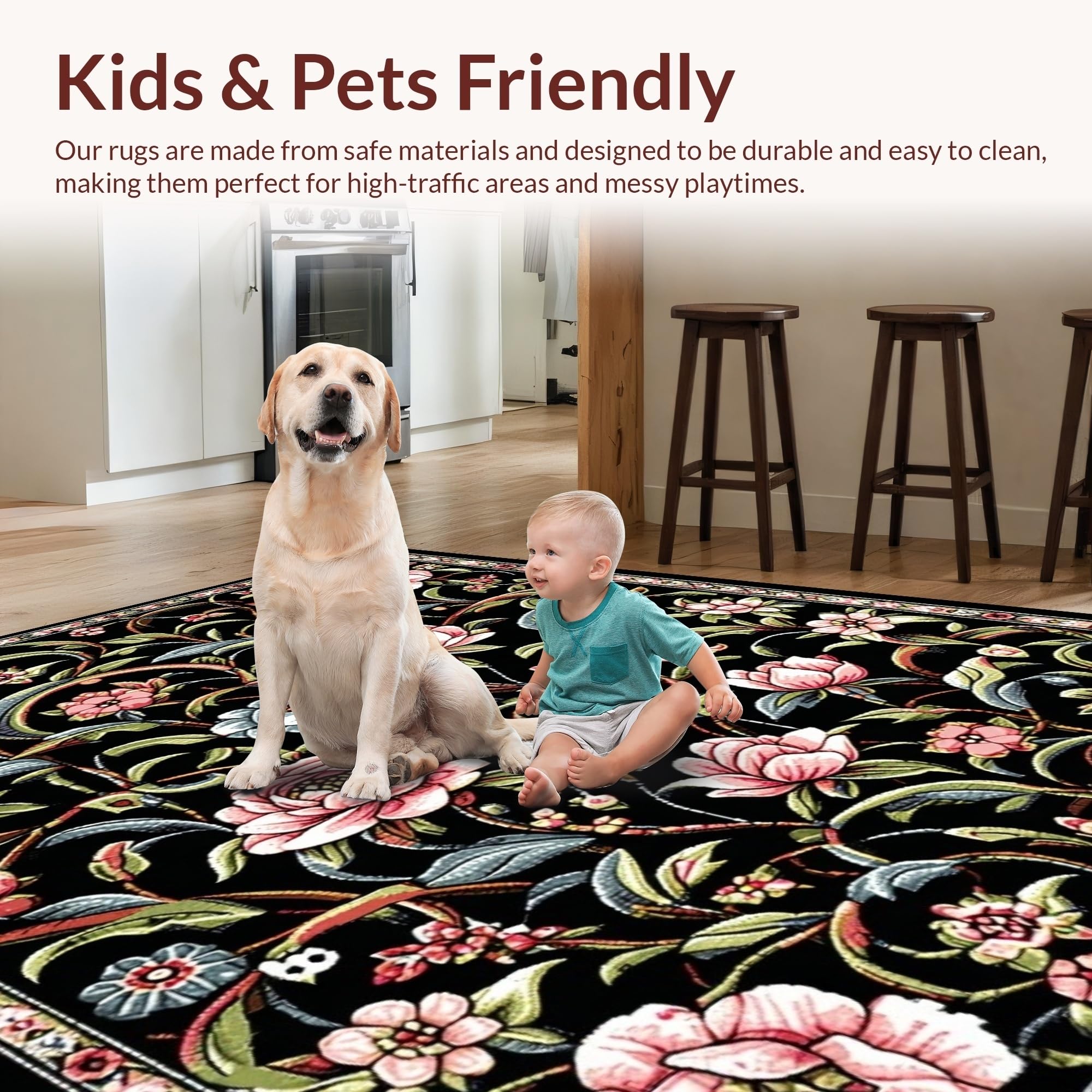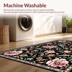Ultra Soft Area Rug, Non Slip, Stain Resistant, Washable Area Rugs for Living Room, Bedroom, Elegant Black Botanical Elements(Black) Overview: