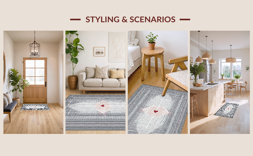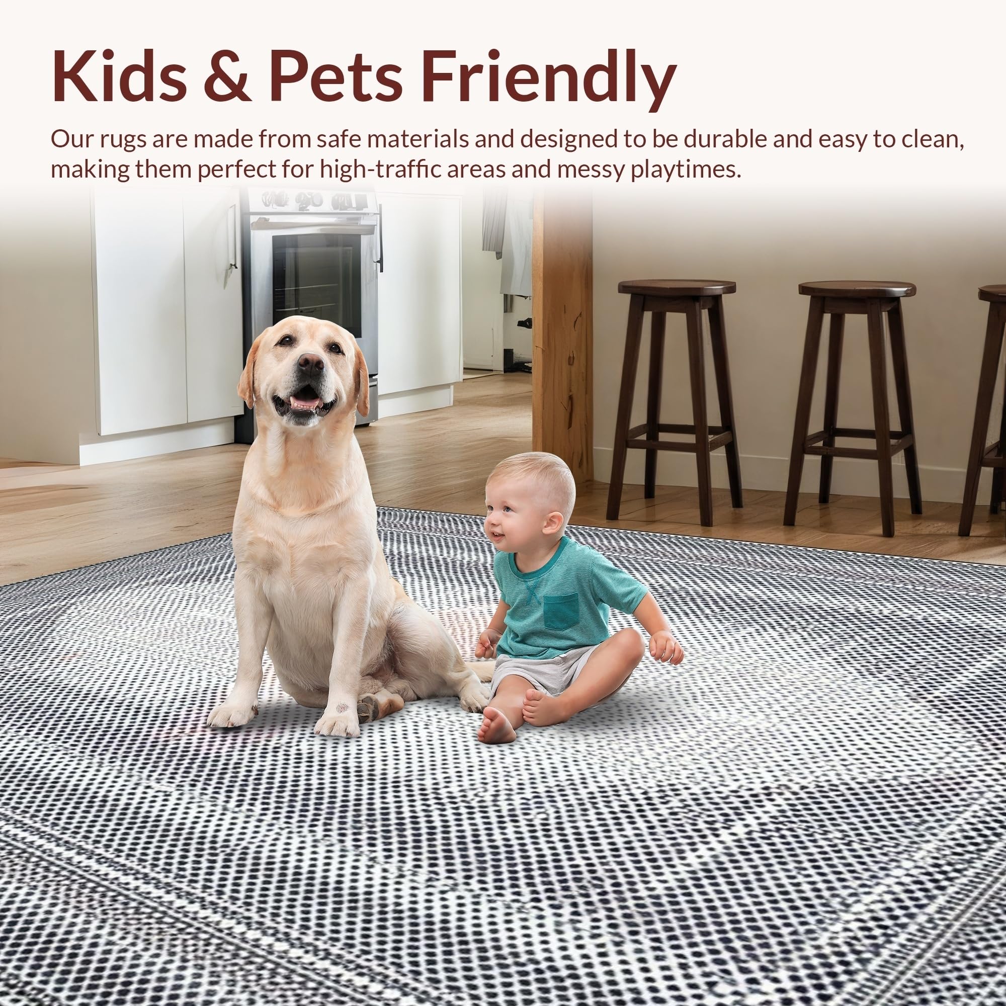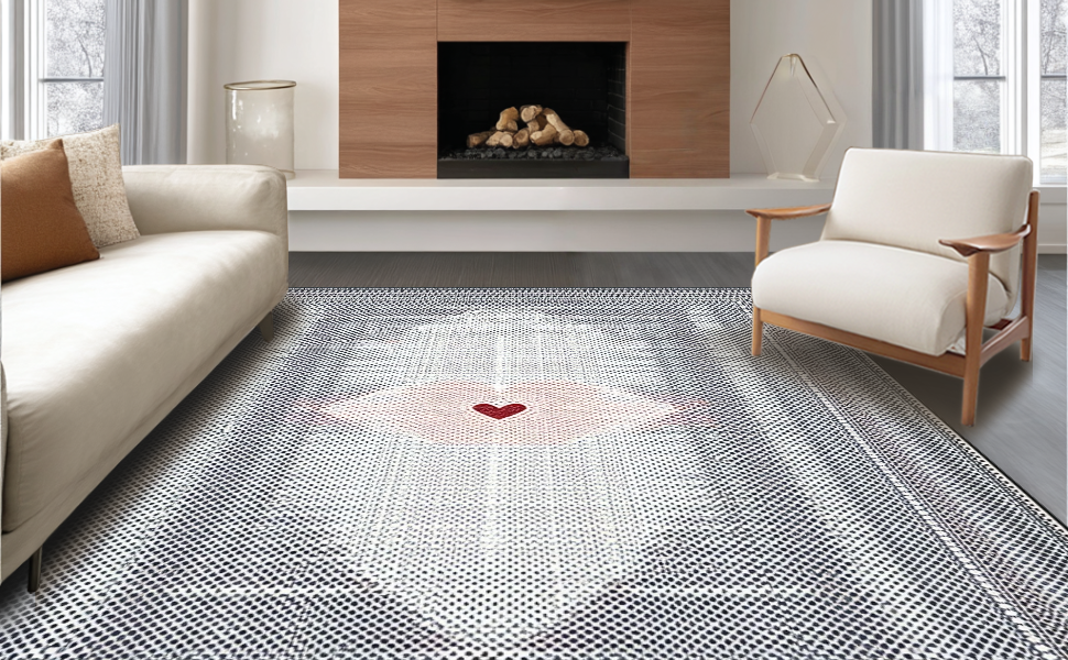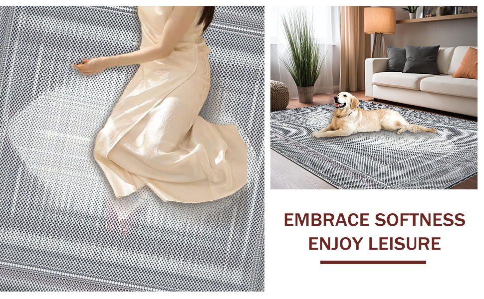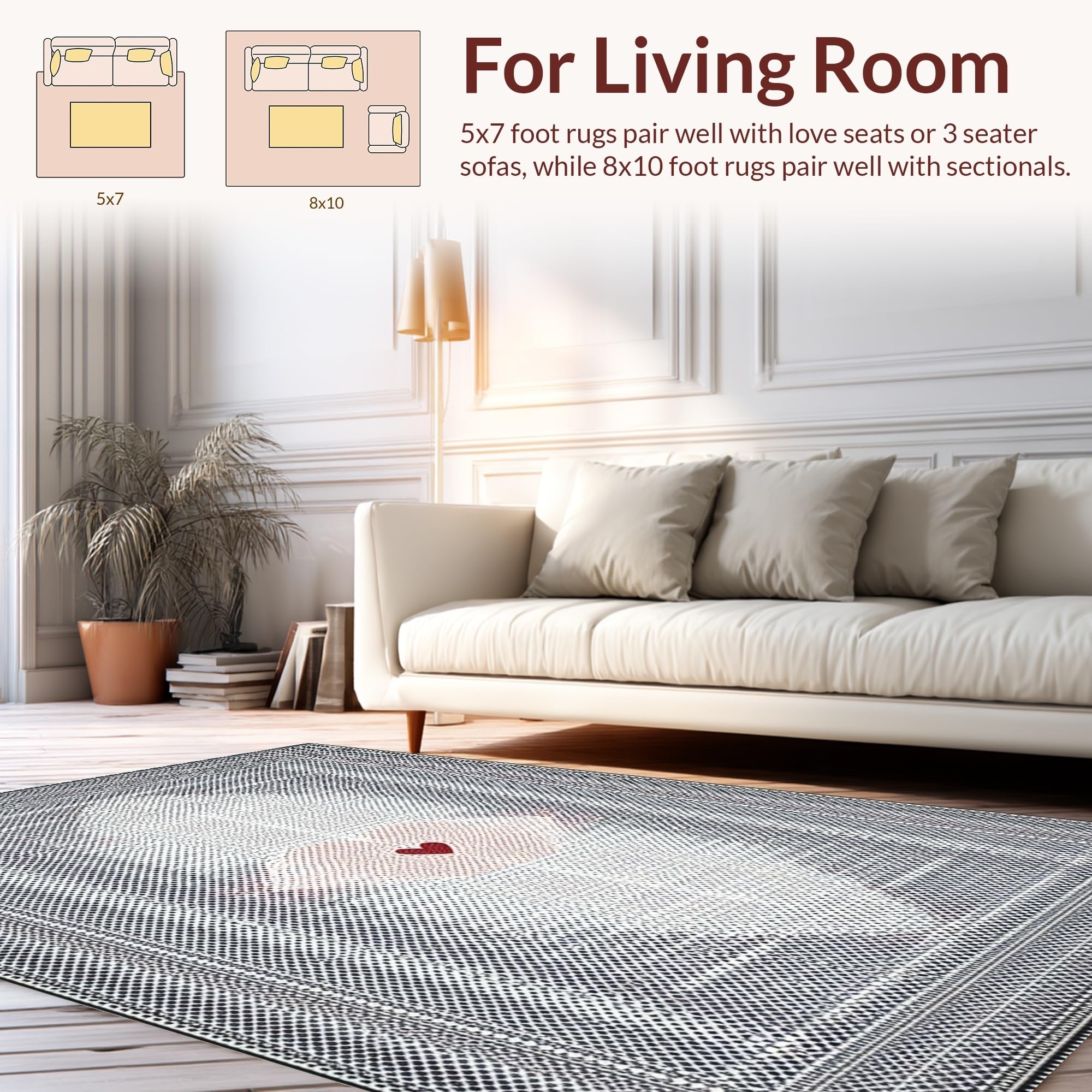 Ultra Soft Area Rug, Non Slip, Stain Resistant, Washable Area Rugs for Living Room, Bedroom, Elegant Black Cozy Design(Gray) Overview: