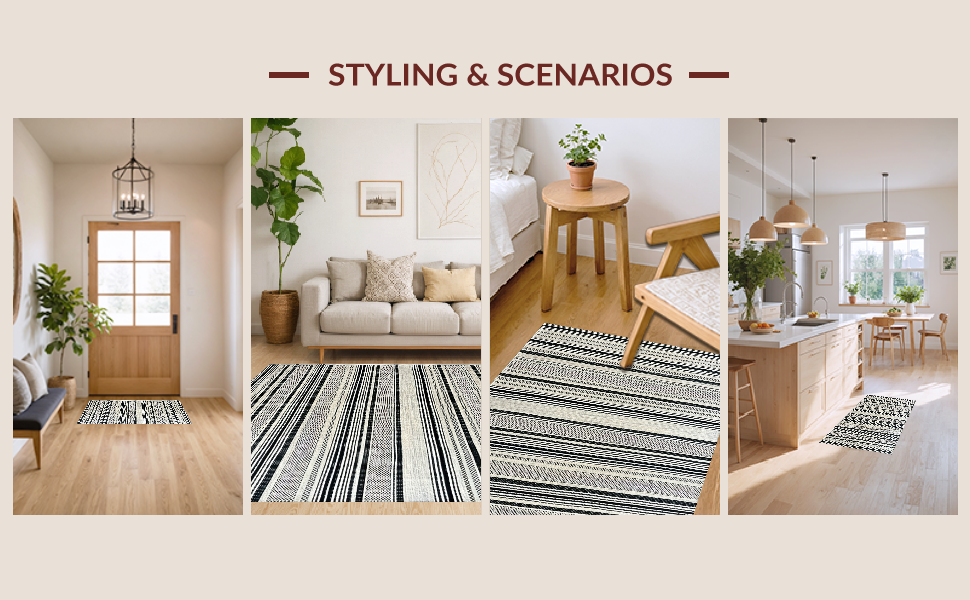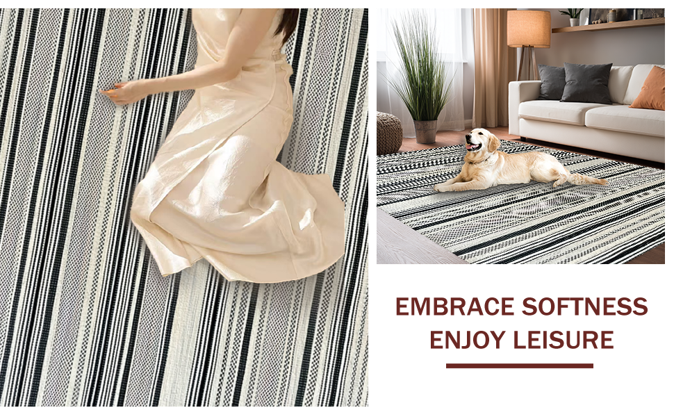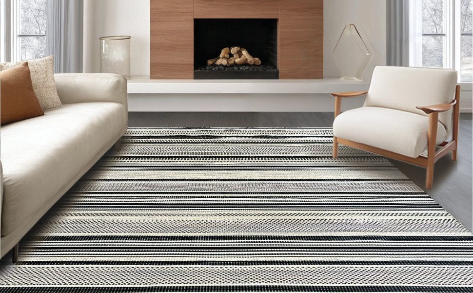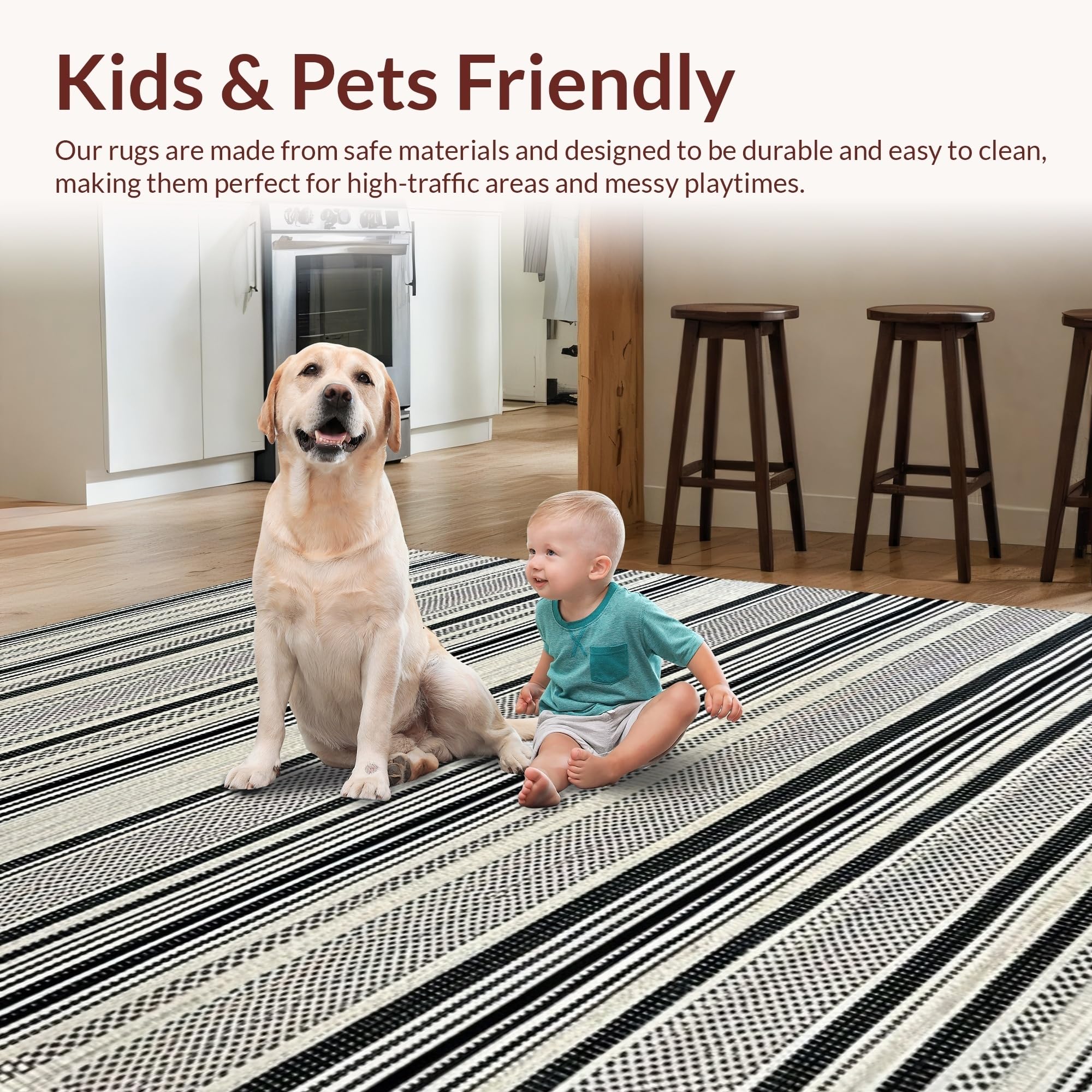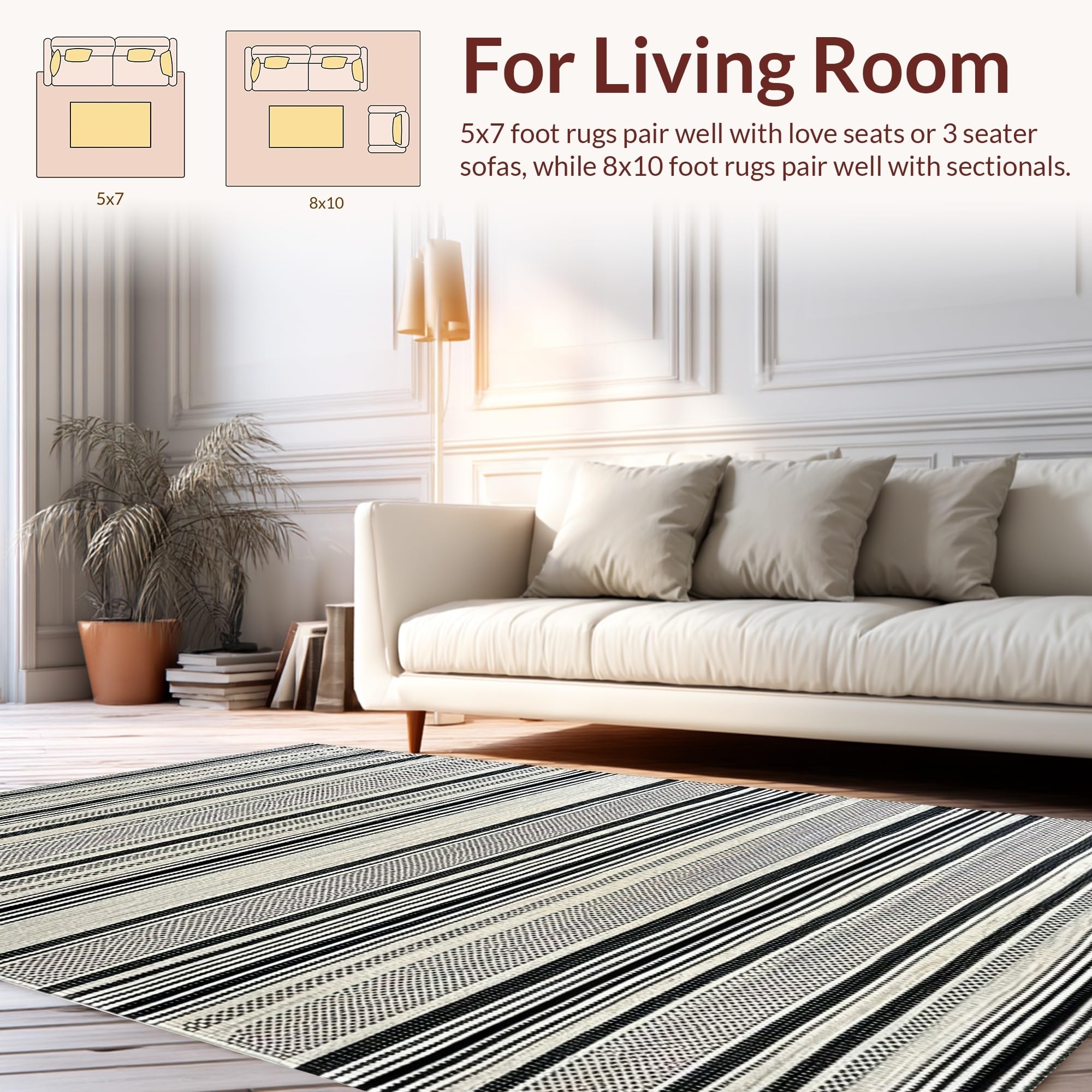 Ultra Soft Area Rug, Non Slip, Stain Resistant, Washable Area Rugs for Living Room, Bedroom, Elegant Black Cream Geometric Design(Black) Overview: