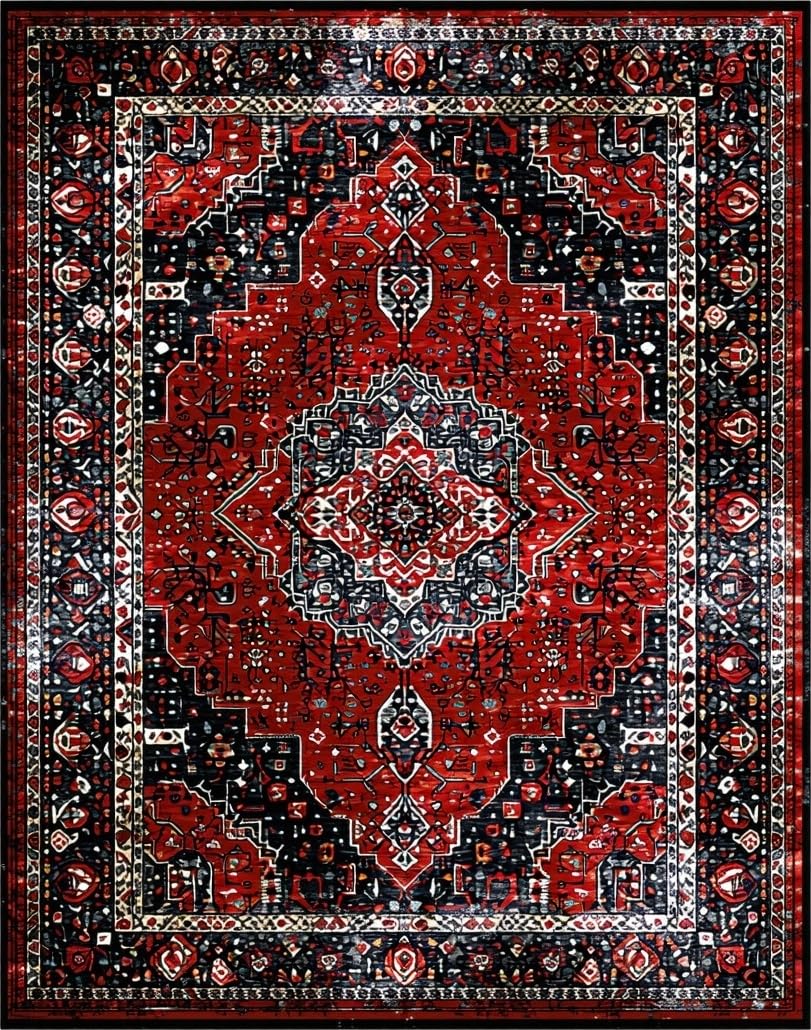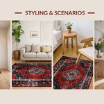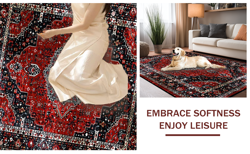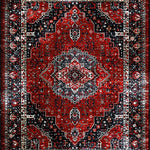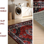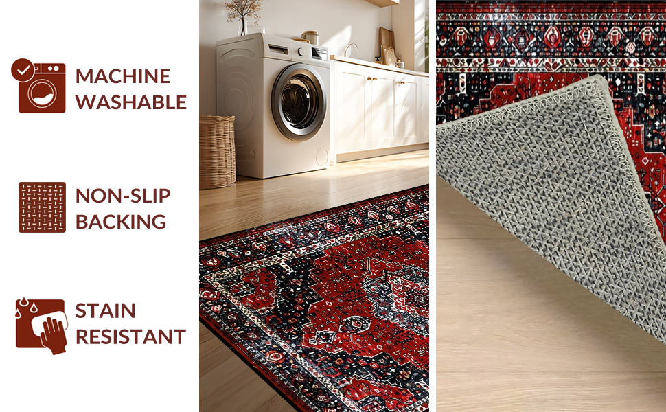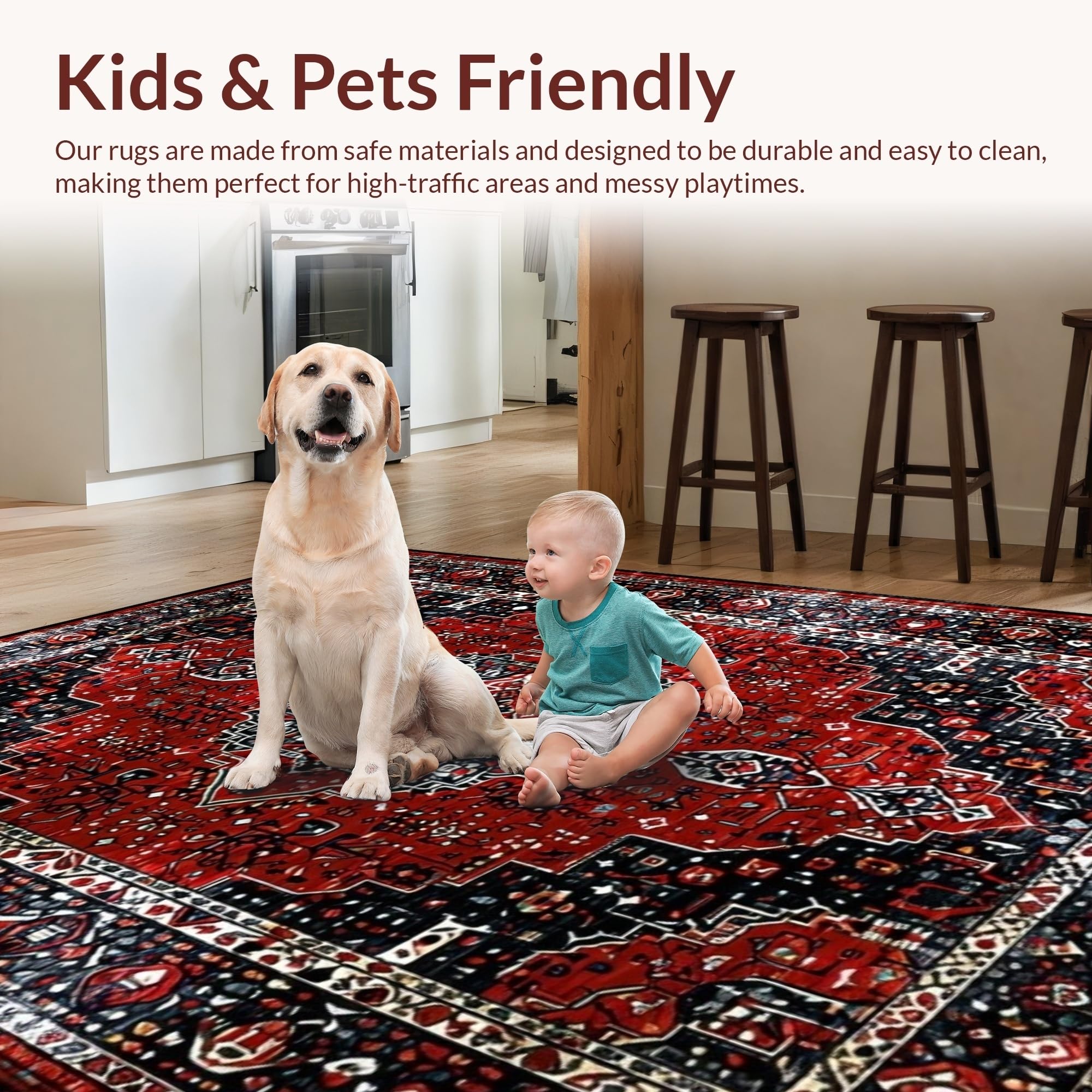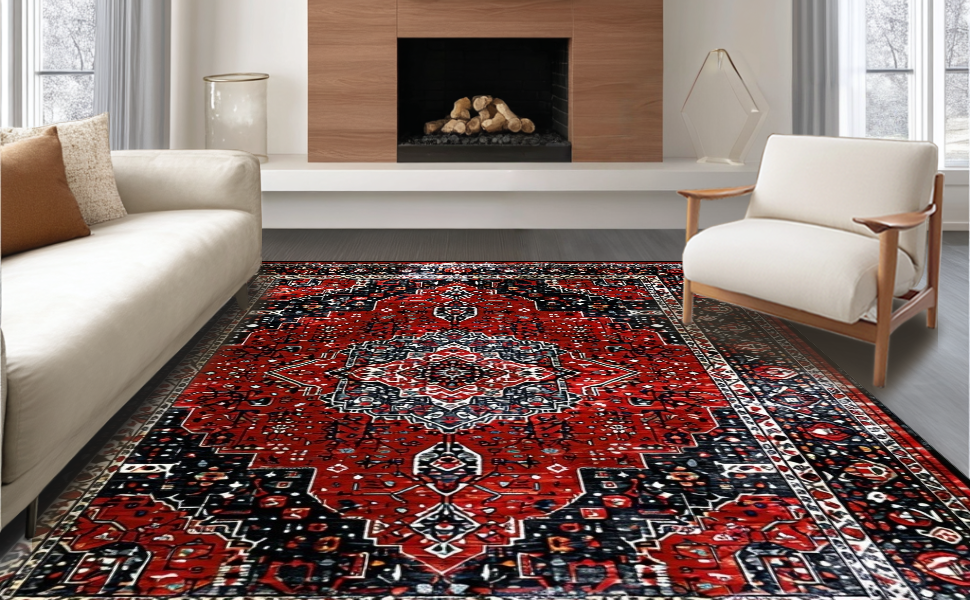 Ultra Soft Area Rug, Non Slip, Stain Resistant, Washable Area Rugs for Living Room, Bedroom, Elegant Black Distressed Design(Red) Overview: