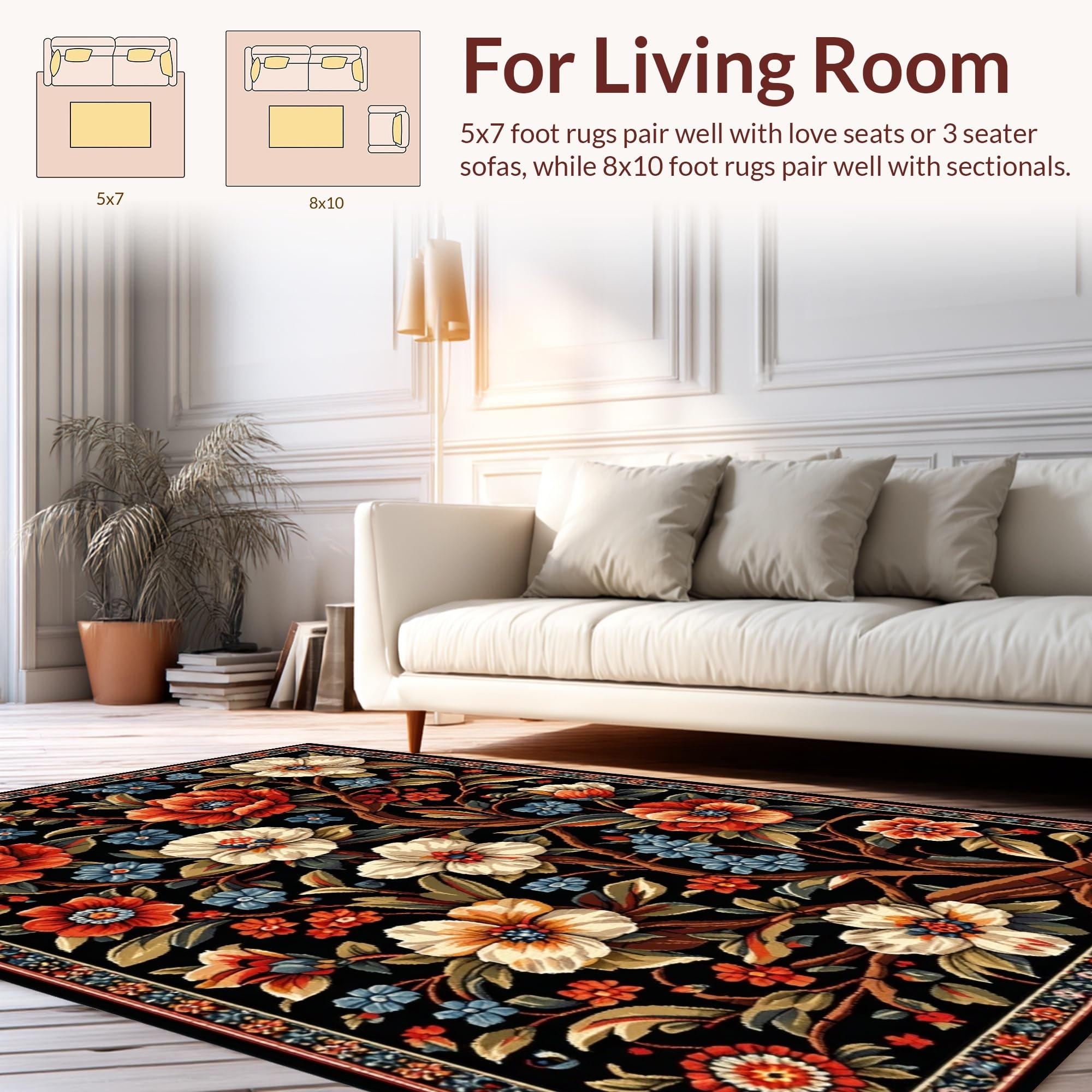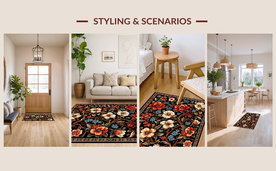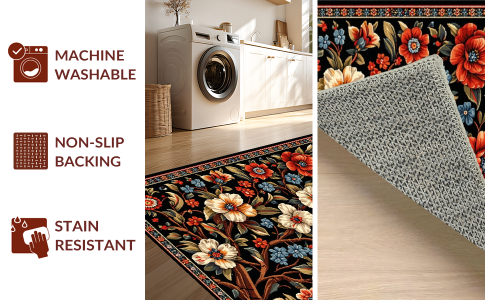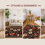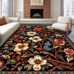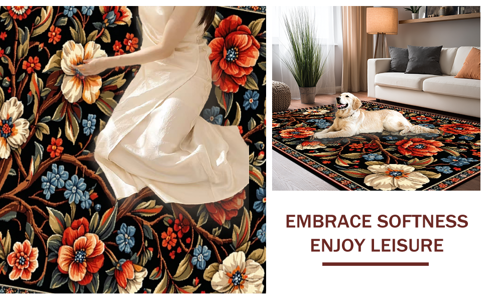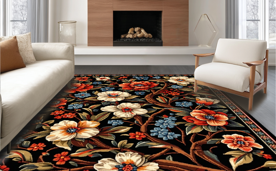 Ultra Soft Area Rug, Non Slip, Stain Resistant, Washable Area Rugs for Living Room, Bedroom, Elegant Black Floral Elegance(Black) Overview: