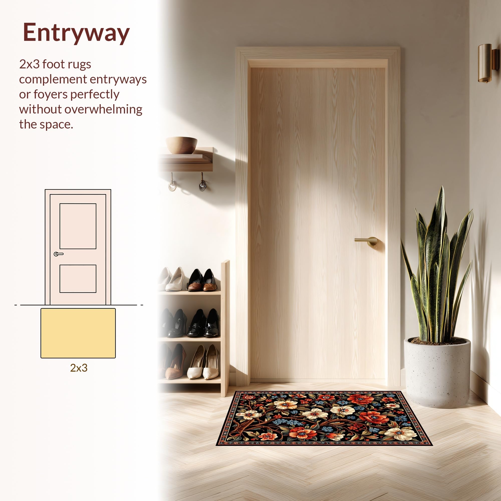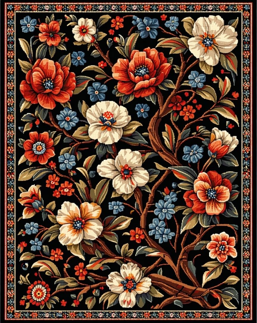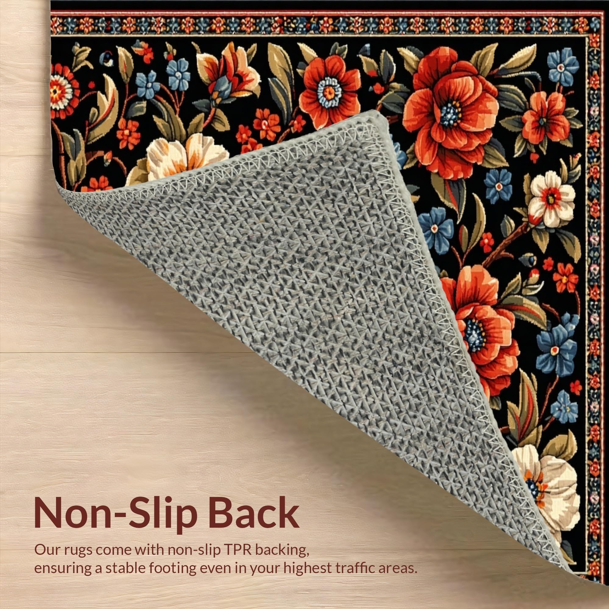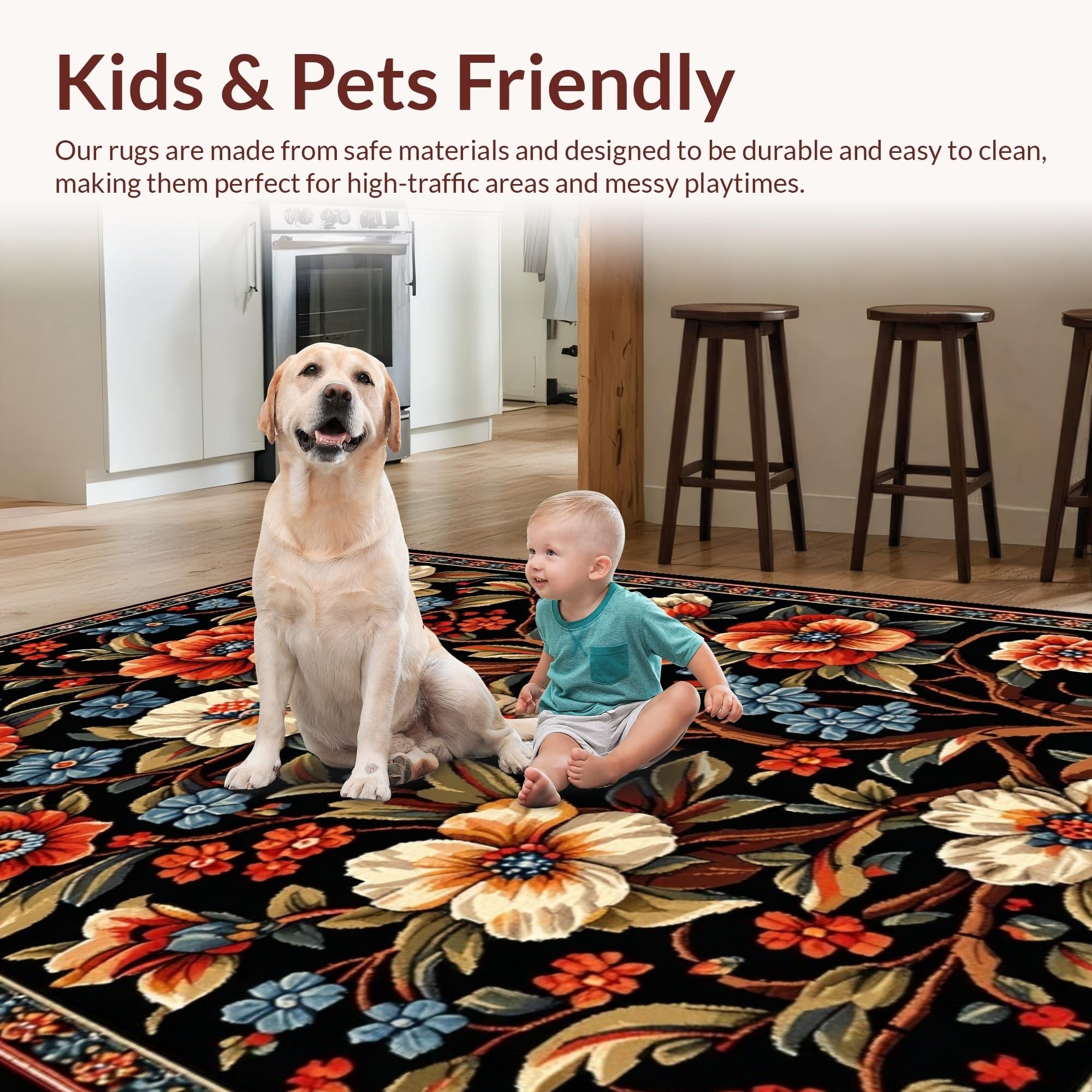 Ultra Soft Area Rug, Non Slip, Stain Resistant, Washable Area Rugs for Living Room, Bedroom, Elegant Black Floral Elegance(Black) Overview: