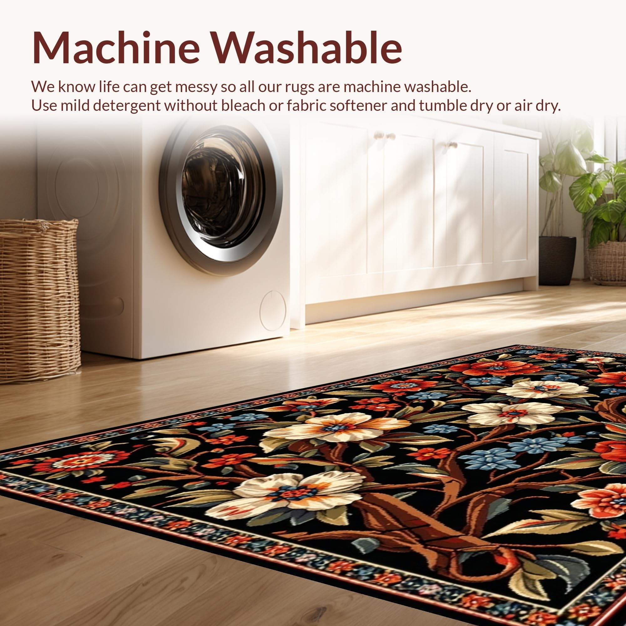 - Machine Washable: Our rugs can be easily thrown in the wash machine.