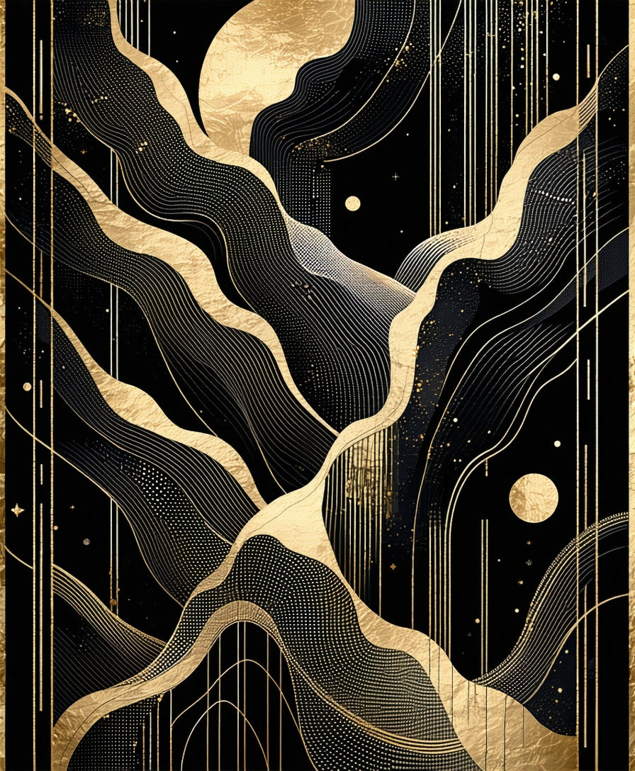 Elegant Black Gold Geometric Waves(Black)