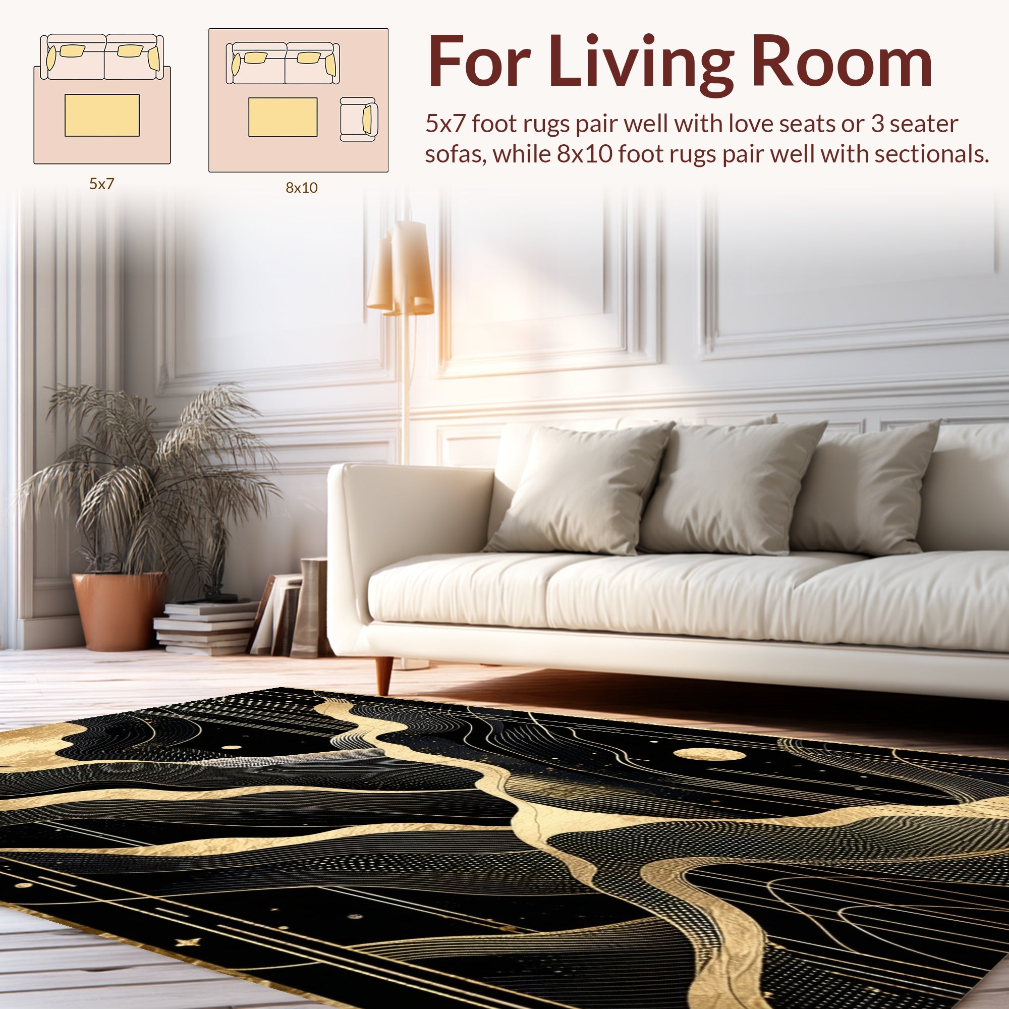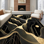 Flatwoven High Traffic Area Rug, Elegant Black Gold Geometric Waves, Non Slip, Stain Resistant, Washable Area Rugs for Living Room, Bedroom (Black) Overview: