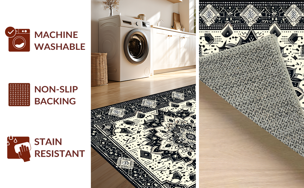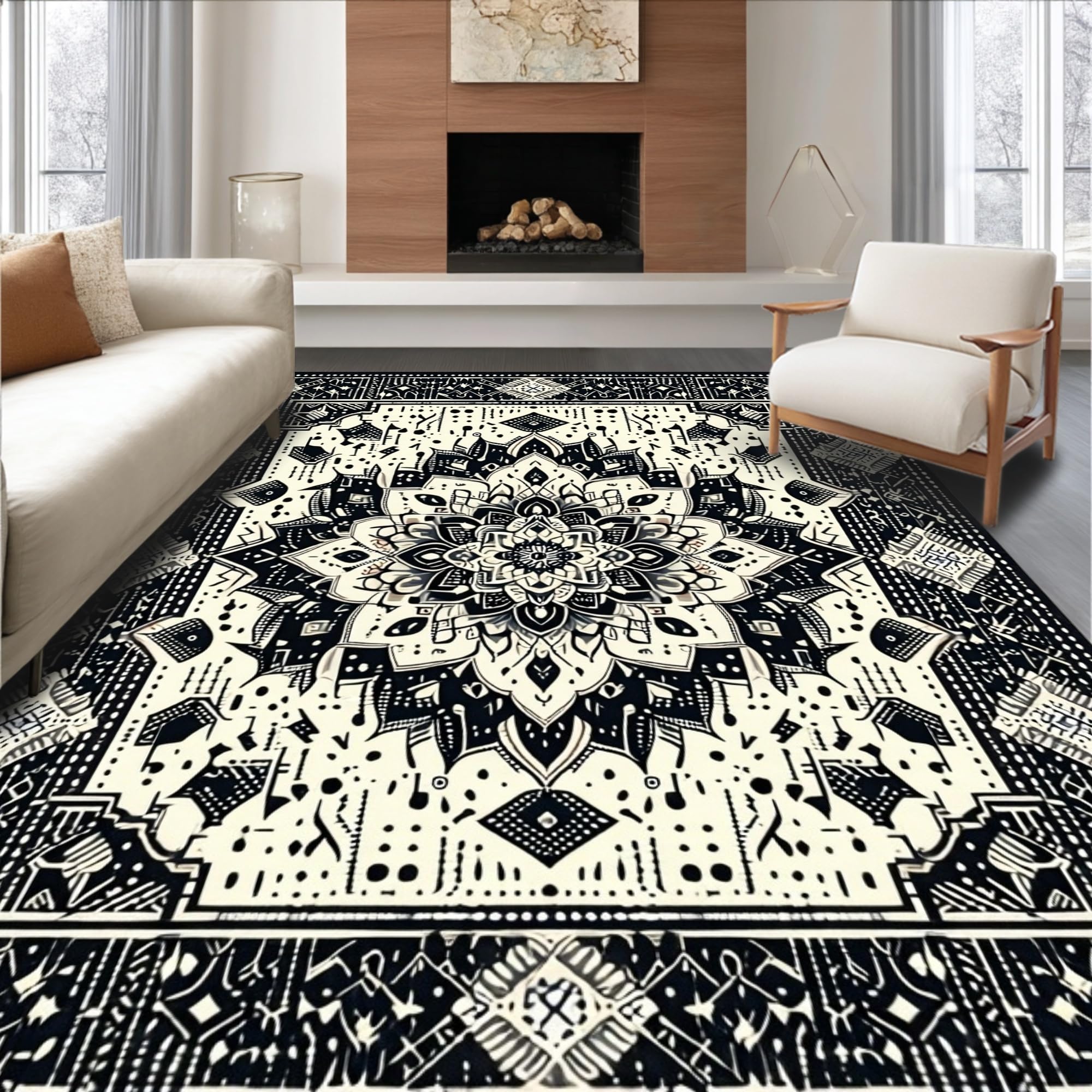 Ultra Soft Area Rug, Non Slip, Stain Resistant, Washable Area Rugs for Living Room, Bedroom, Elegant Black Mandala Accent(Black) Overview: