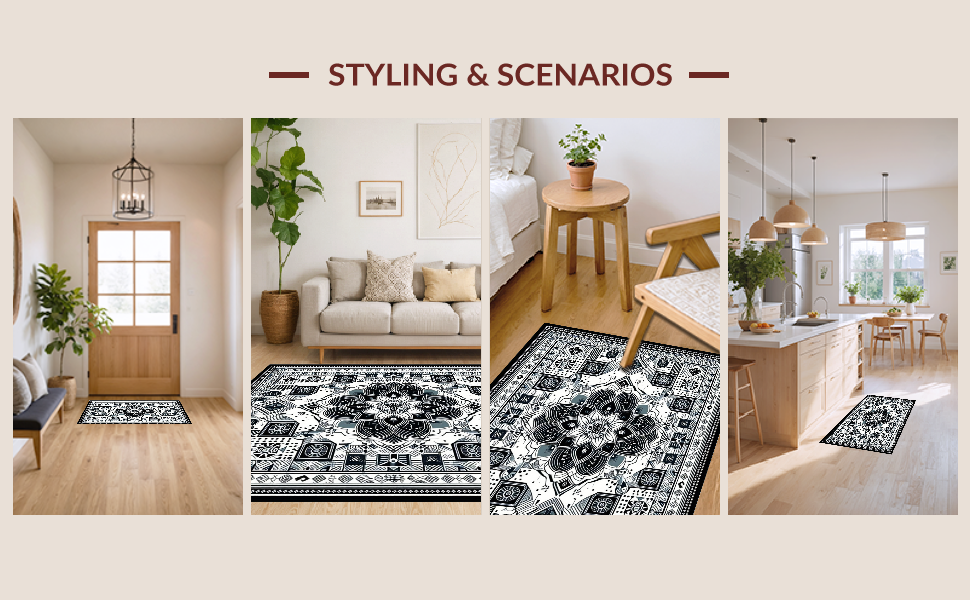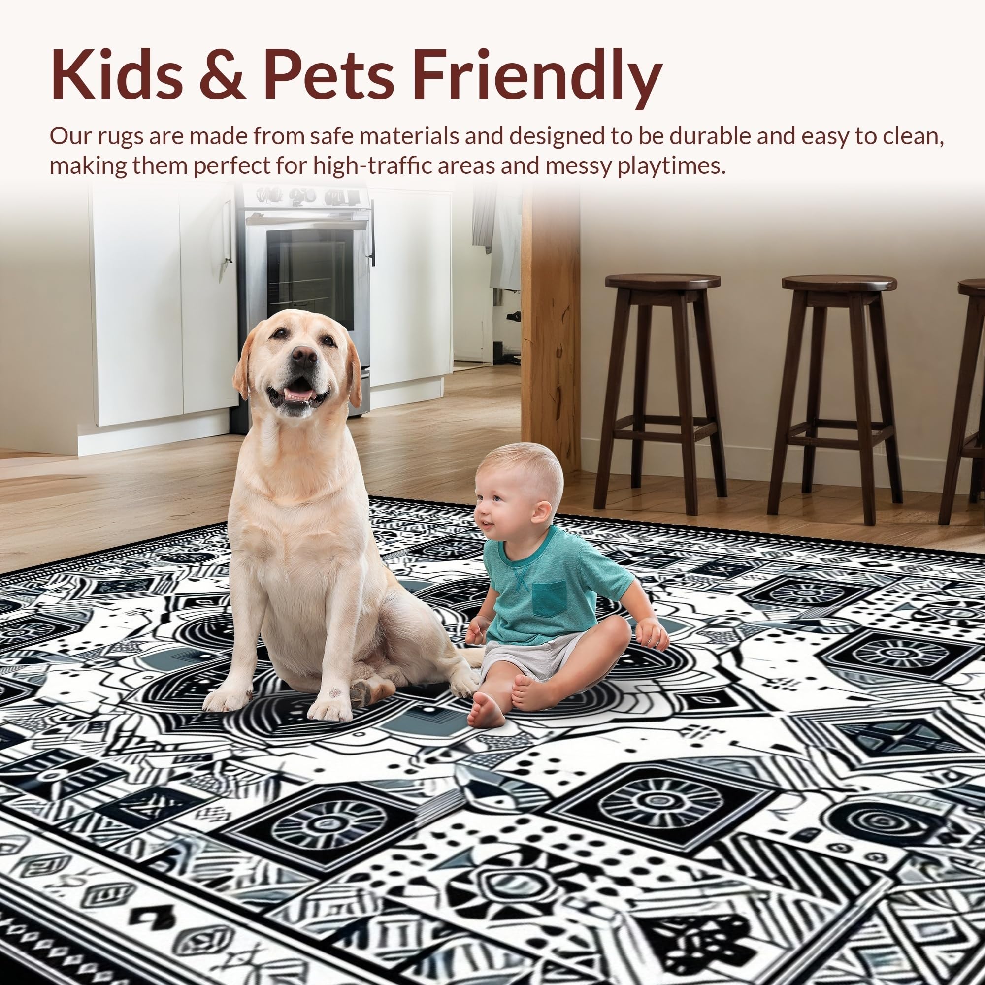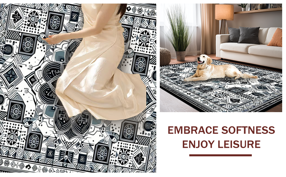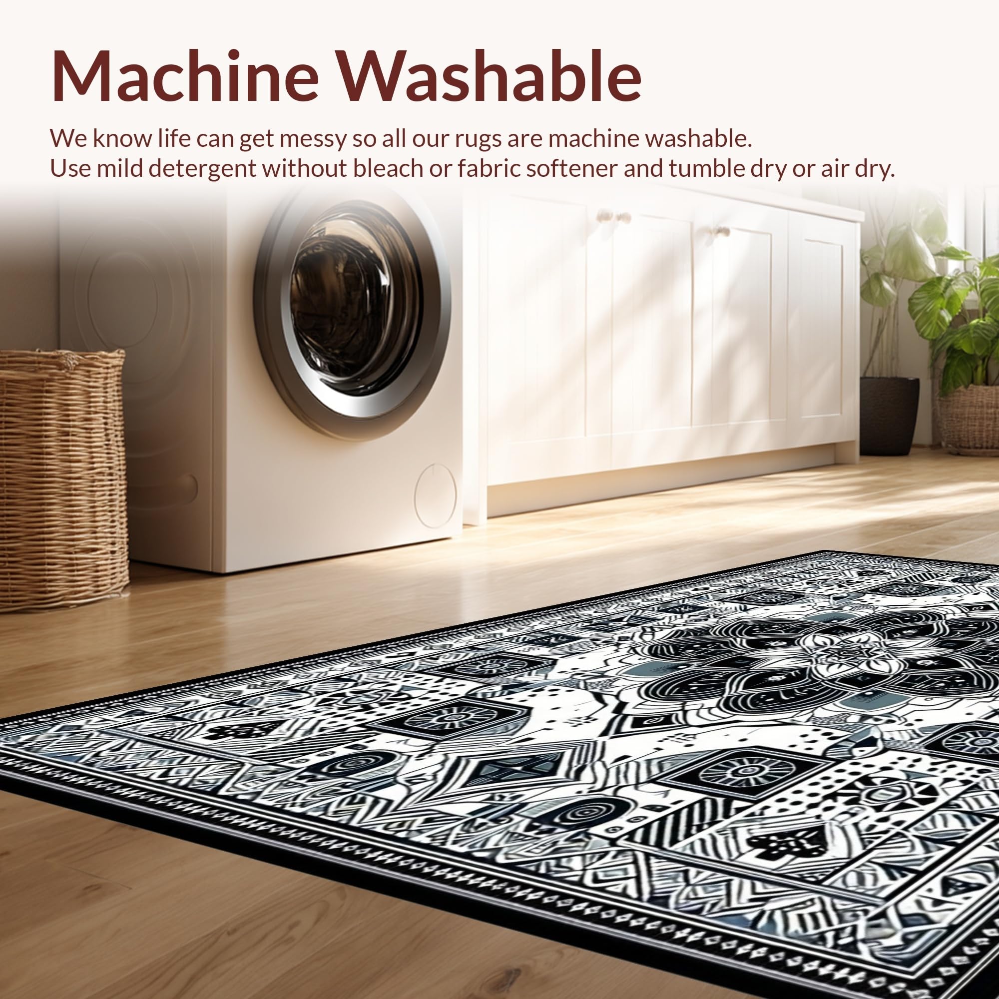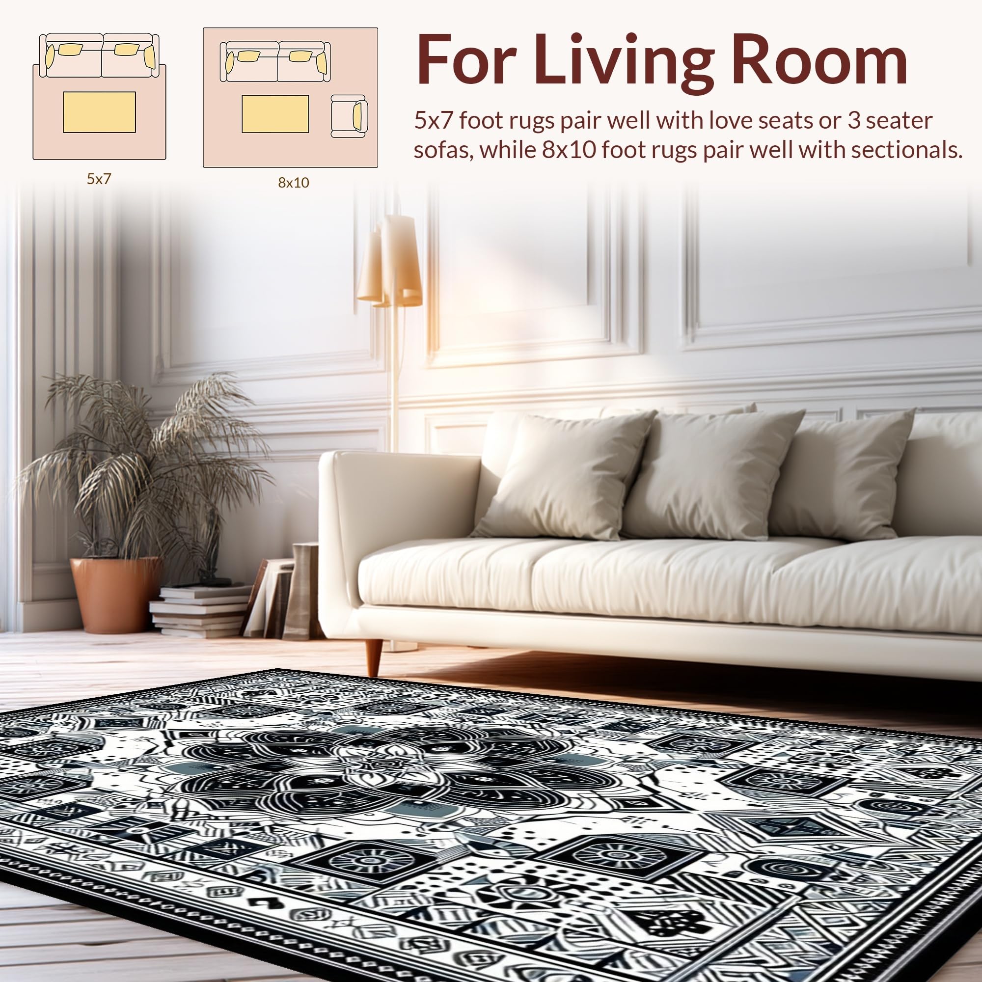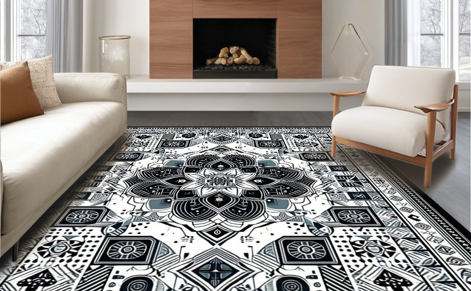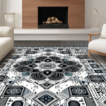Ultra Soft Area Rug, Non Slip, Stain Resistant, Washable Area Rugs for Living Room, Bedroom, Elegant Black Mandala Motif(Black) Overview: