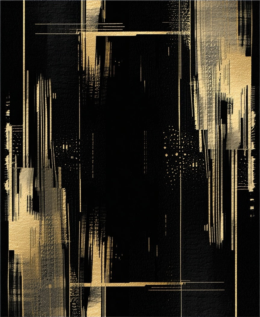 Elegant Black Rug with Gold Brushstroke Pattern and Metallic Highlights(Black)