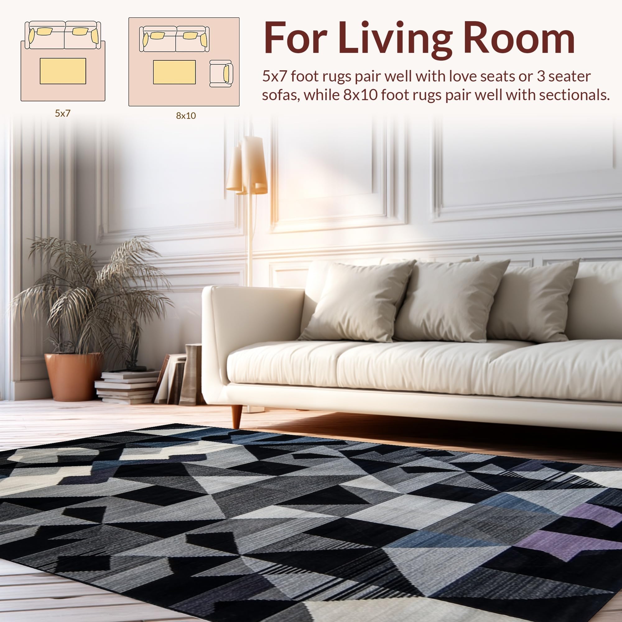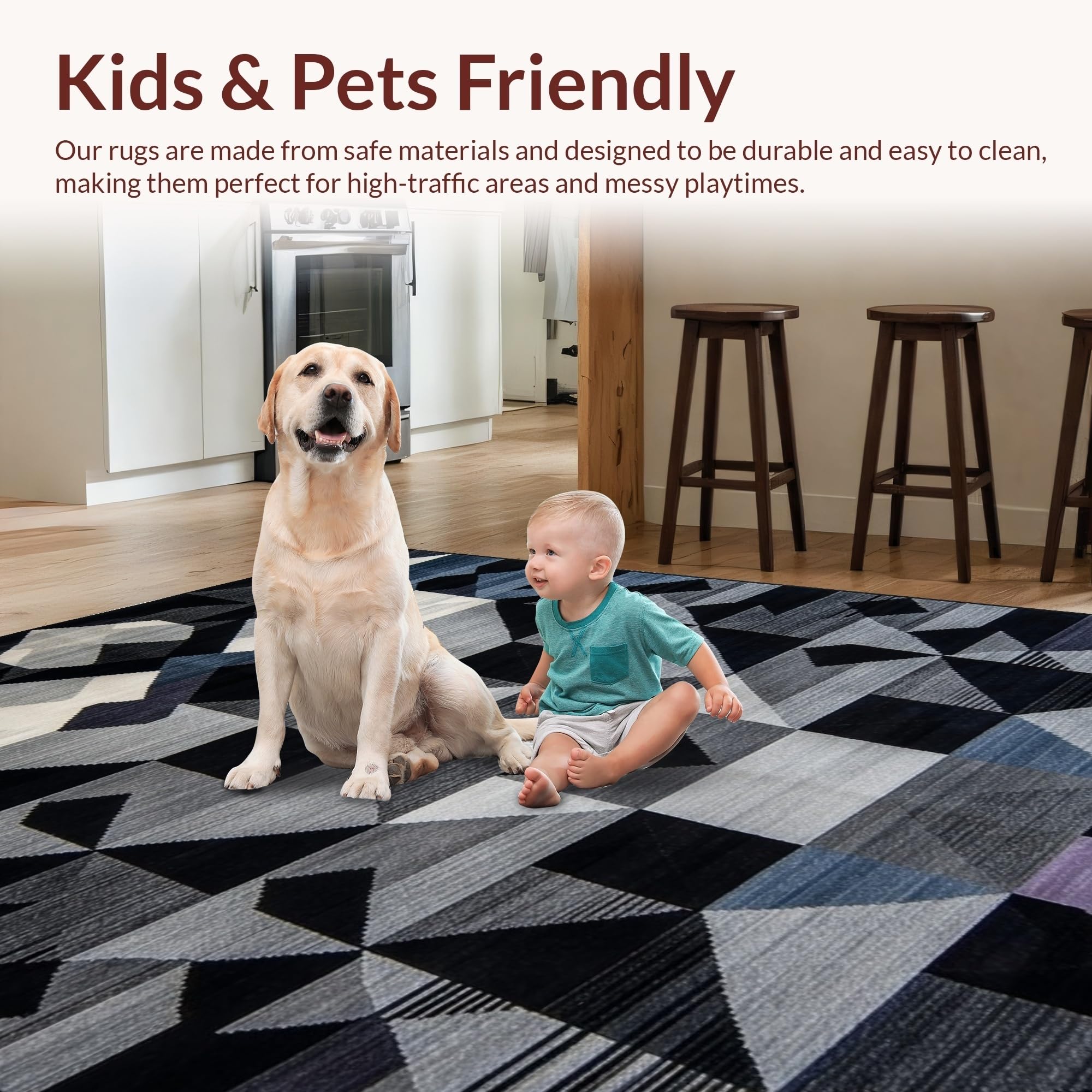 Ultra Soft Area Rug, Non Slip, Stain Resistant, Washable Area Rugs for Living Room, Bedroom, Elegant Black Tasseled Accent(Gray) Overview: