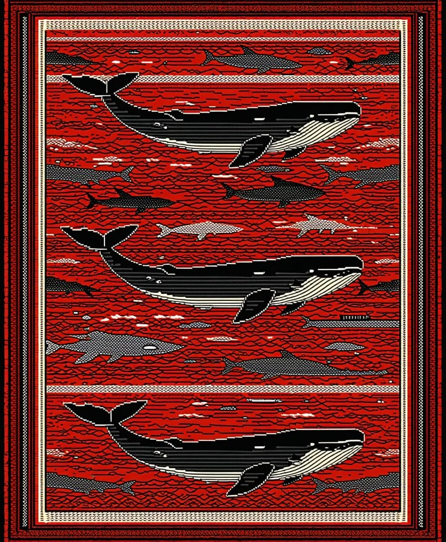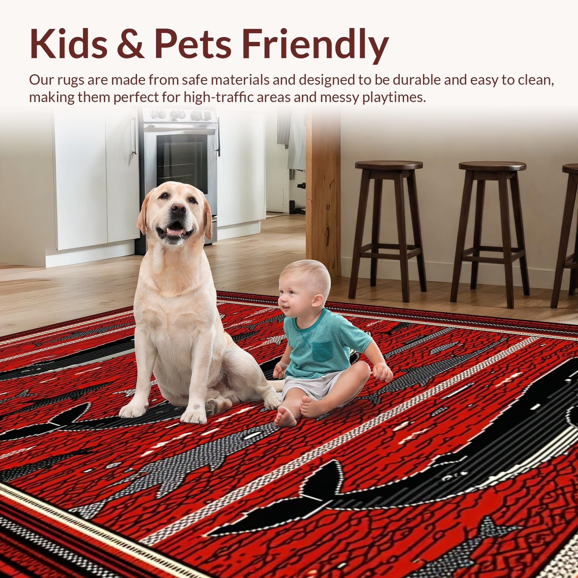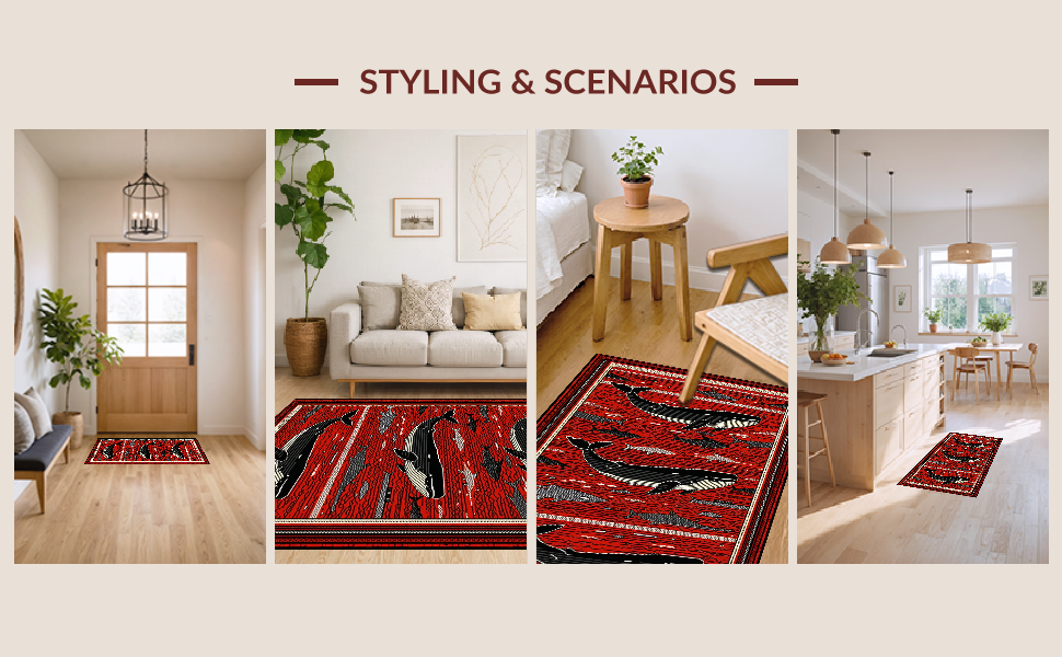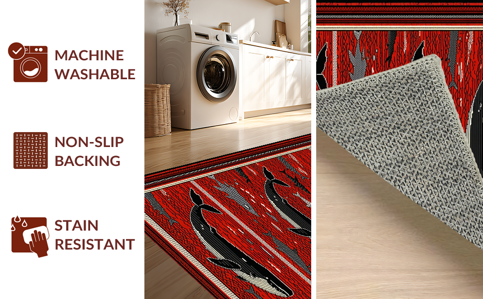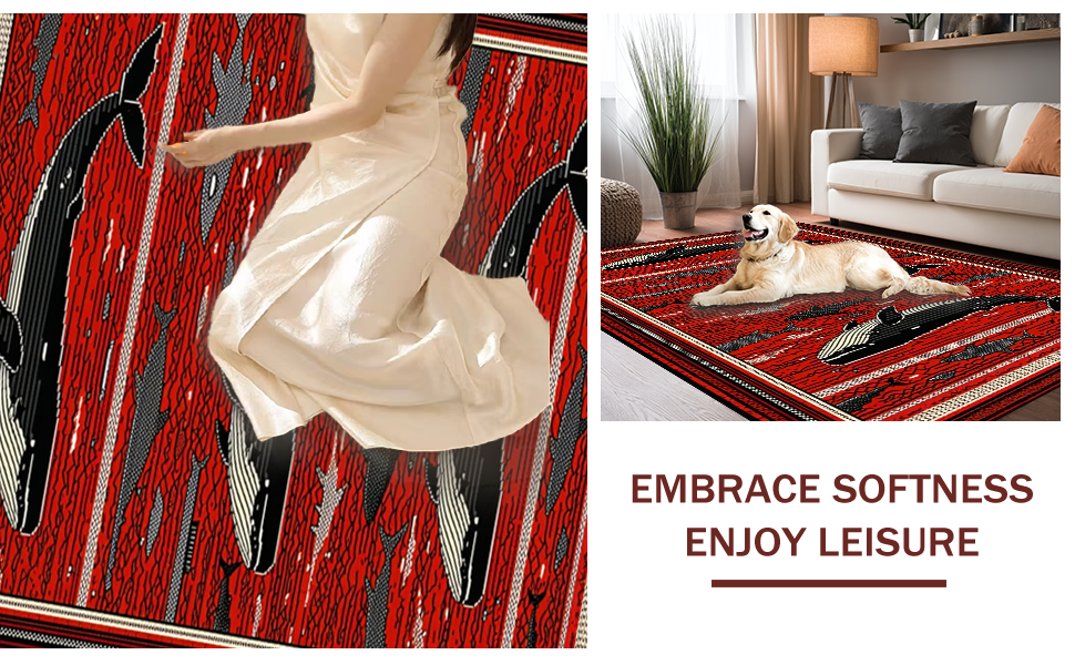 Ultra Soft Area Rug, Non Slip, Stain Resistant, Washable Area Rugs for Living Room, Bedroom, Elegant Black Whale Silhouette(Red) Overview:
