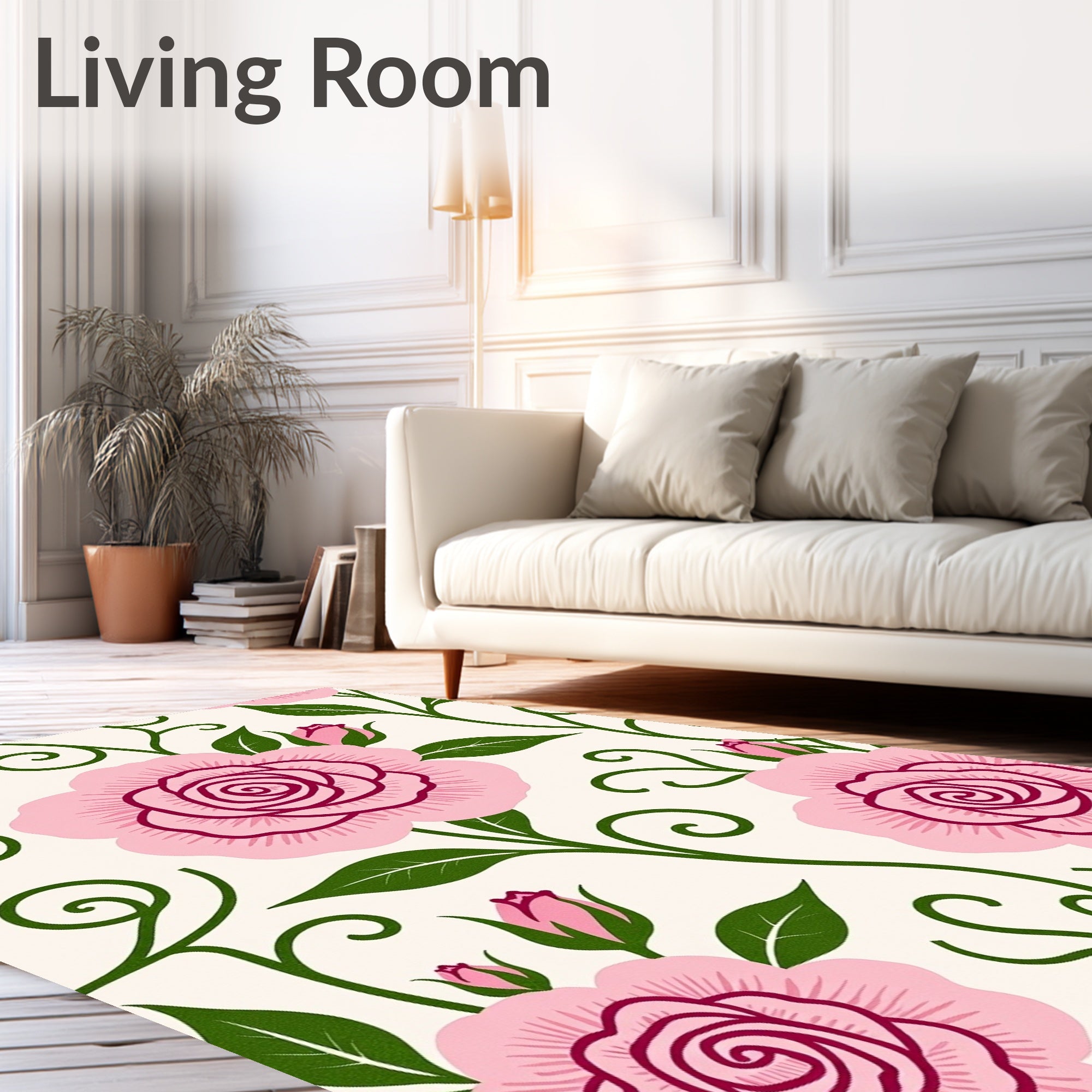 Ultra Soft Area Rug, Non Slip, Stain Resistant, Washable Area Rugs for Living Room, Bedroom, Elegant Blooming Rose Garden Symphony Decorative Accent(Pink) Overview: