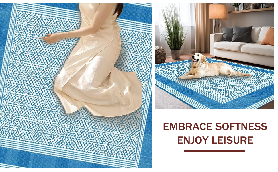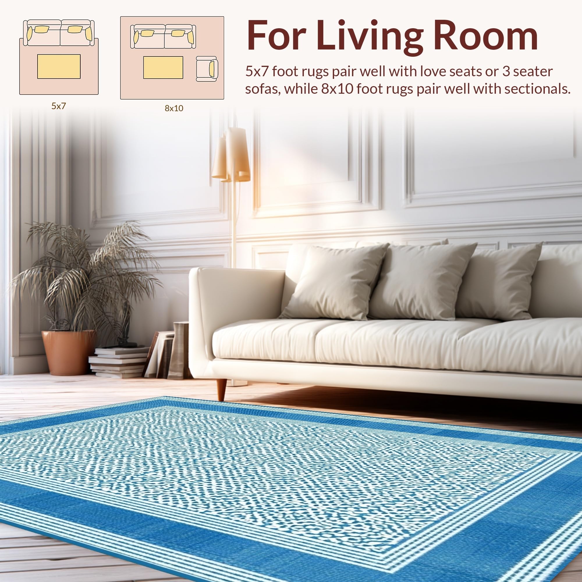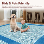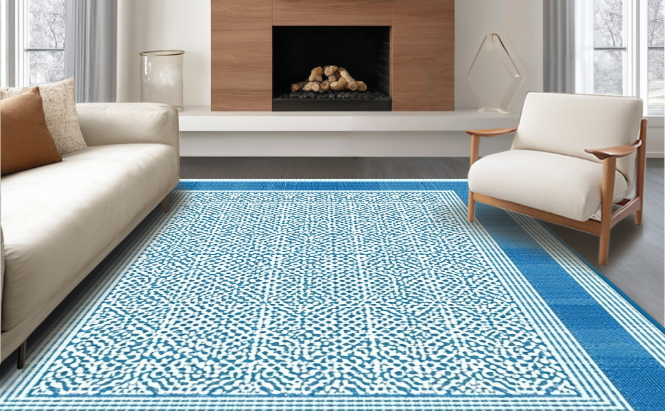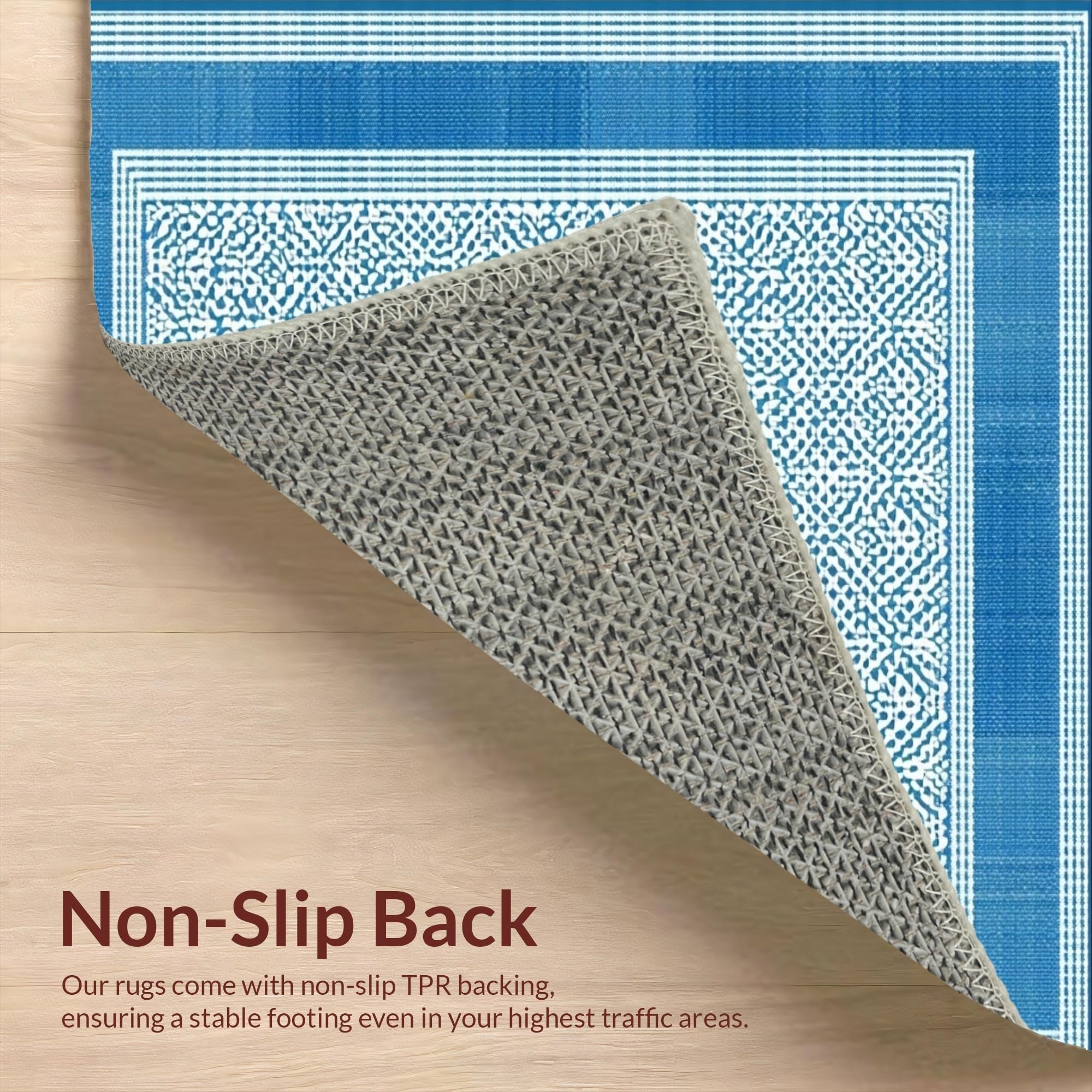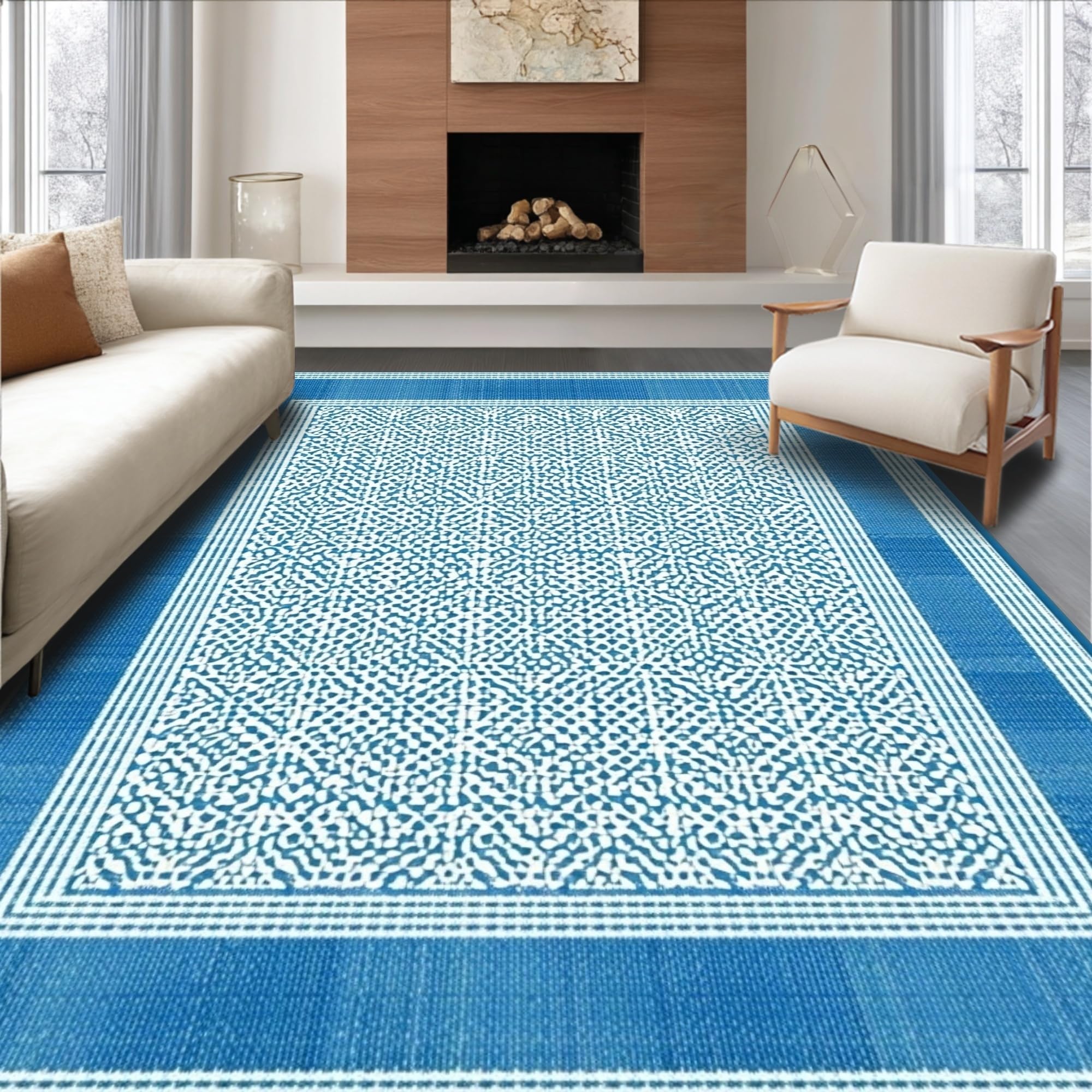 Ultra Soft Area Rug, Non Slip, Stain Resistant, Washable Area Rugs for Living Room, Bedroom, Elegant Blue Curved Ornamentation(Blue) Overview: