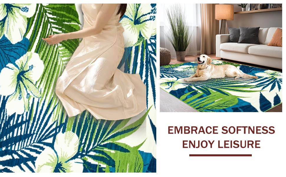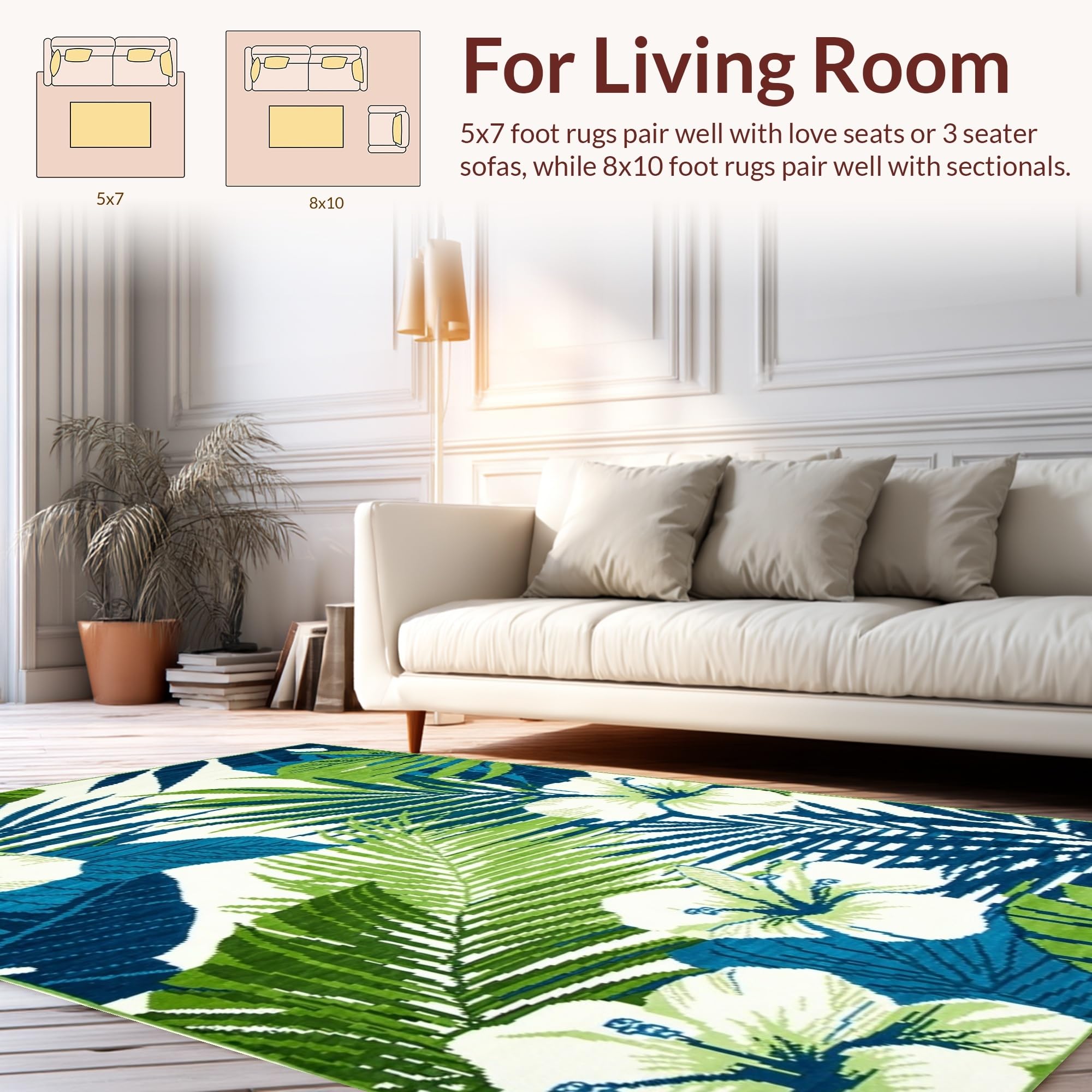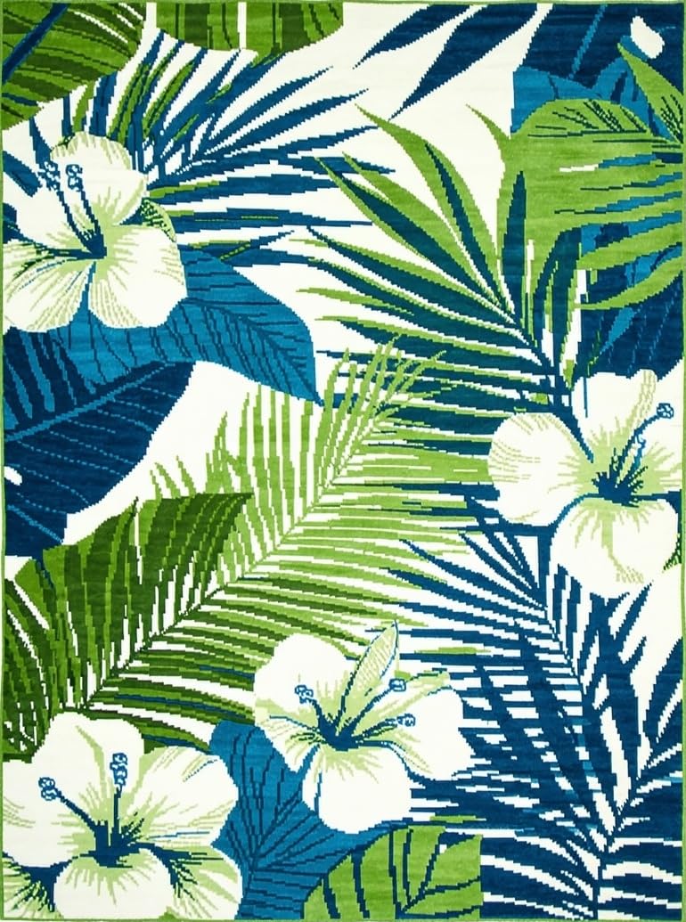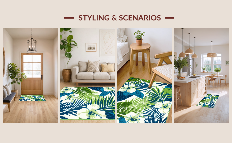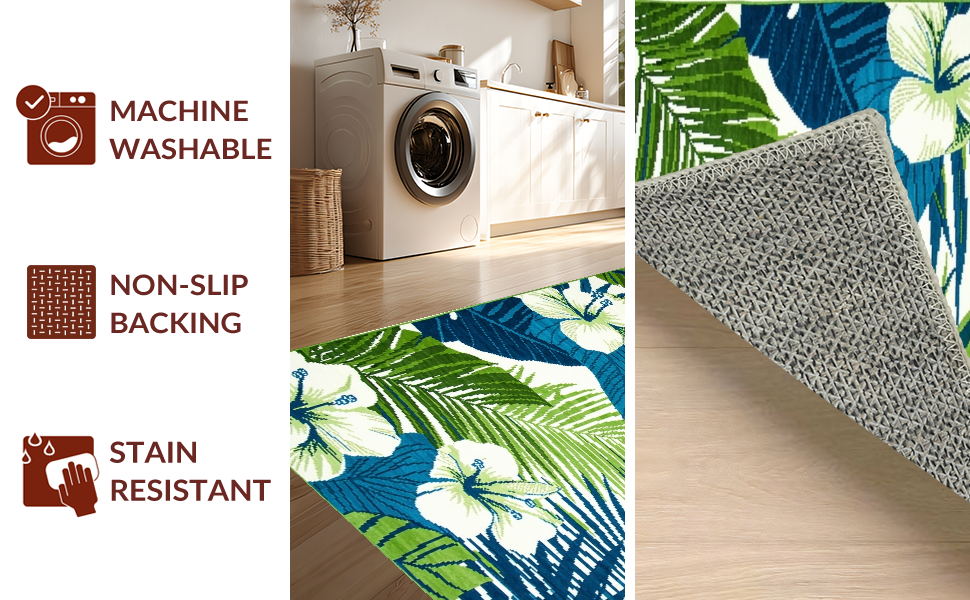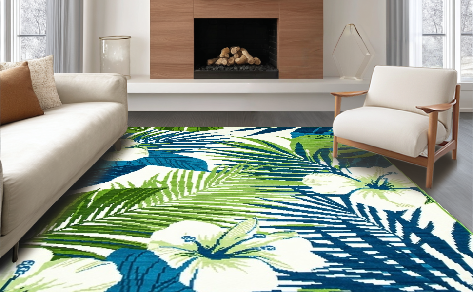 Ultra Soft Area Rug, Non Slip, Stain Resistant, Washable Area Rugs for Living Room, Bedroom, Elegant Blue Green Botanical Print(Blue) Overview: