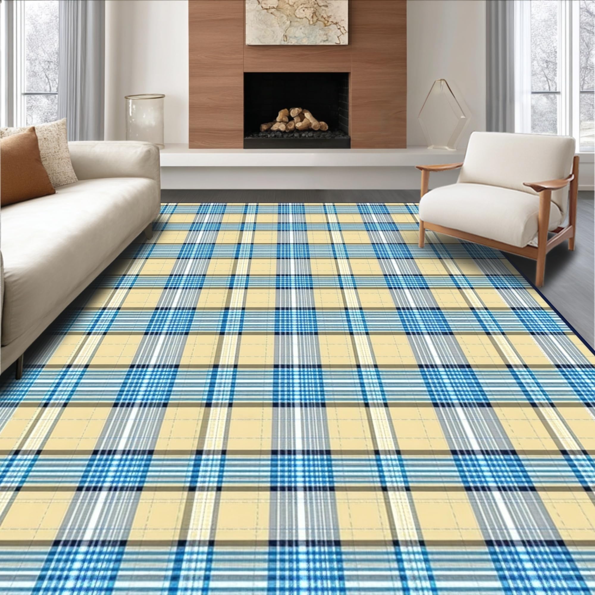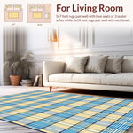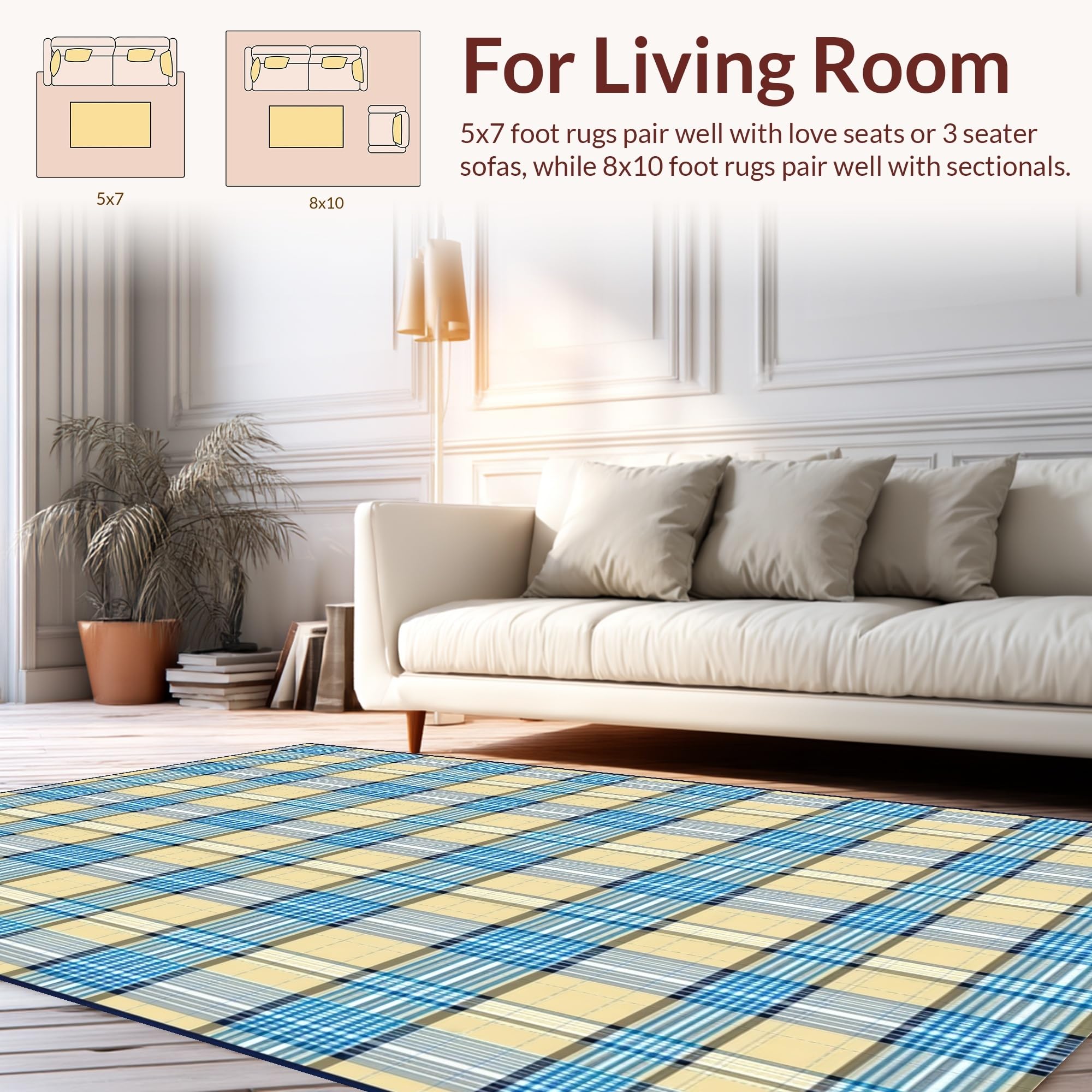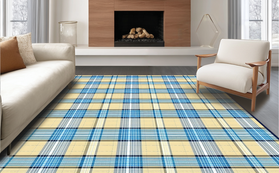 Ultra Soft Area Rug, Non Slip, Stain Resistant, Washable Area Rugs for Living Room, Bedroom, Elegant Blue Tone Checkered Fabric(Beige) Overview: