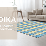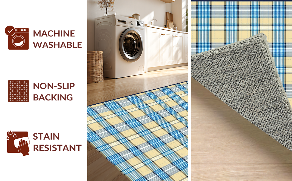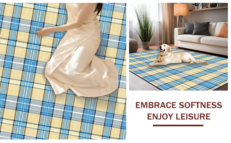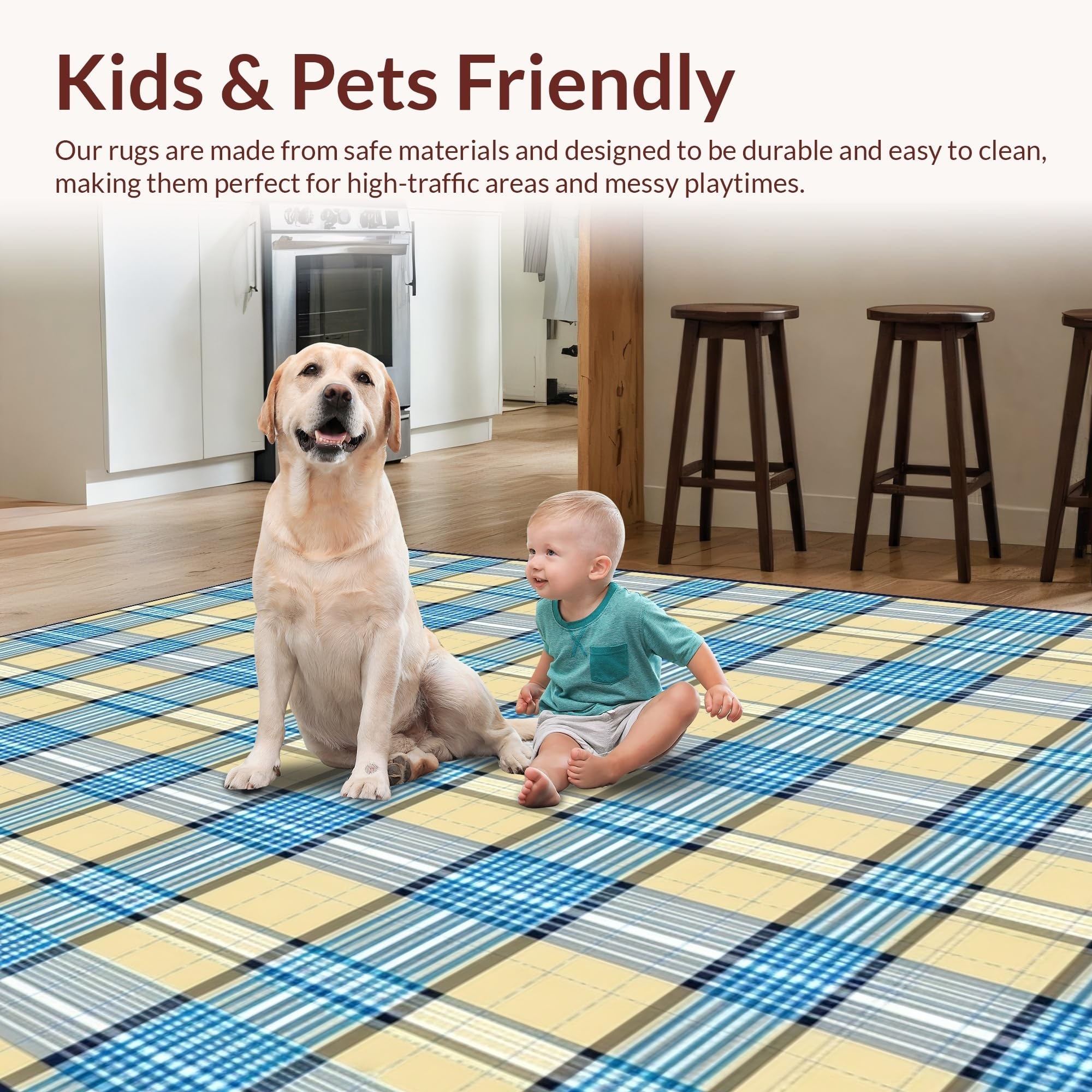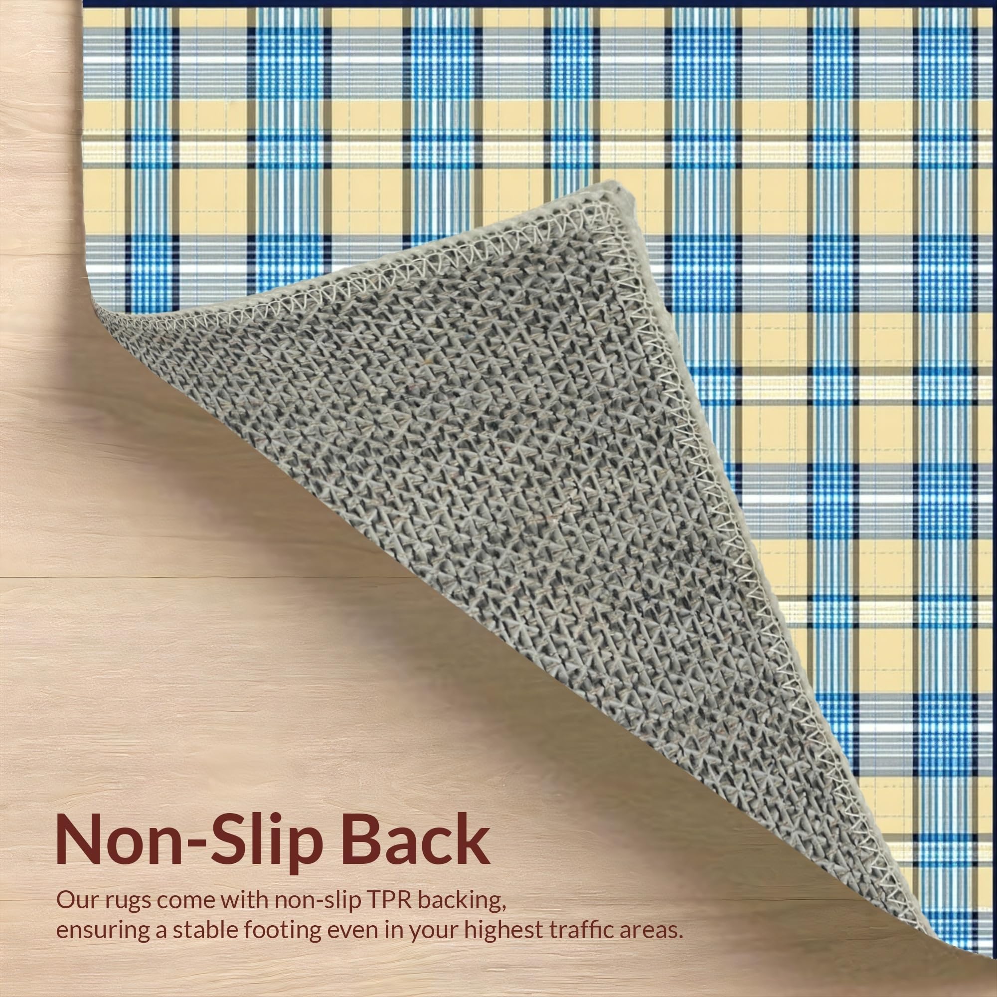 Ultra Soft Area Rug, Non Slip, Stain Resistant, Washable Area Rugs for Living Room, Bedroom, Elegant Blue Tone Checkered Fabric(Beige) Overview:
