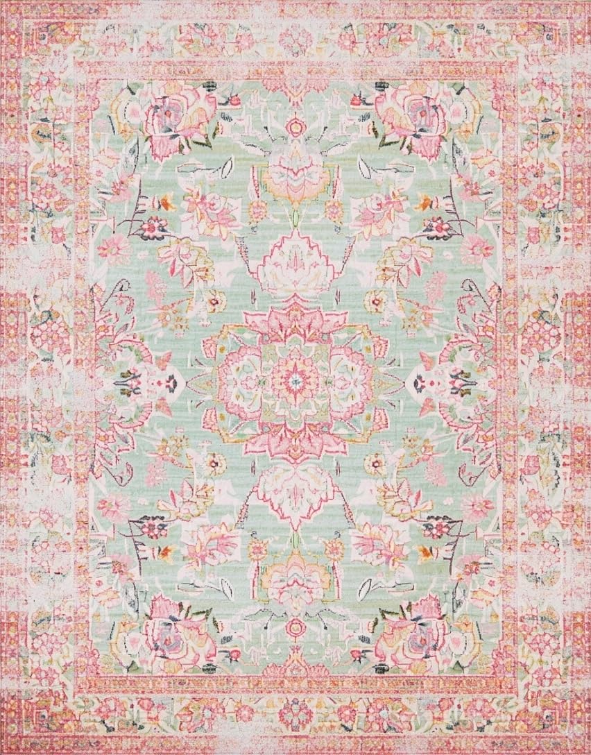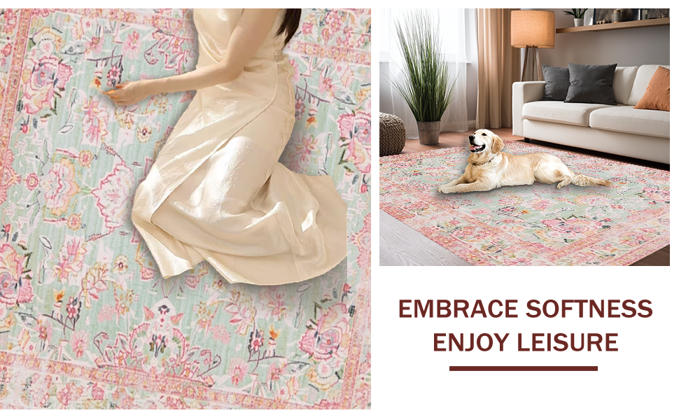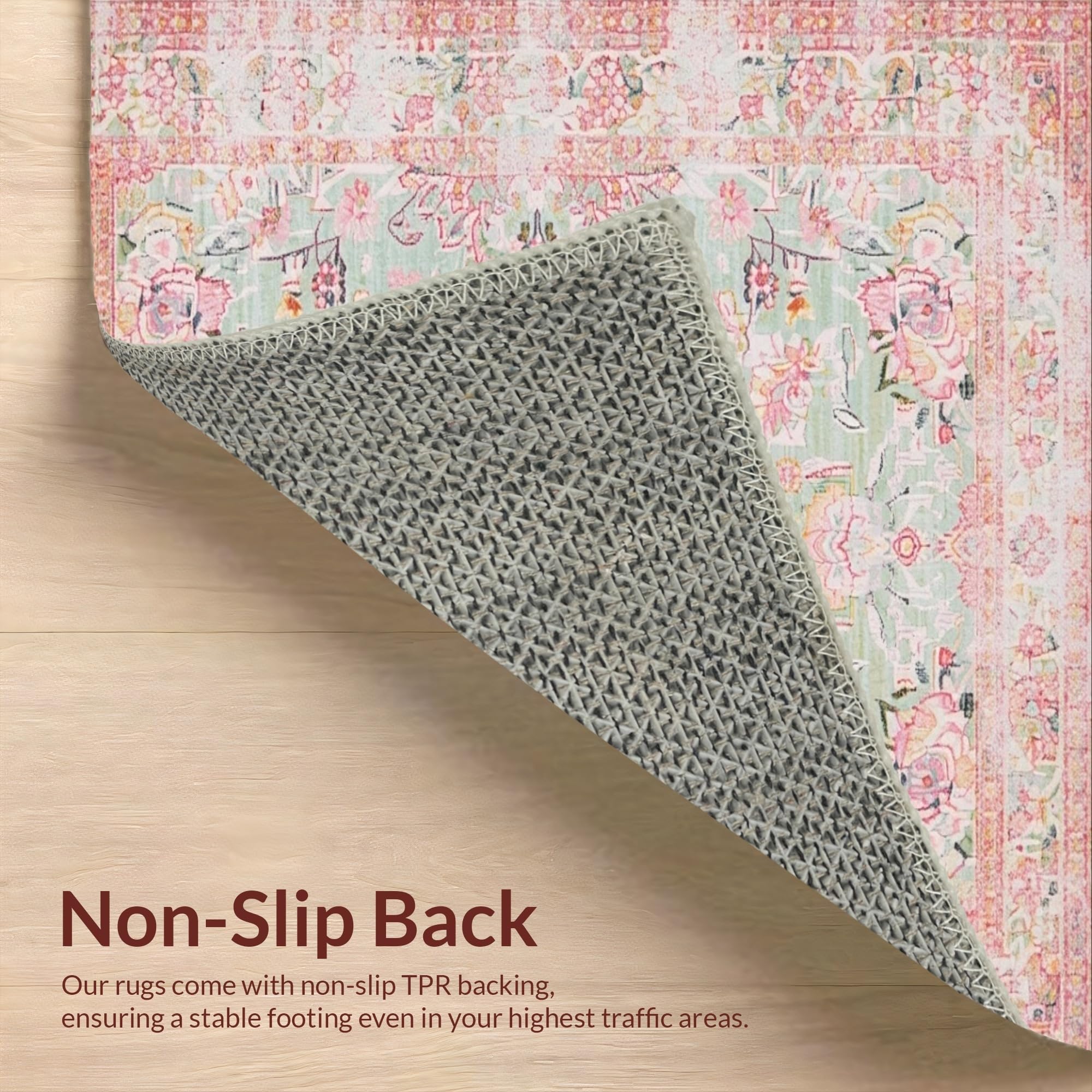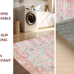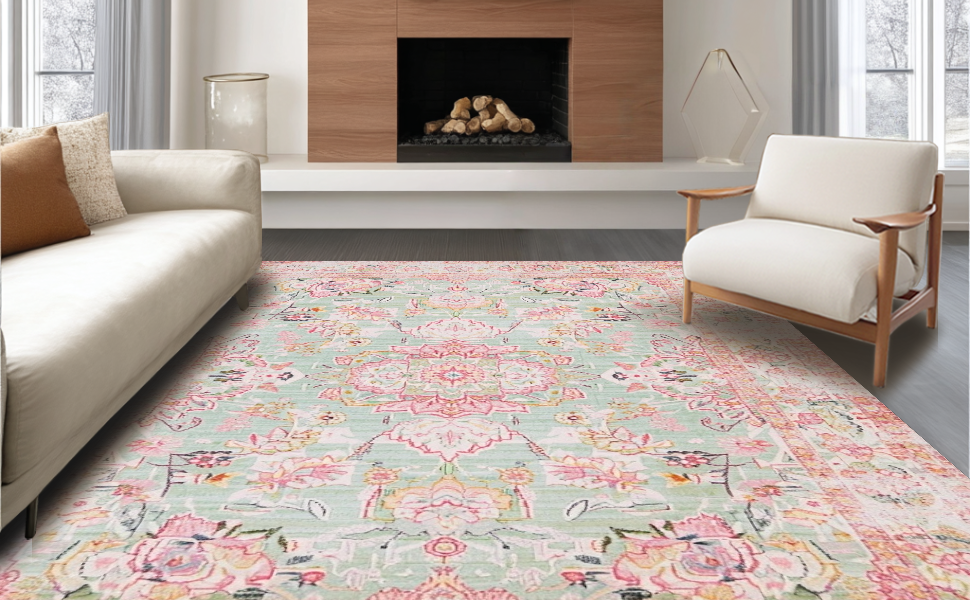 Ultra Soft Area Rug, Non Slip, Stain Resistant, Washable Area Rugs for Living Room, Bedroom, Elegant Blush and Green Fusion(Pink) Overview: