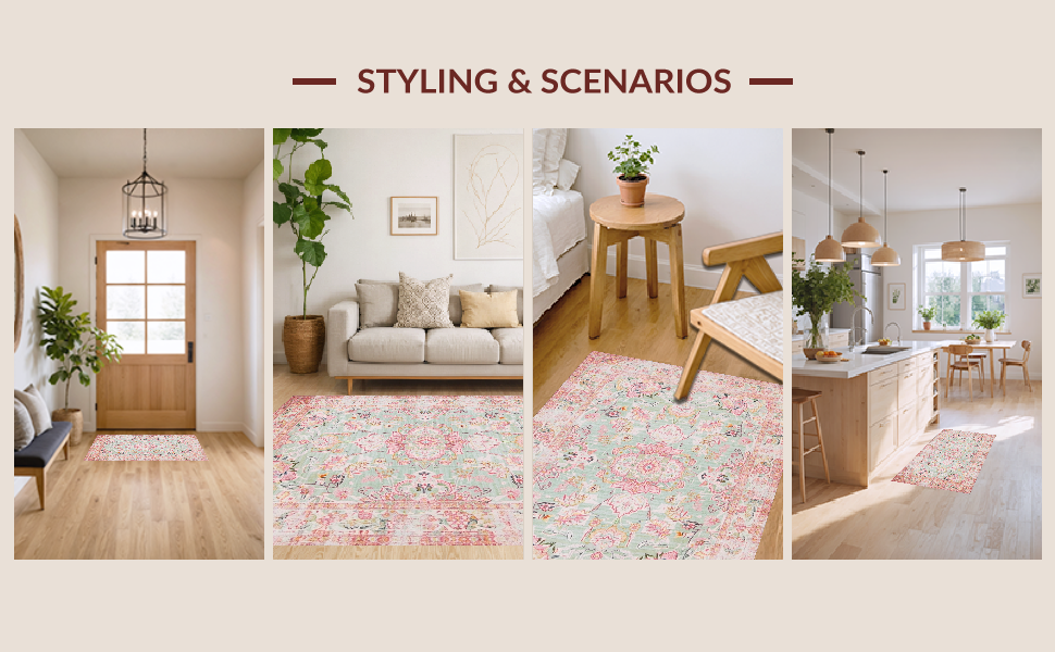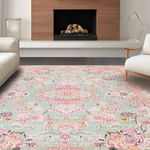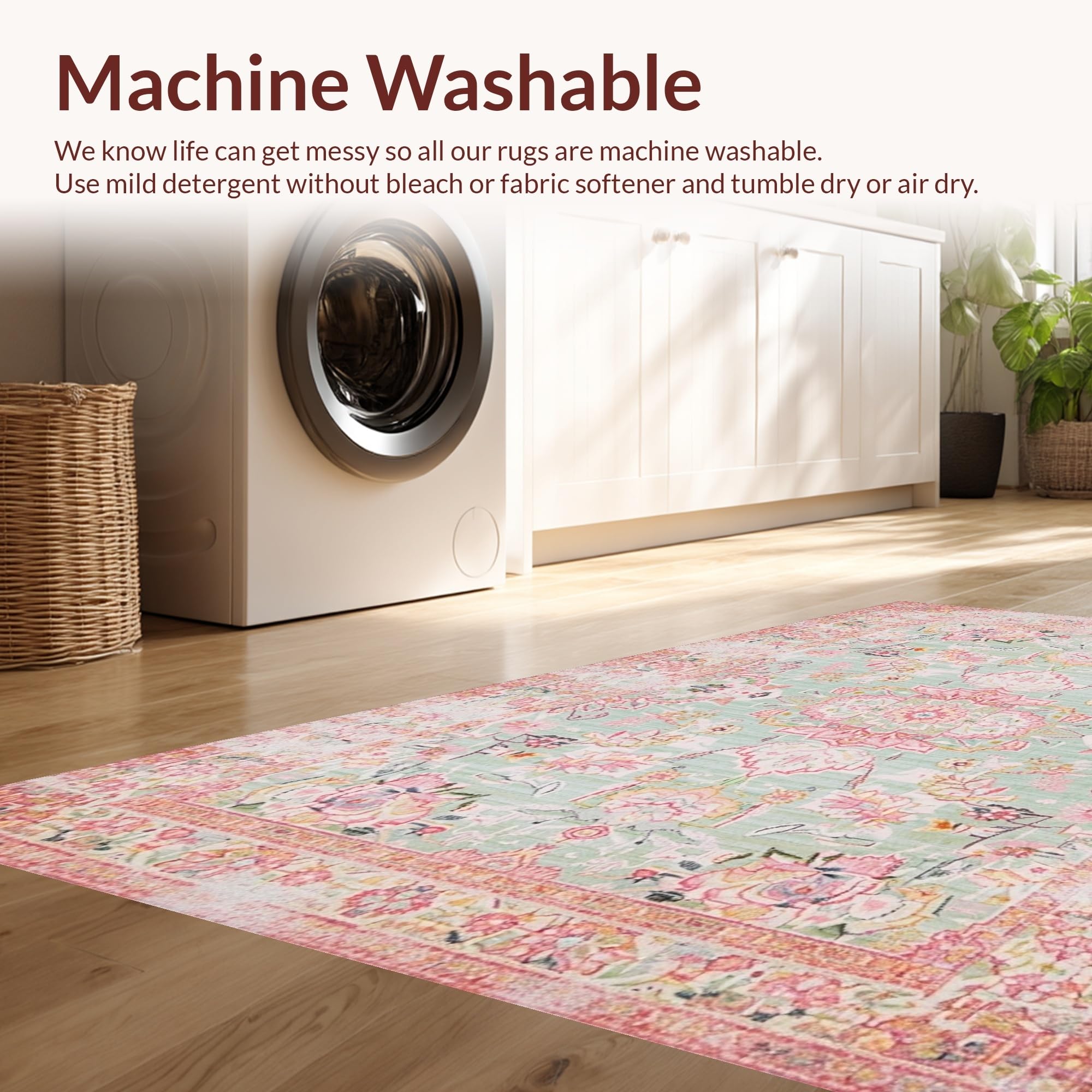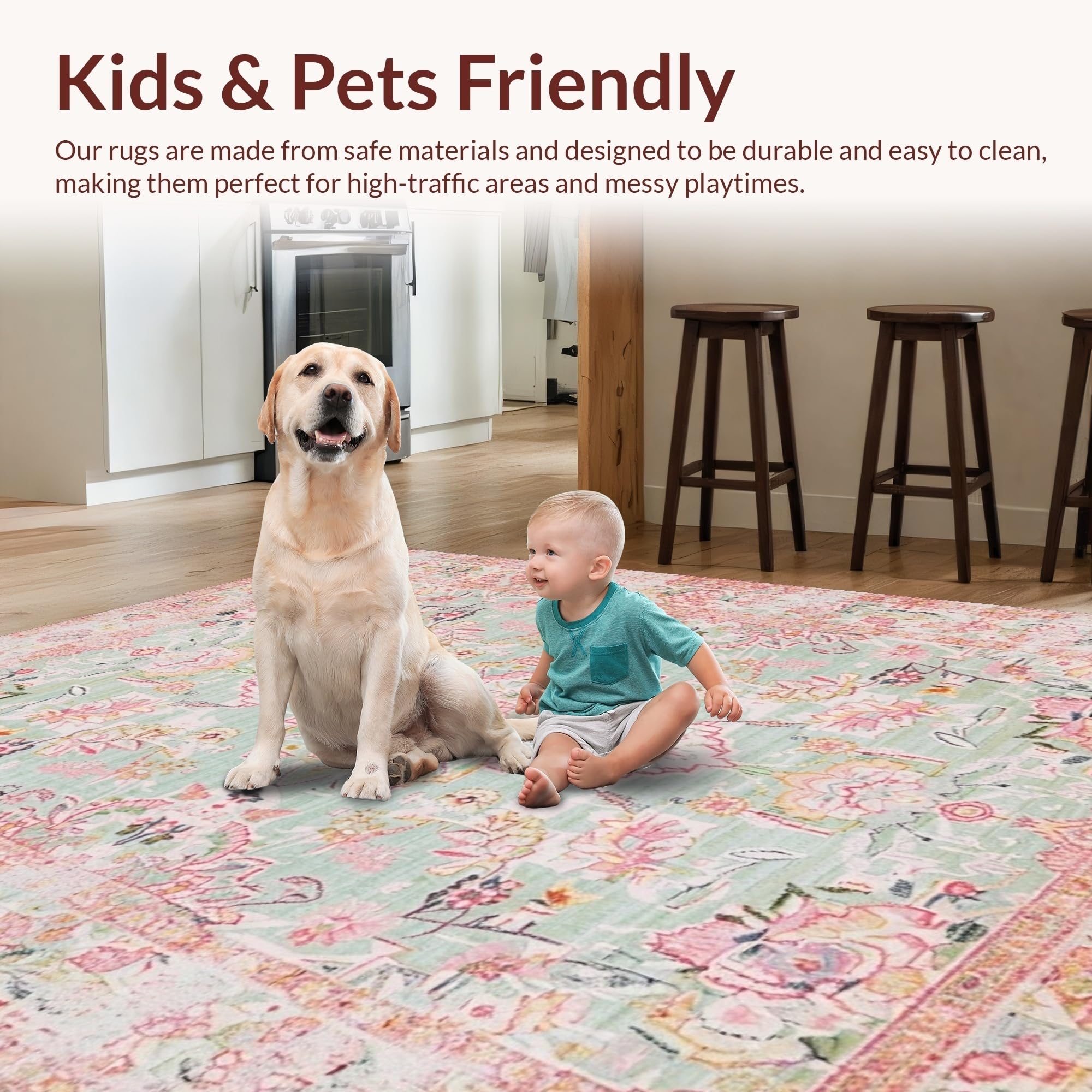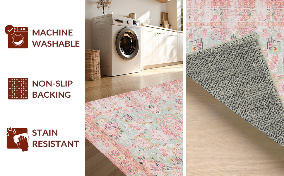 Ultra Soft Area Rug, Non Slip, Stain Resistant, Washable Area Rugs for Living Room, Bedroom, Elegant Blush and Green Fusion(Pink) Overview: