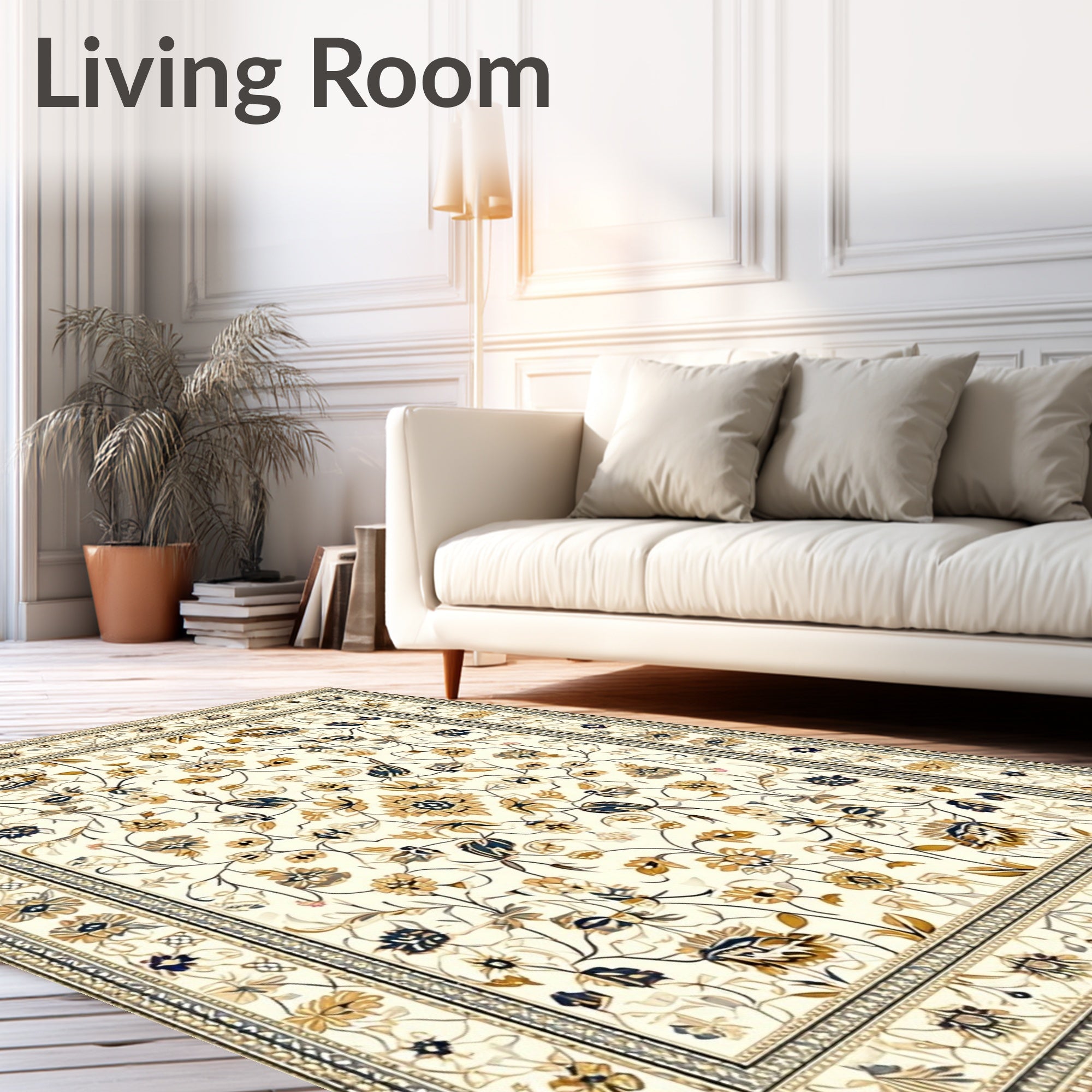 Ultra Soft Area Rug, Non Slip, Stain Resistant, Washable Area Rugs for Living Room, Bedroom, Elegant Boho Floral Area with Vintage Look(Beige) Overview: