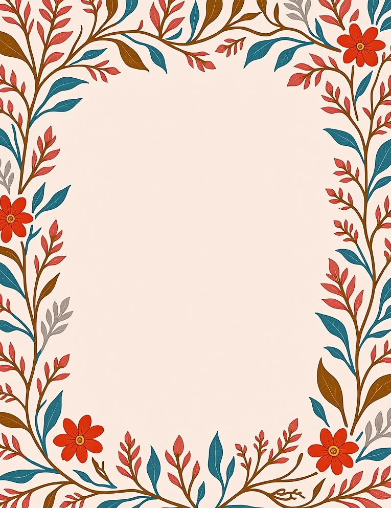 Elegant Boho Floral Frame with Wildflower Sprigs and Swirls(Red)