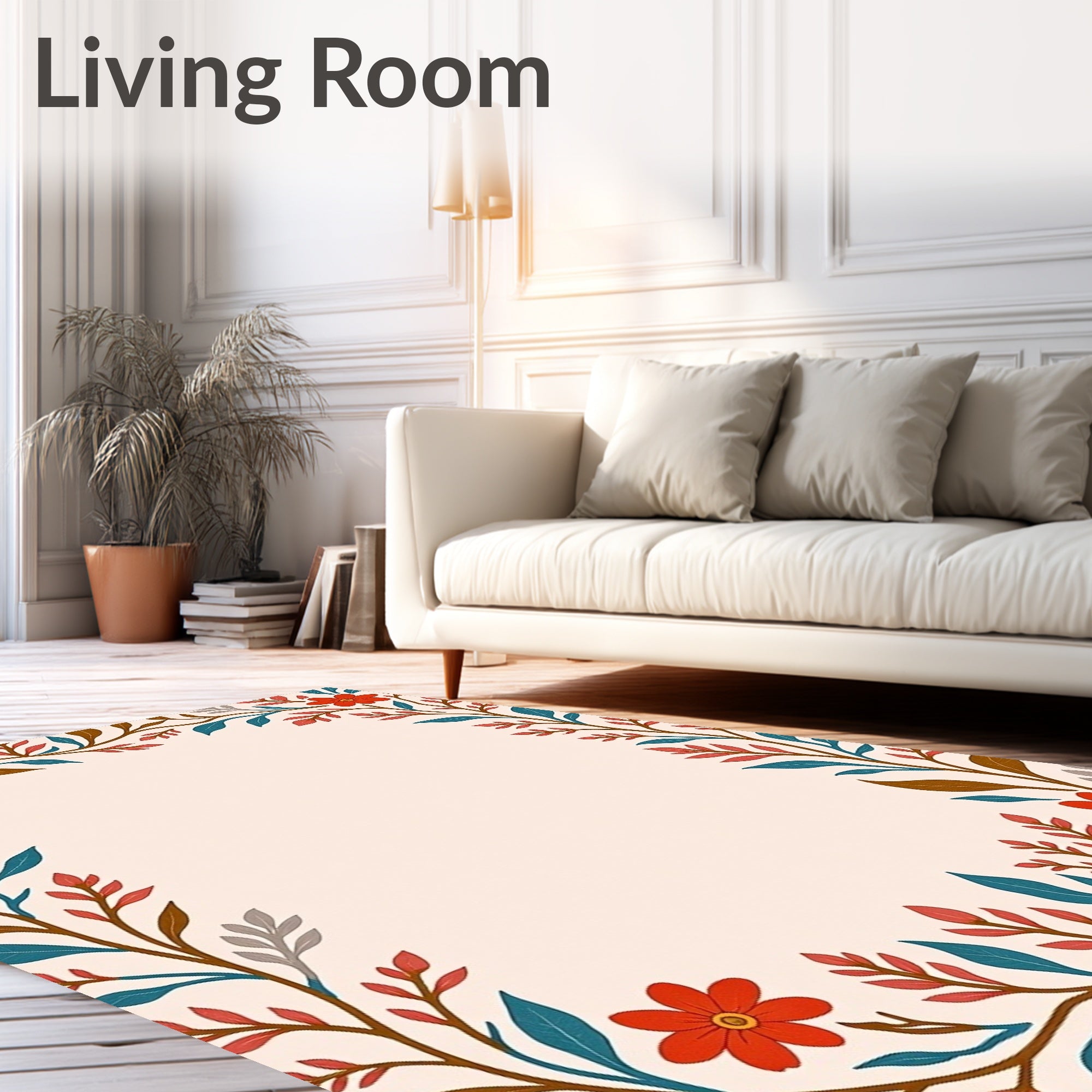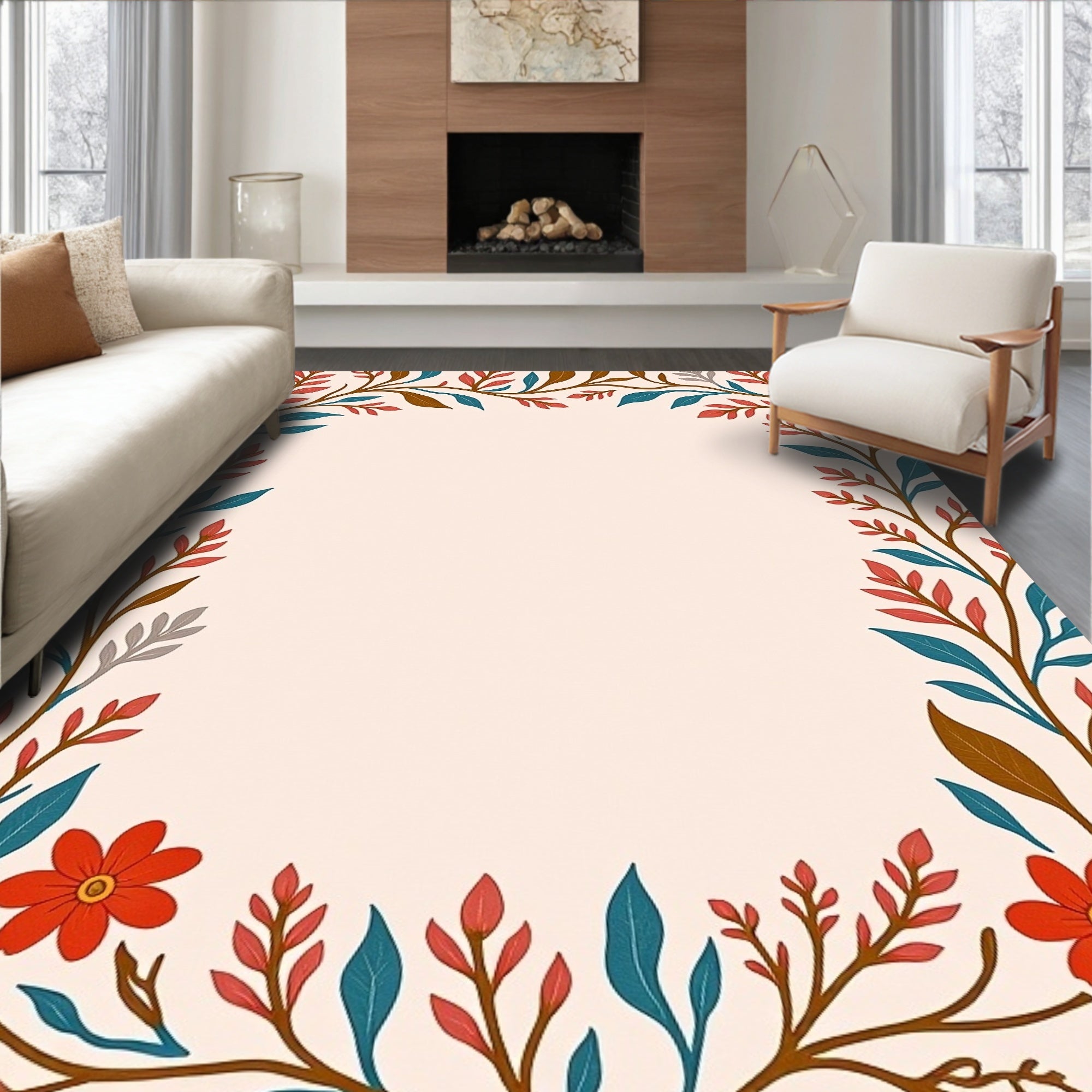 Flatwoven High Traffic Area Rug, Elegant Boho Floral Frame with Wildflower Sprigs and Swirls, Non Slip, Stain Resistant, Washable Area Rugs for Living Room, Bedroom (Red) Overview:
