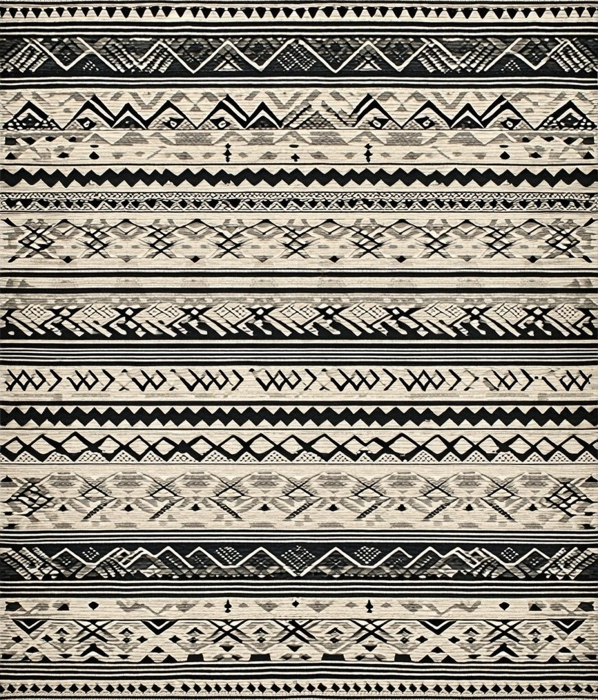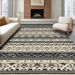 Elegant Boho Inspired Area with Intricate Black and Beige Tribal Motifs(Black)