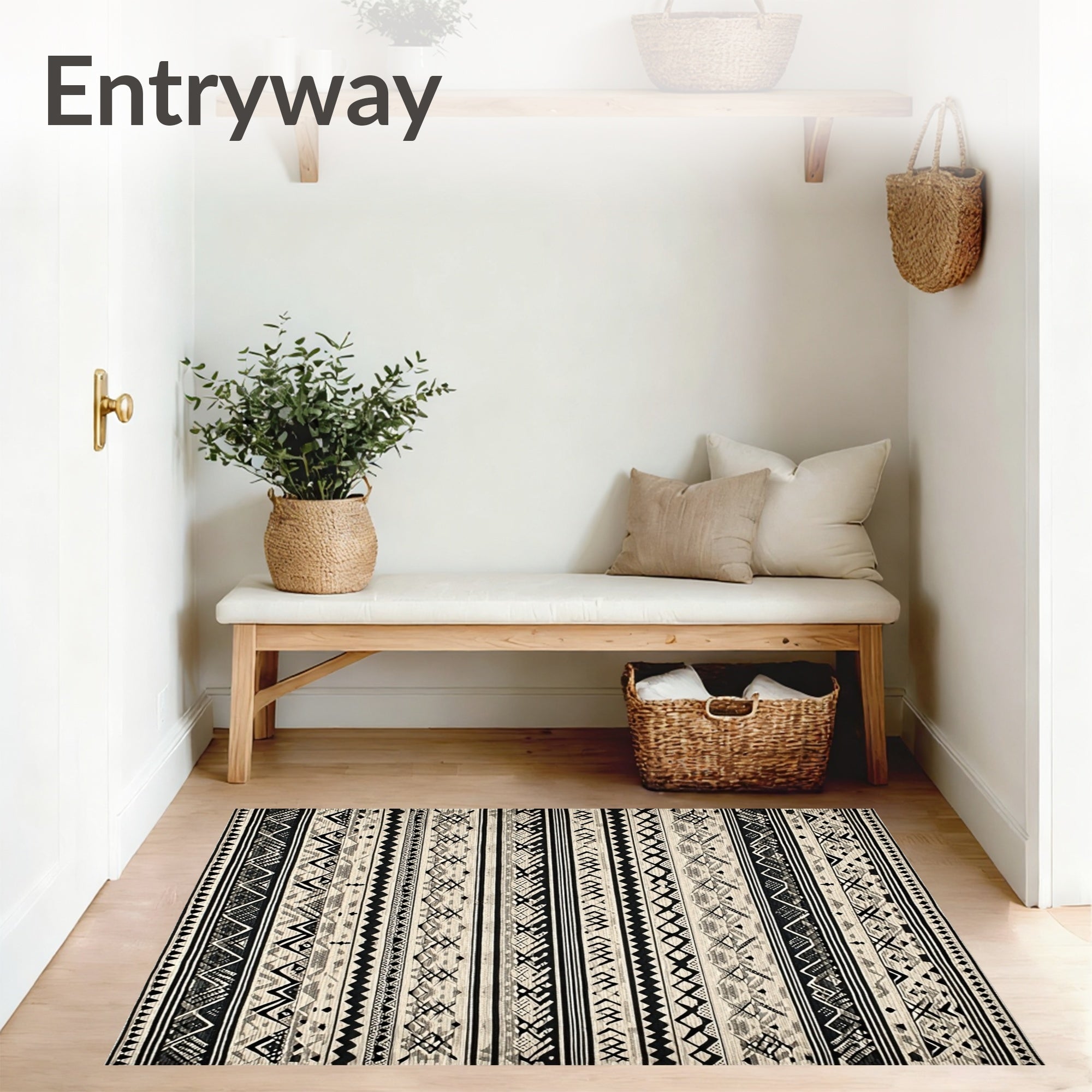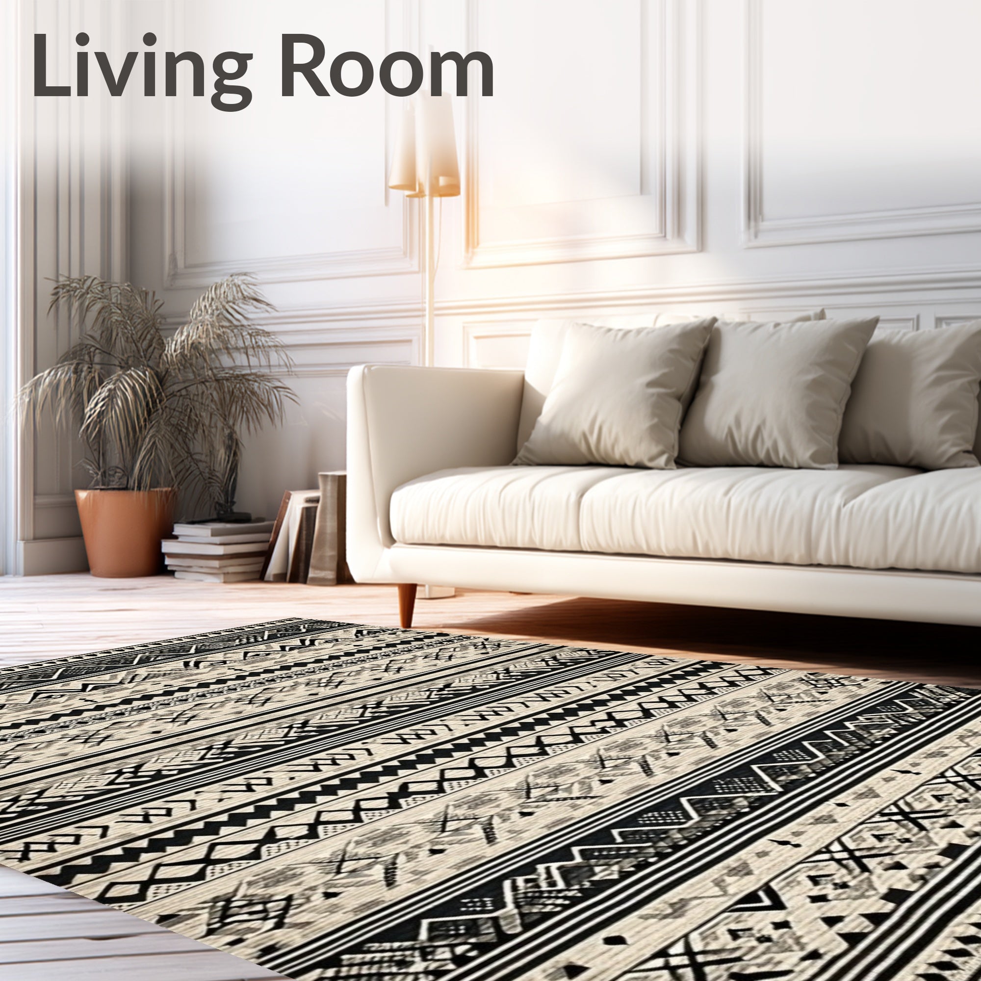 Ultra Soft Area Rug, Non Slip, Stain Resistant, Washable Area Rugs for Living Room, Bedroom, Elegant Boho Inspired Area with Intricate Black and Beige Tribal Motifs(Black) Overview: