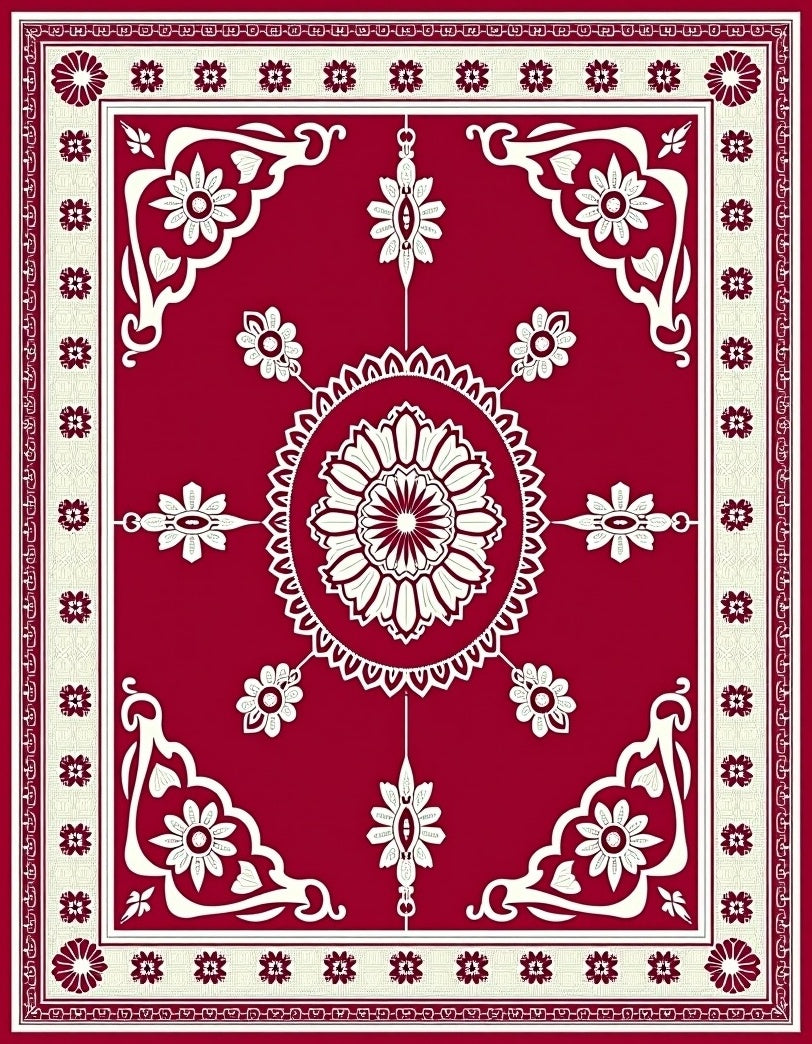 Elegant Bordered Medallion Tapestry Framed Classic Design(Red)