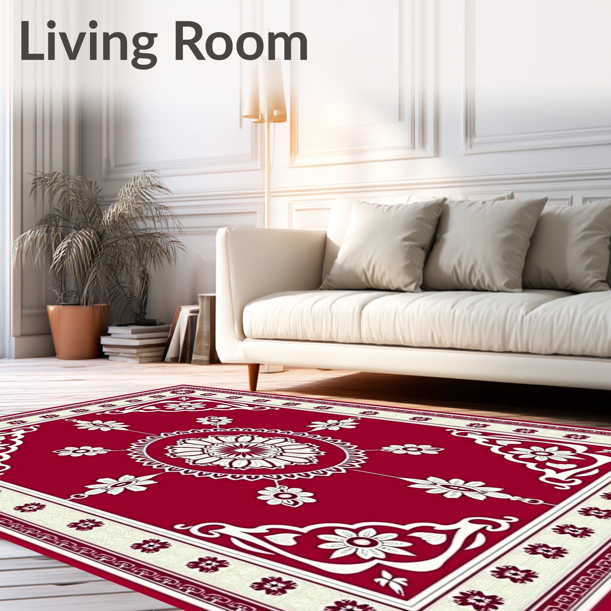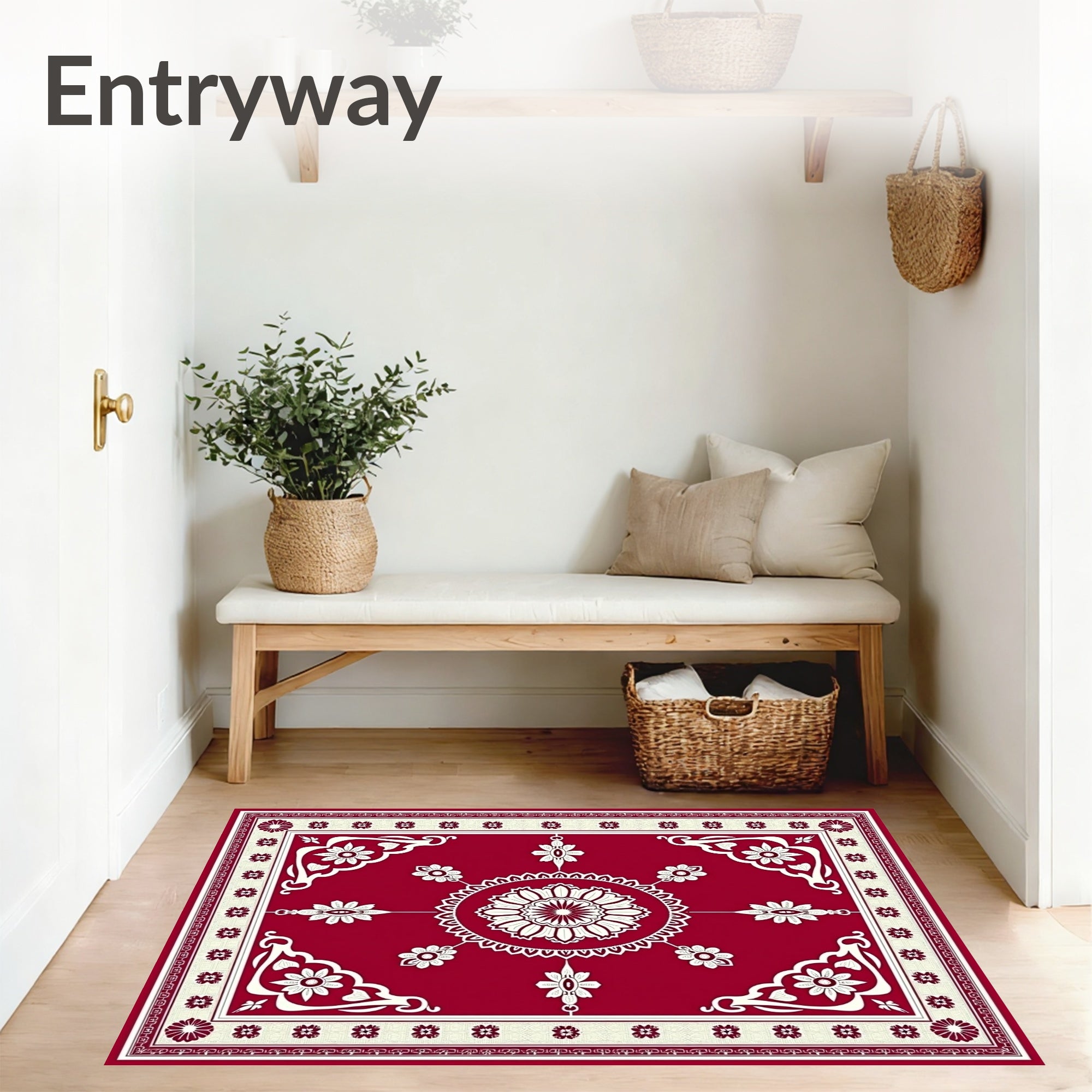 Ultra Soft Area Rug, Non Slip, Stain Resistant, Washable Area Rugs for Living Room, Bedroom, Elegant Bordered Medallion Tapestry Framed Classic Design(Red) Overview: