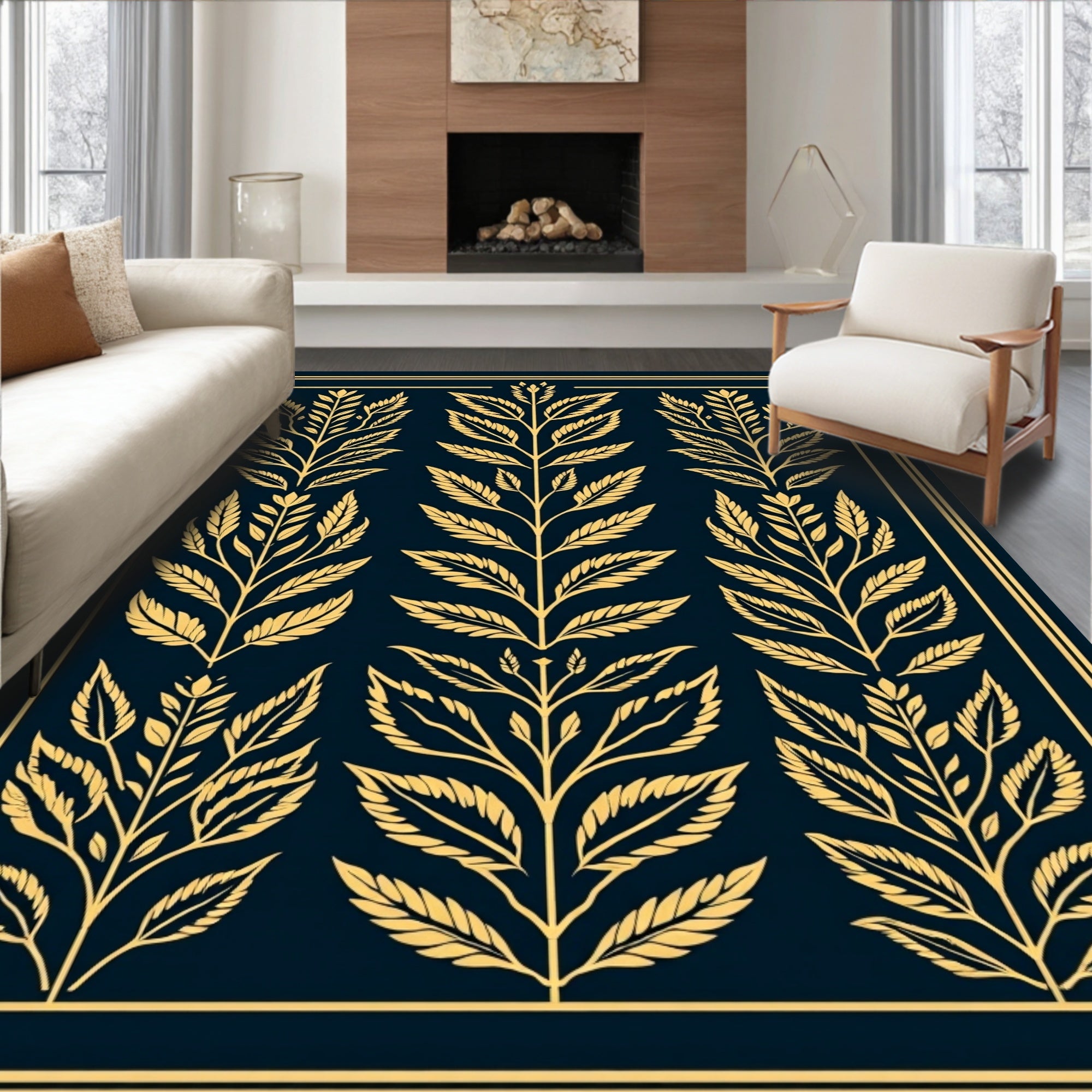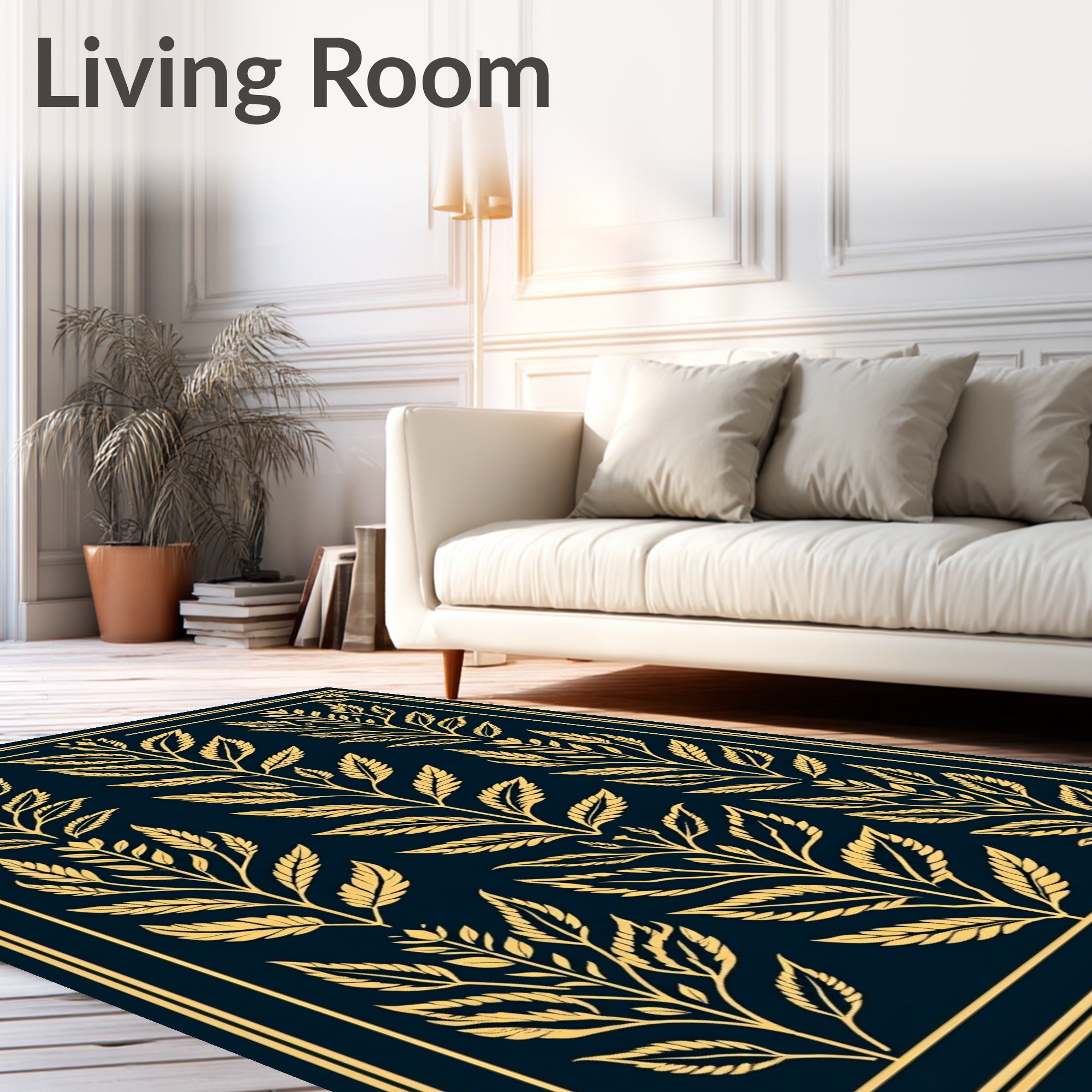 Ultra Soft Area Rug, Non Slip, Stain Resistant, Washable Area Rugs for Living Room, Bedroom, Elegant Botanical Entryway Decorative Accent(Gold) Overview: