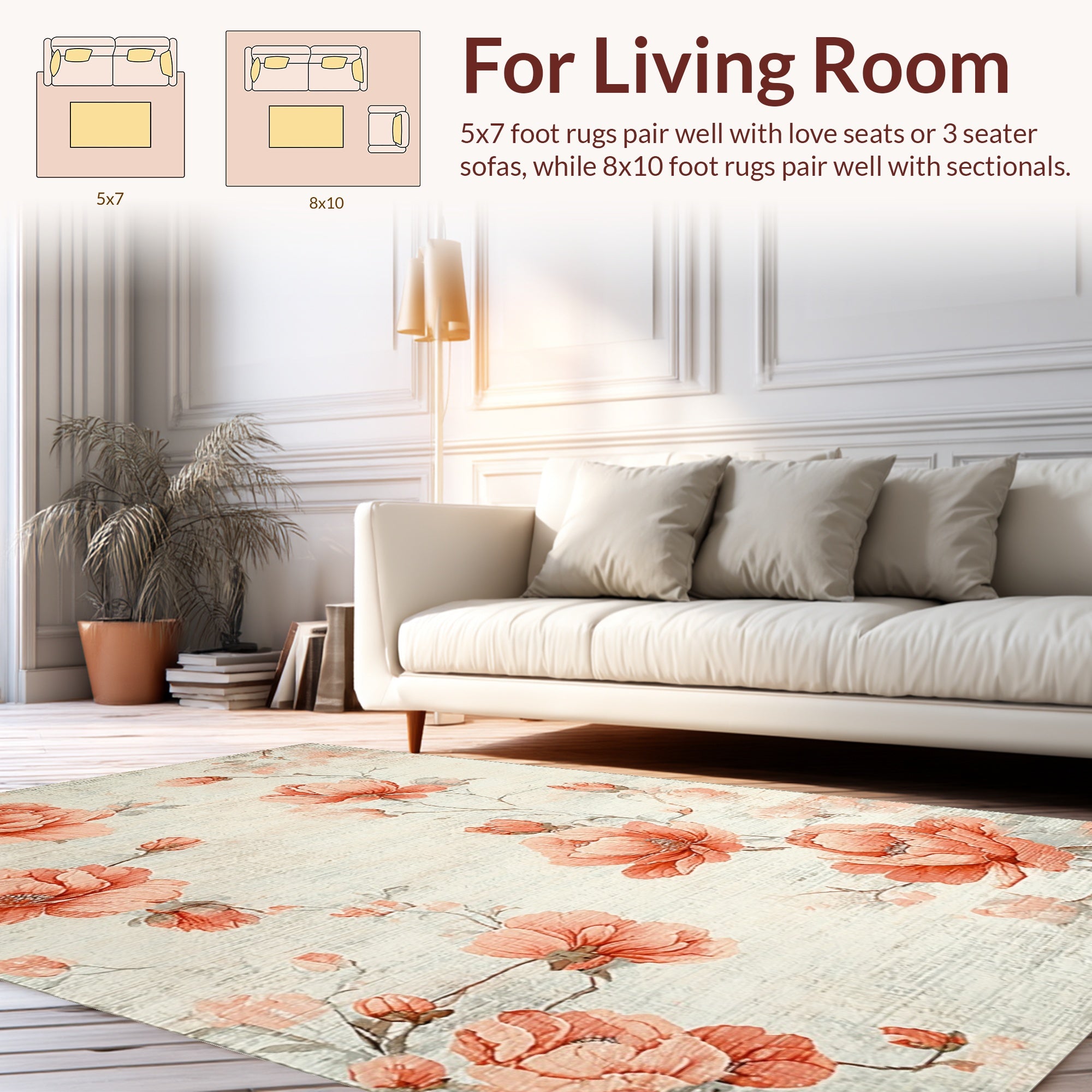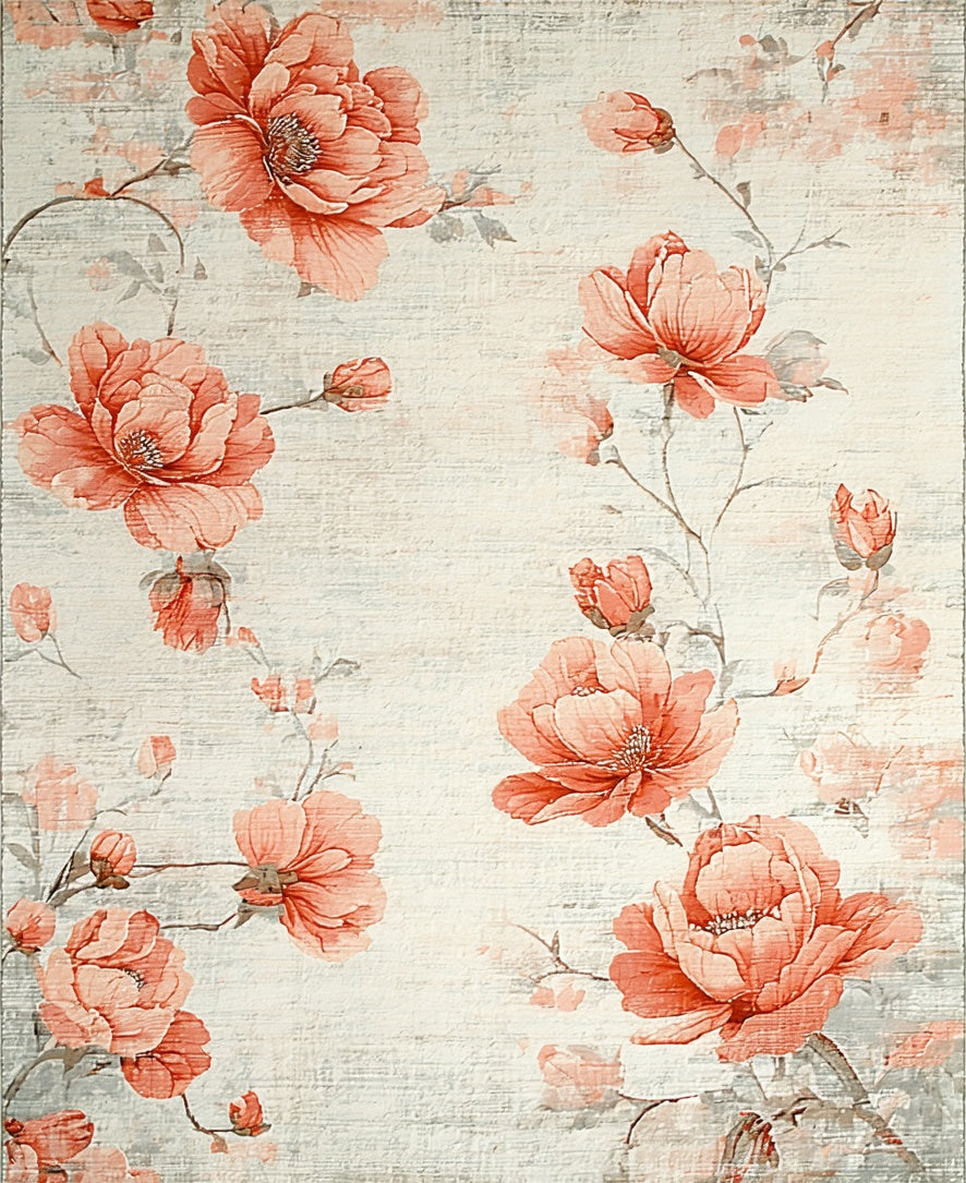 Ultra Soft Area Rug, Non Slip, Stain Resistant, Washable Area Rugs for Living Room, Bedroom, Elegant Botanical Garden Carpet with Soft Peach Petals and Ivory Background(Beige) Overview: