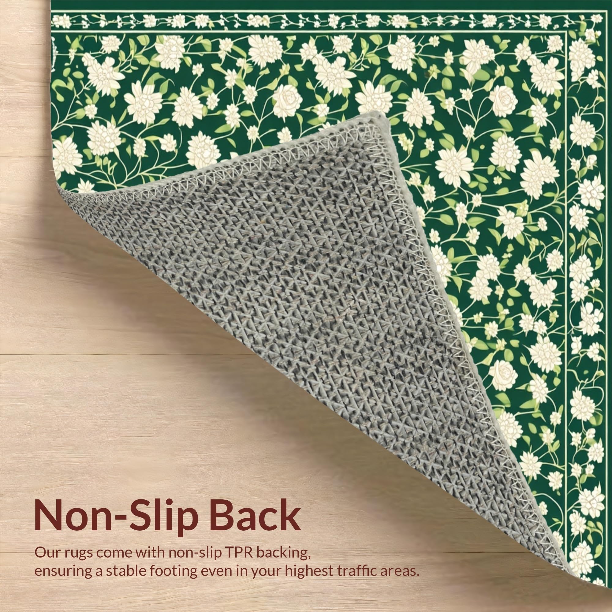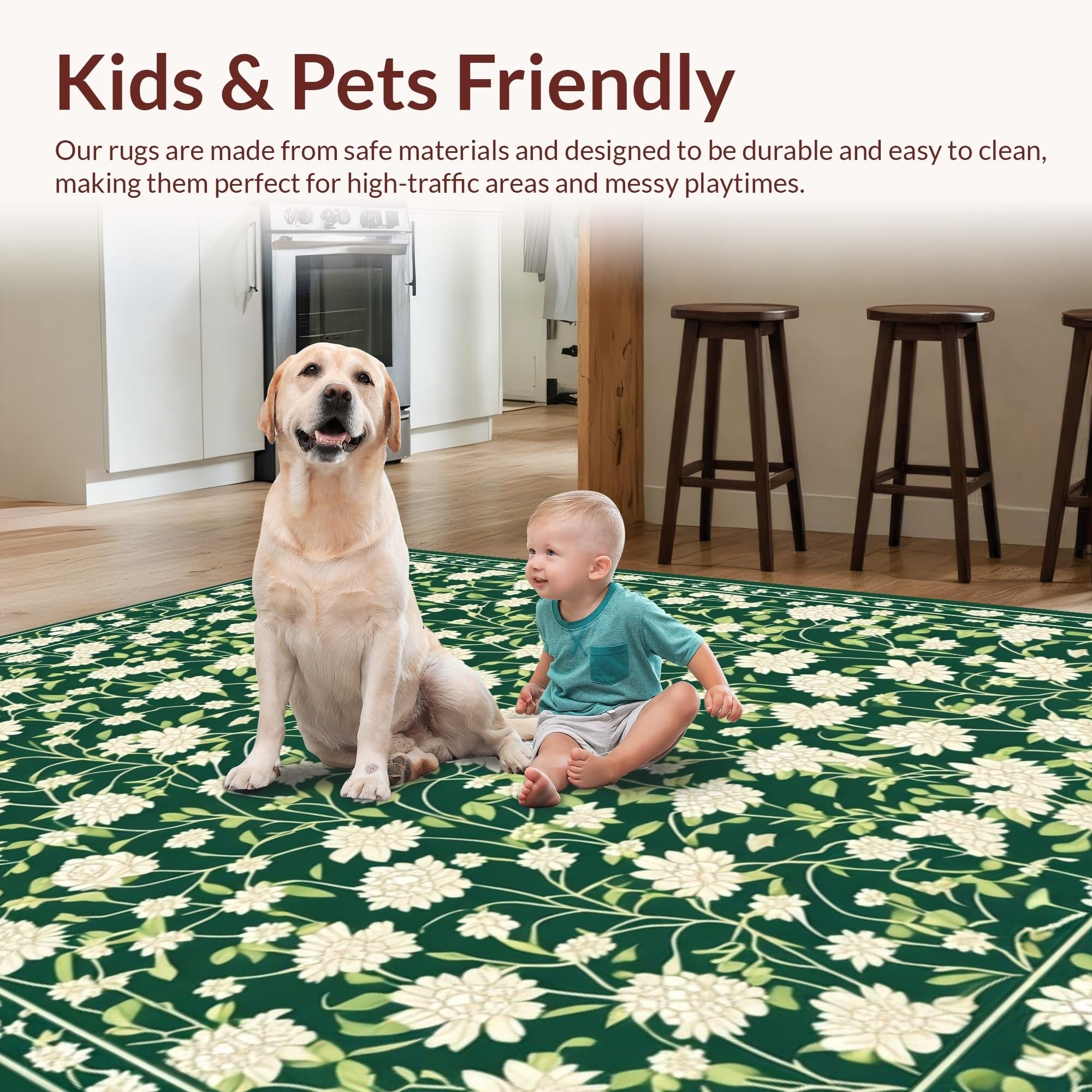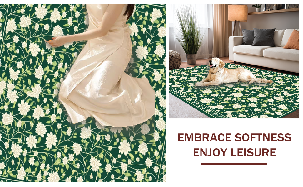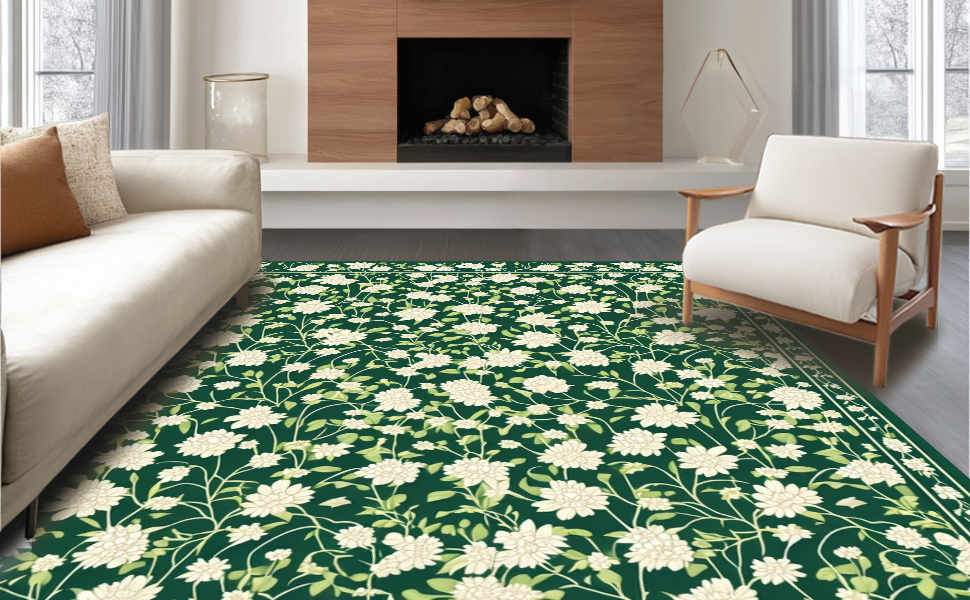 Ultra Soft Area Rug, Non Slip, Stain Resistant, Washable Area Rugs for Living Room, Bedroom, Elegant Botanical Leaf Arrangement(Green) Overview: