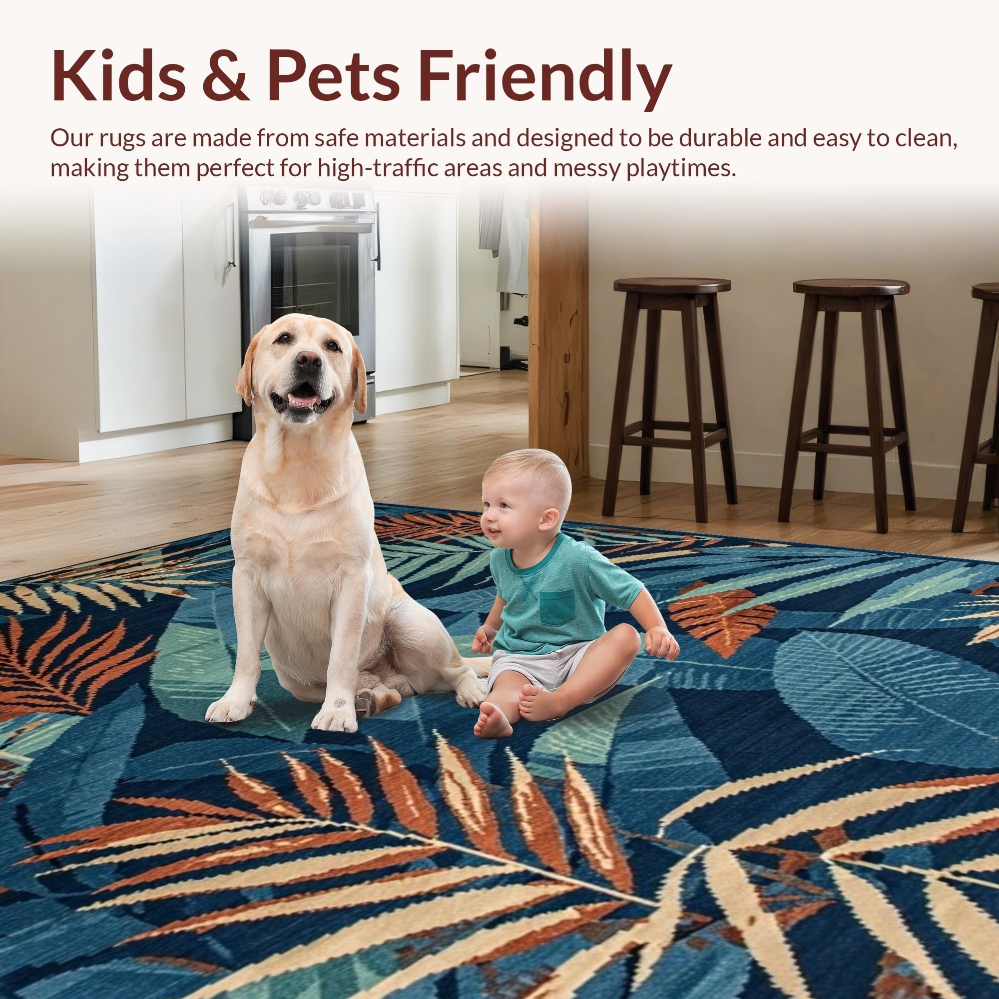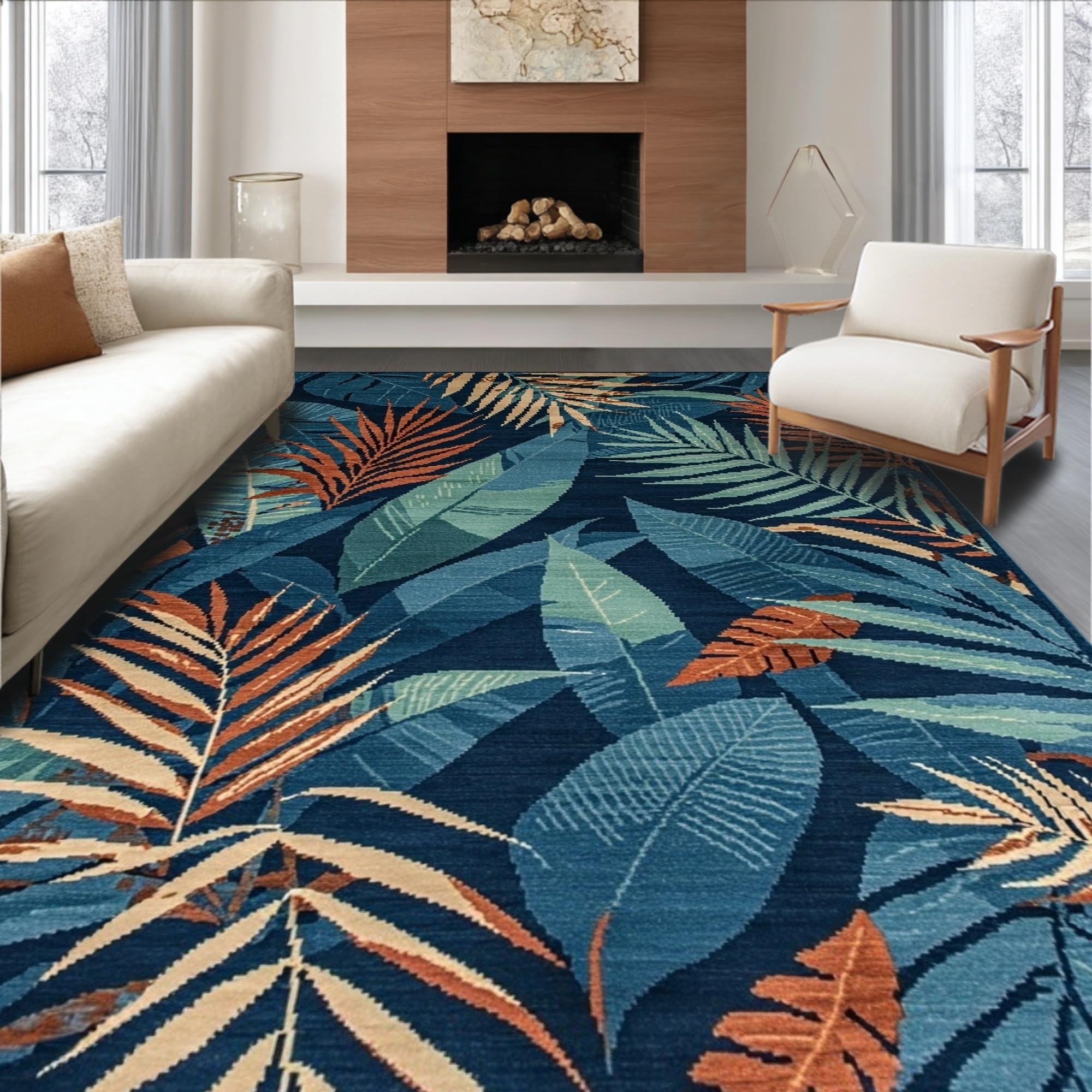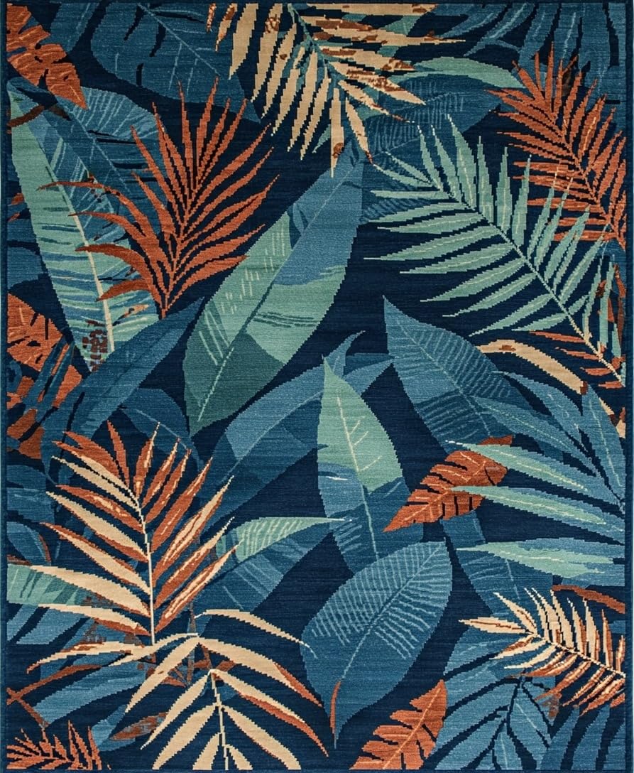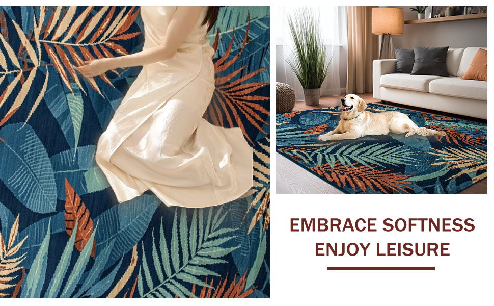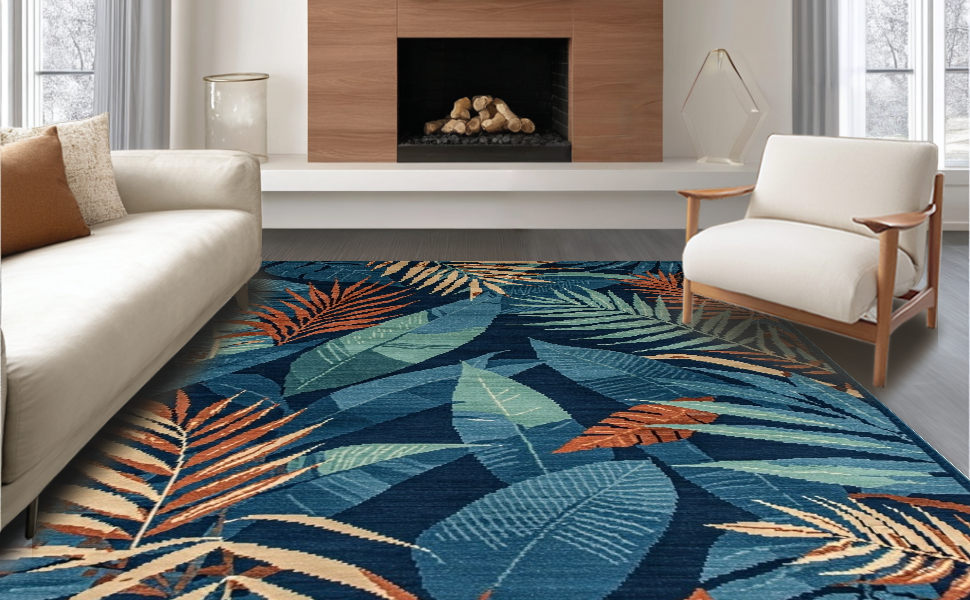 Ultra Soft Area Rug, Non Slip, Stain Resistant, Washable Area Rugs for Living Room, Bedroom, Elegant Botanical Tiled Aesthetic(Blue) Overview: