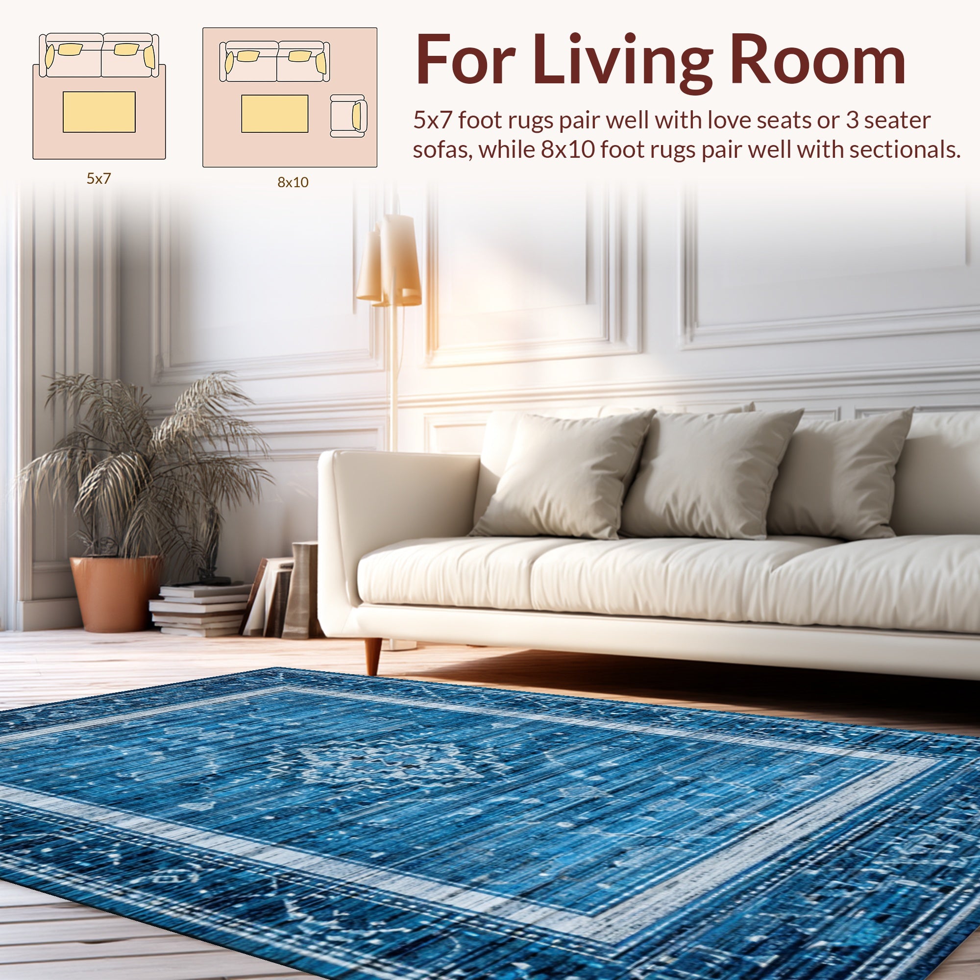Ultra Soft Area Rug, Non Slip, Stain Resistant, Washable Area Rugs for Living Room, Bedroom, Elegant Bow Charm Rug Blue Themed Decorative Mat with Stylish Knot Design(Blue) Overview:
