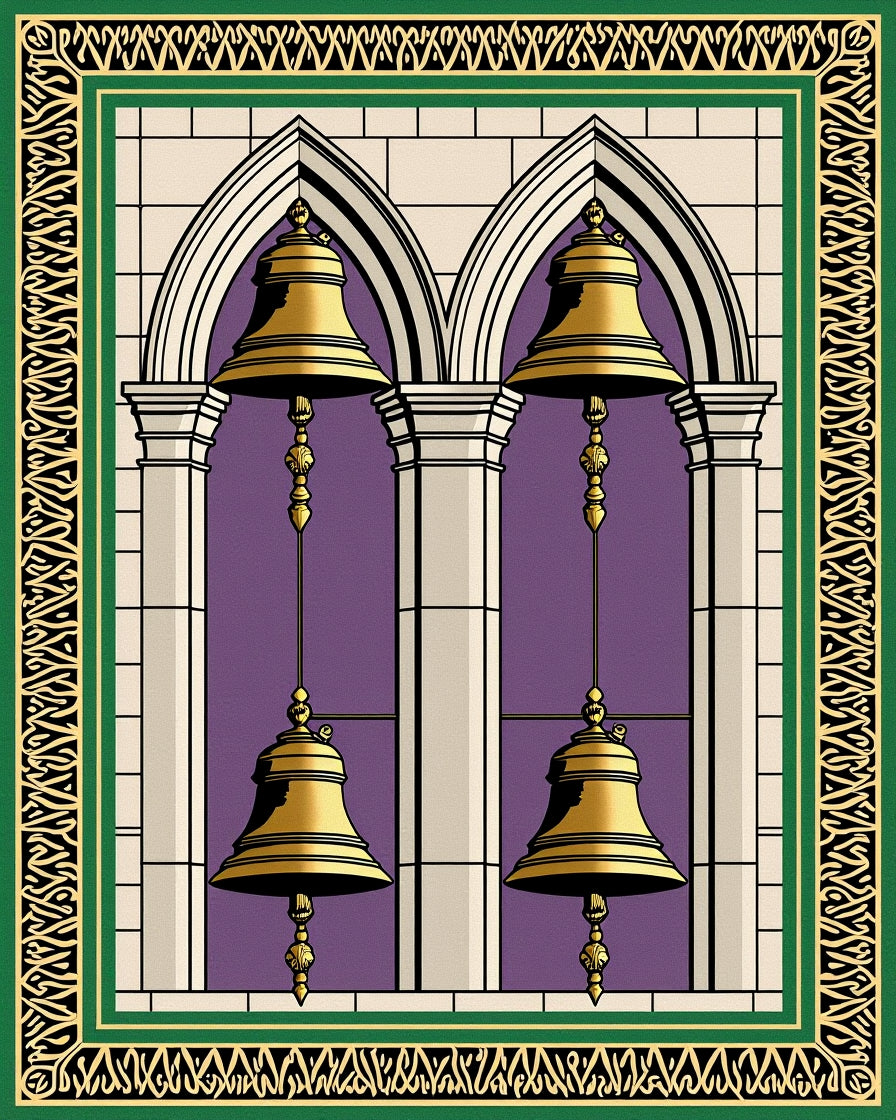 Elegant Cathedral Bell Tower Half Moon Entrance with Gothic Arches(Gold)