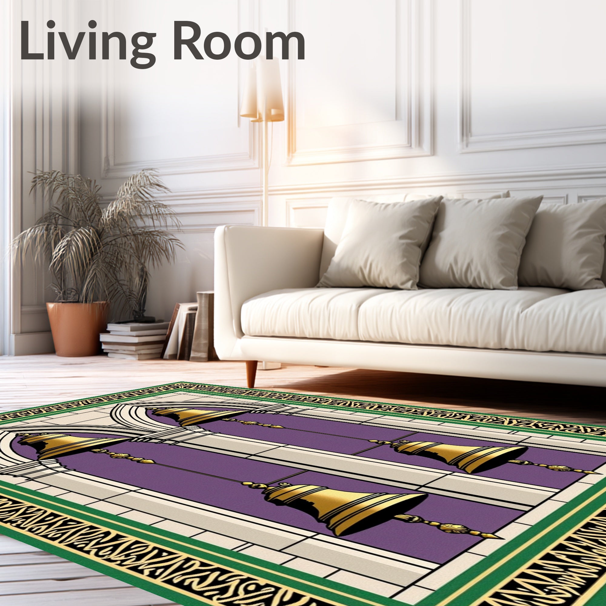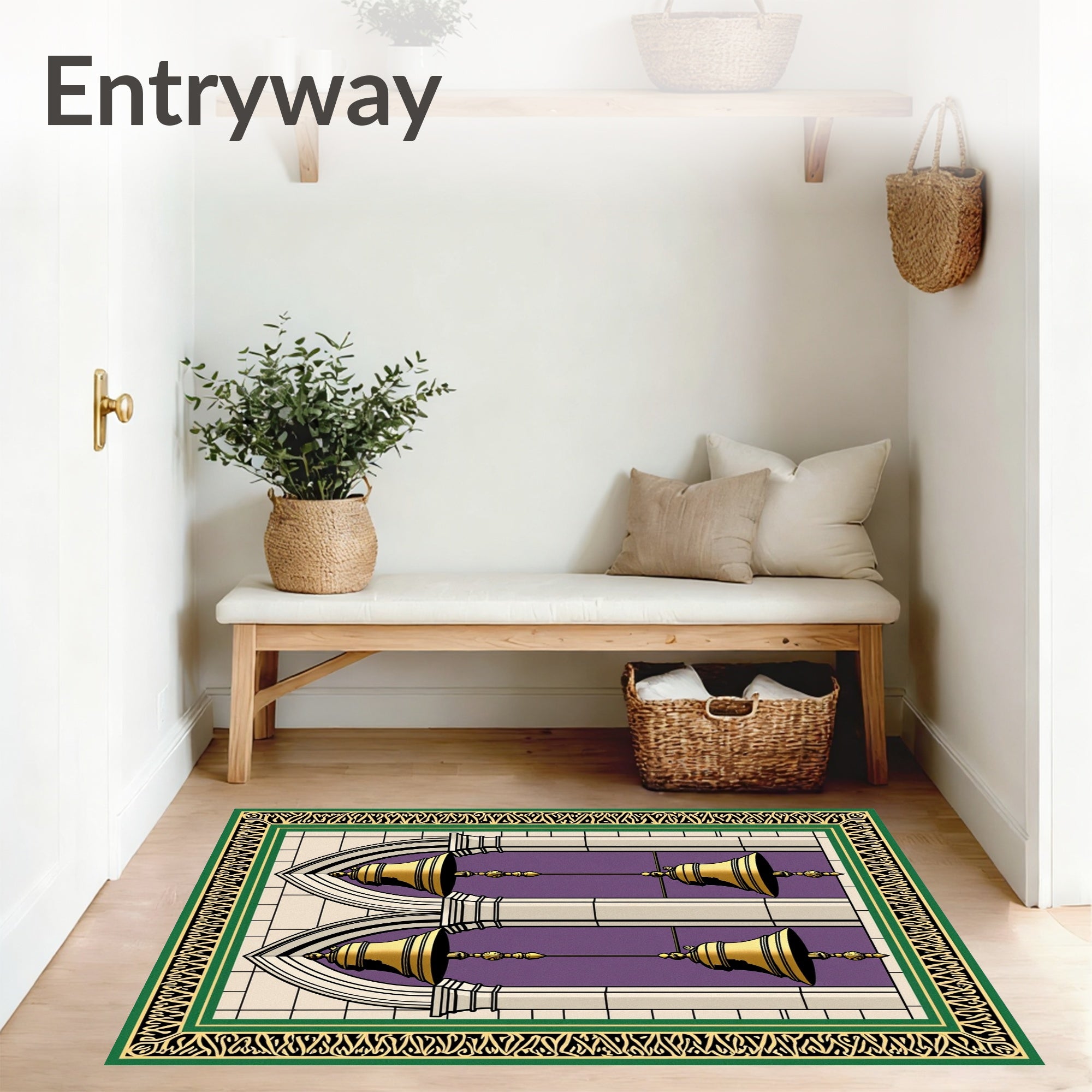 Ultra Soft Area Rug, Non Slip, Stain Resistant, Washable Area Rugs for Living Room, Bedroom, Elegant Cathedral Bell Tower Half Moon Entrance with Gothic Arches(Gold) Overview: