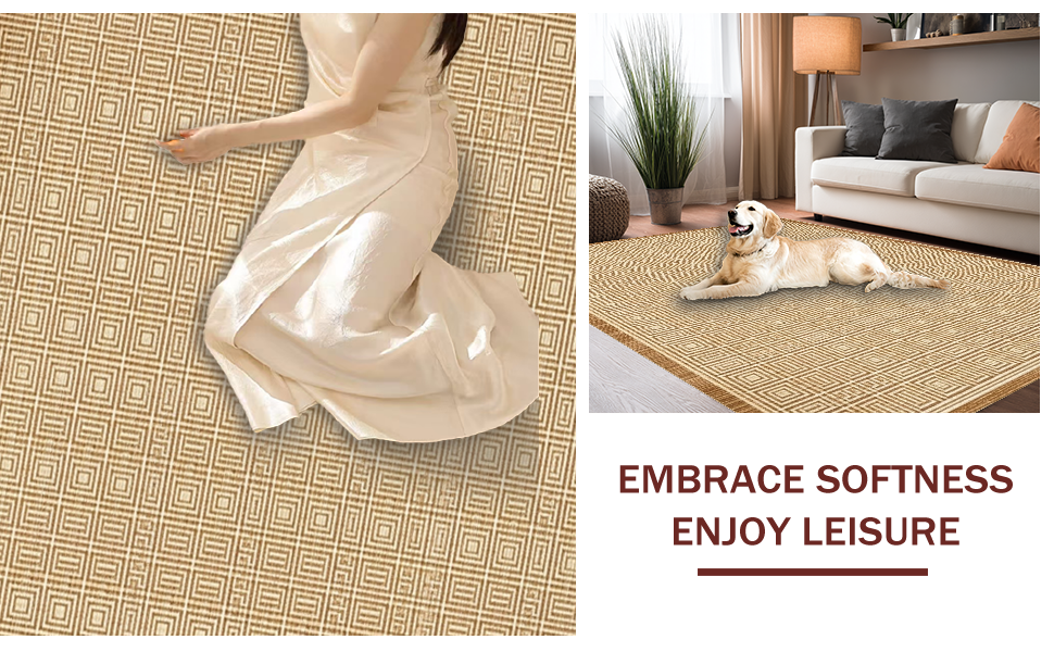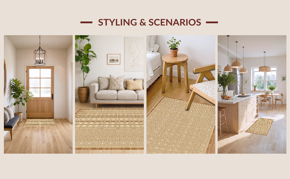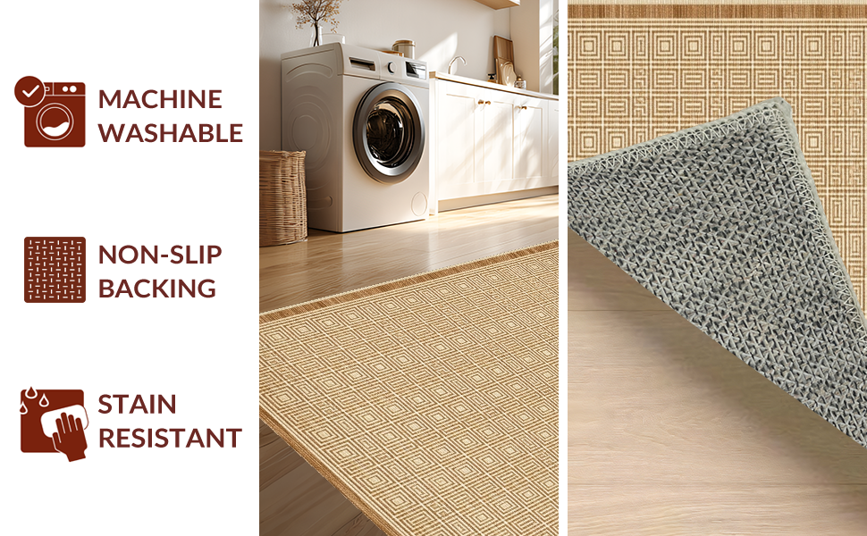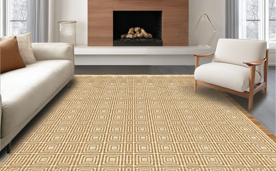 Ultra Soft Area Rug, Non Slip, Stain Resistant, Washable Area Rugs for Living Room, Bedroom, Elegant Checkered Earth Tone Aesthetic(Beige) Overview: