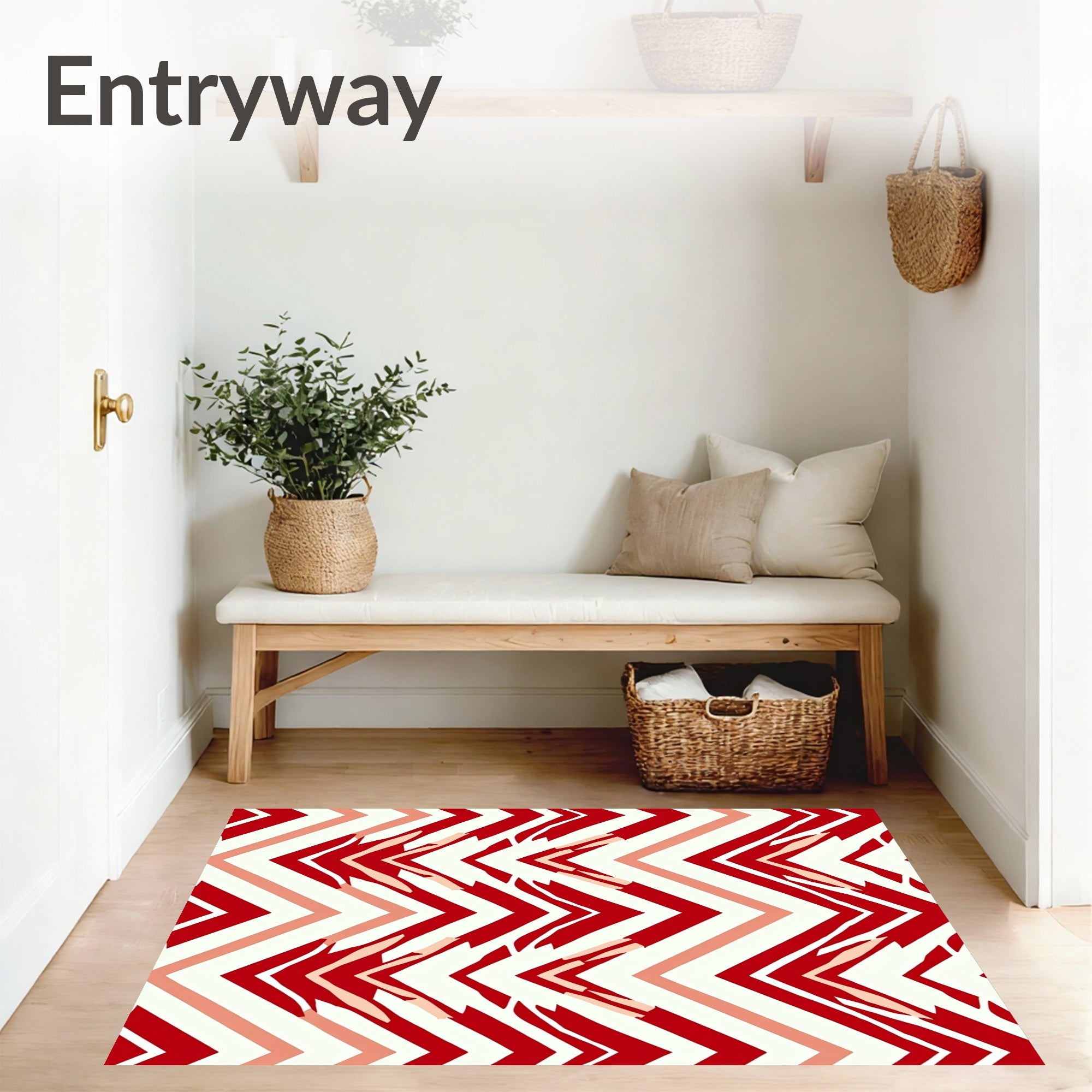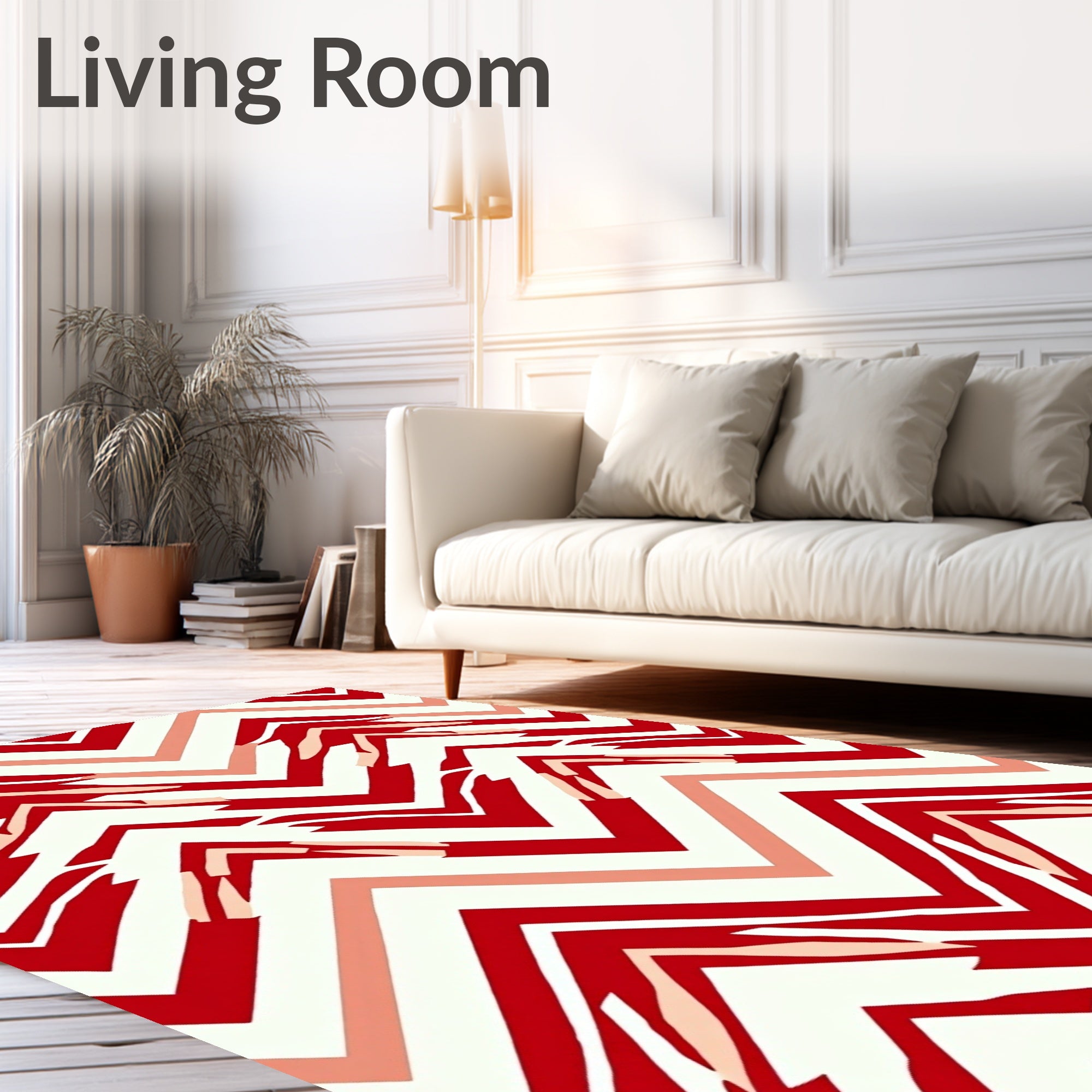 Ultra Soft Area Rug, Non Slip, Stain Resistant, Washable Area Rugs for Living Room, Bedroom, Elegant Chevron Design Featuring Symmetrical Festive Motifs(Red) Overview: