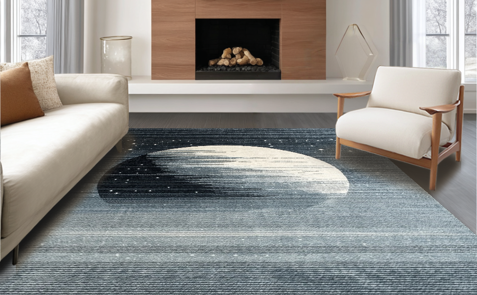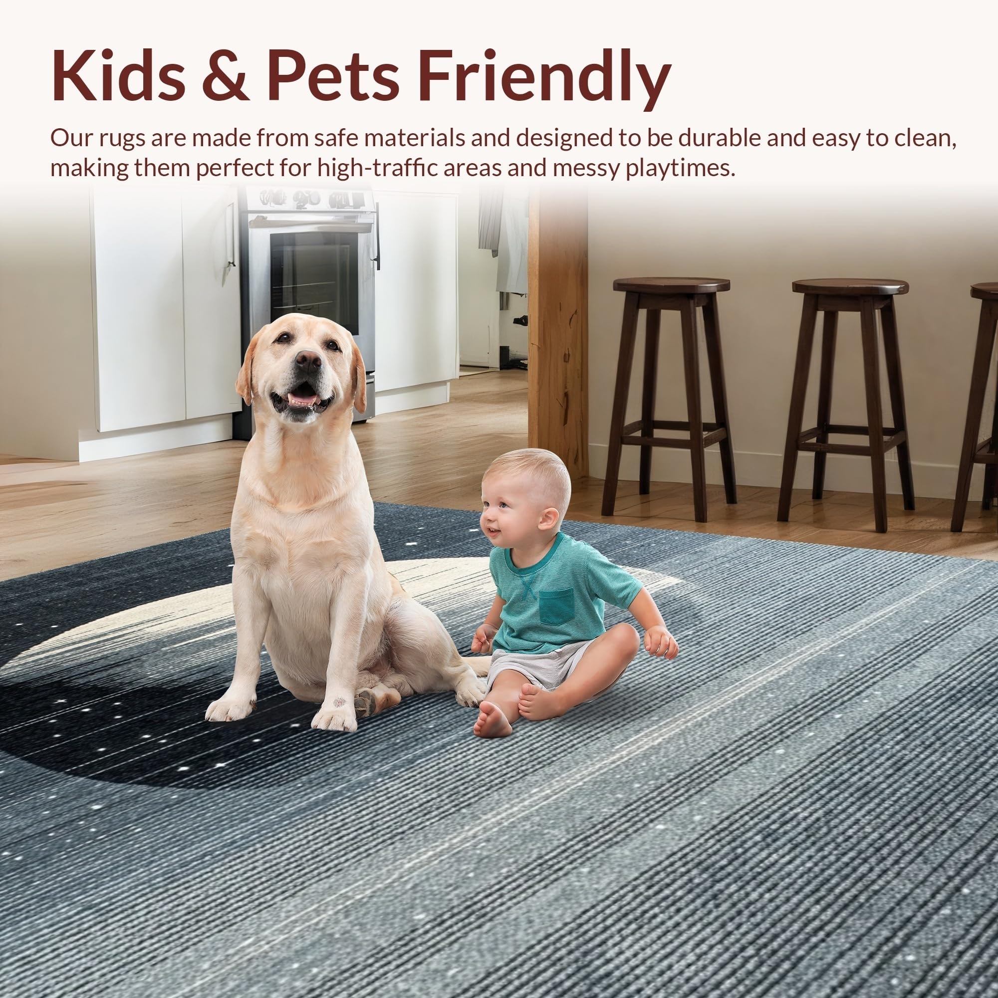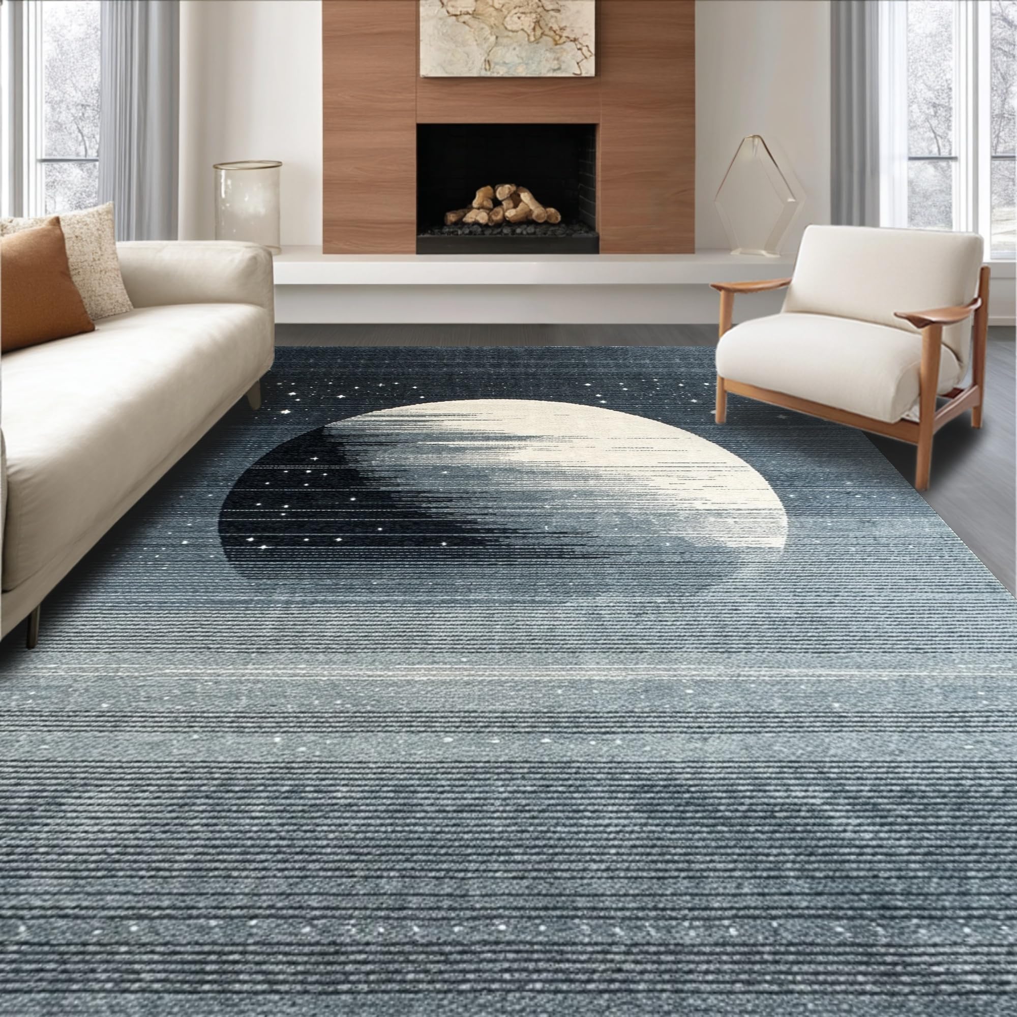 Ultra Soft Area Rug, Non Slip, Stain Resistant, Washable Area Rugs for Living Room, Bedroom, Elegant Circular Space Art(Gray) Overview: