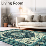 Ultra Soft Area Rug, Non Slip, Stain Resistant, Washable Area Rugs for Living Room, Bedroom, Elegant Circular(Blue) Overview: